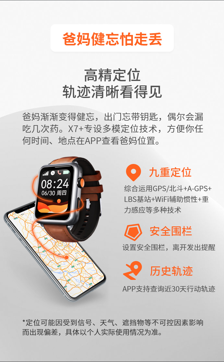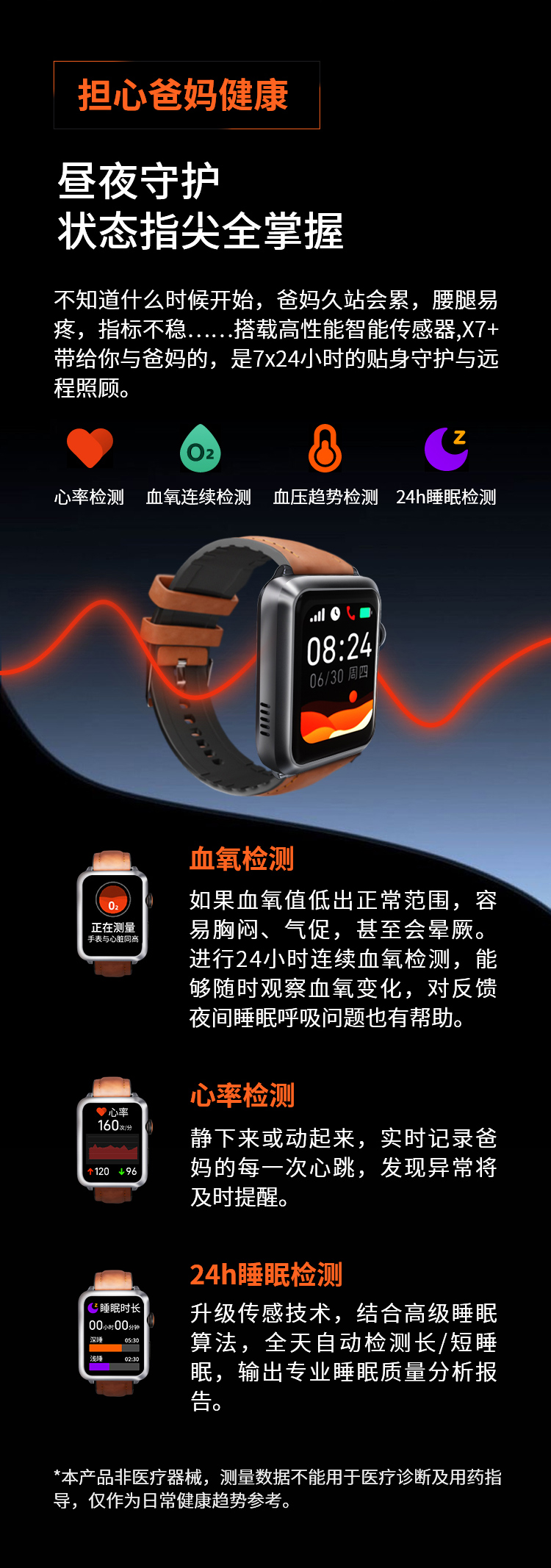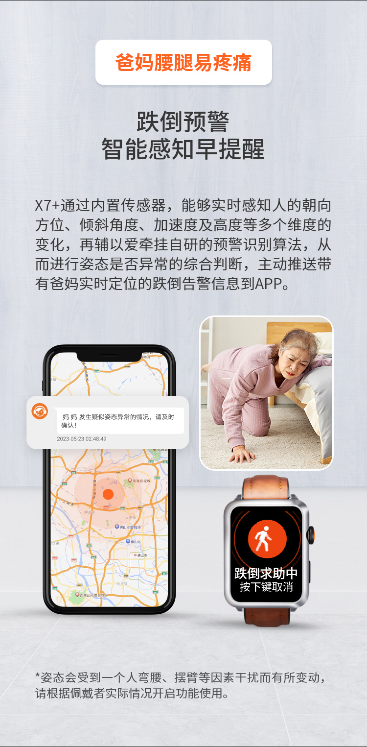 爱牵挂X7+焕新版老人定位智能电话手表4G三网通全触屏GPS防走失手环血压血氧心率健康趋势监测佩戴识别24h睡眠监测