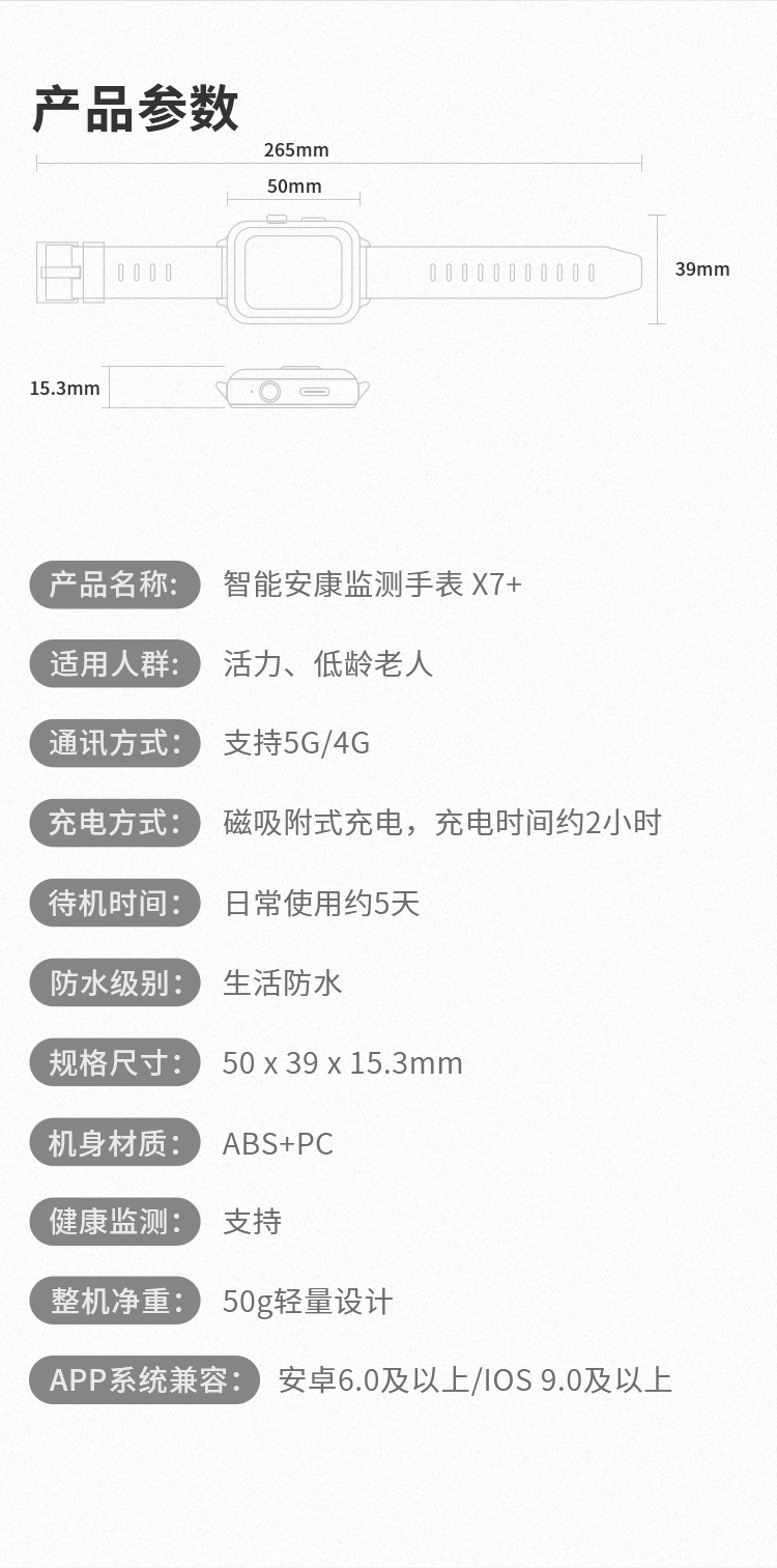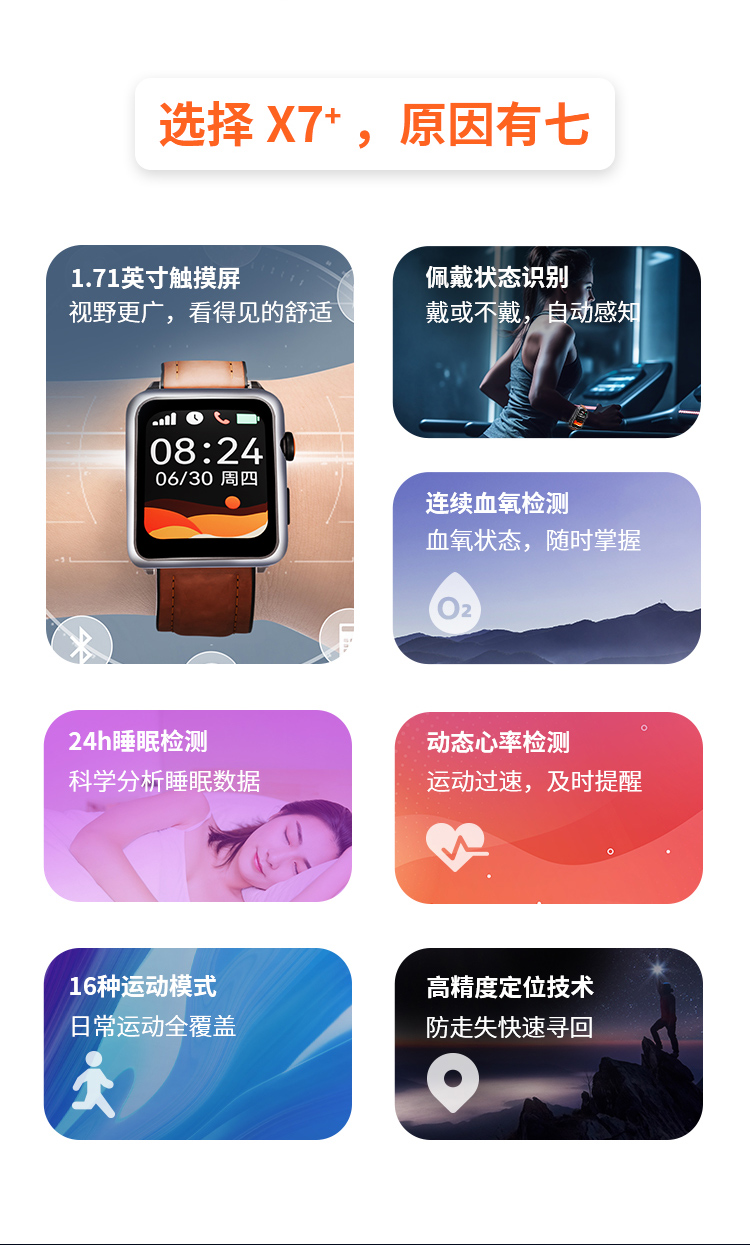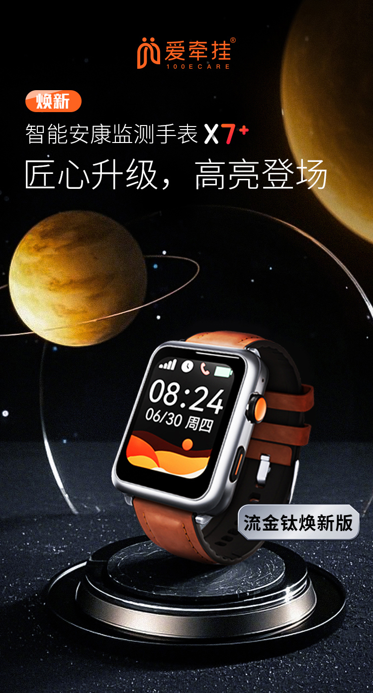 爱牵挂X7+焕新版老人定位智能电话手表4G三网通全触屏GPS防走失手环血压血氧心率健康趋势监测佩戴识别24h睡眠监测