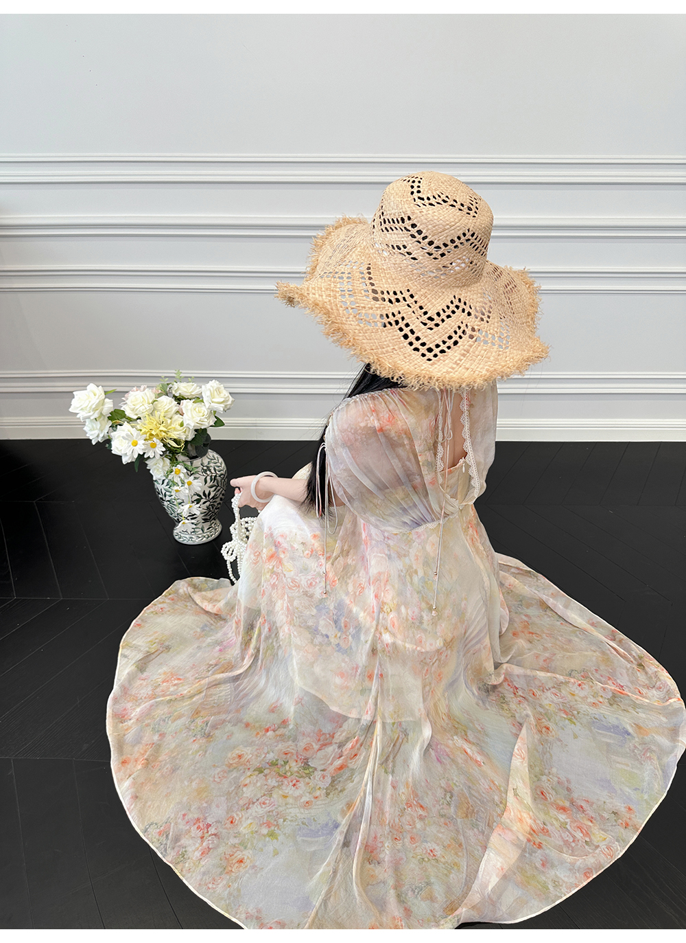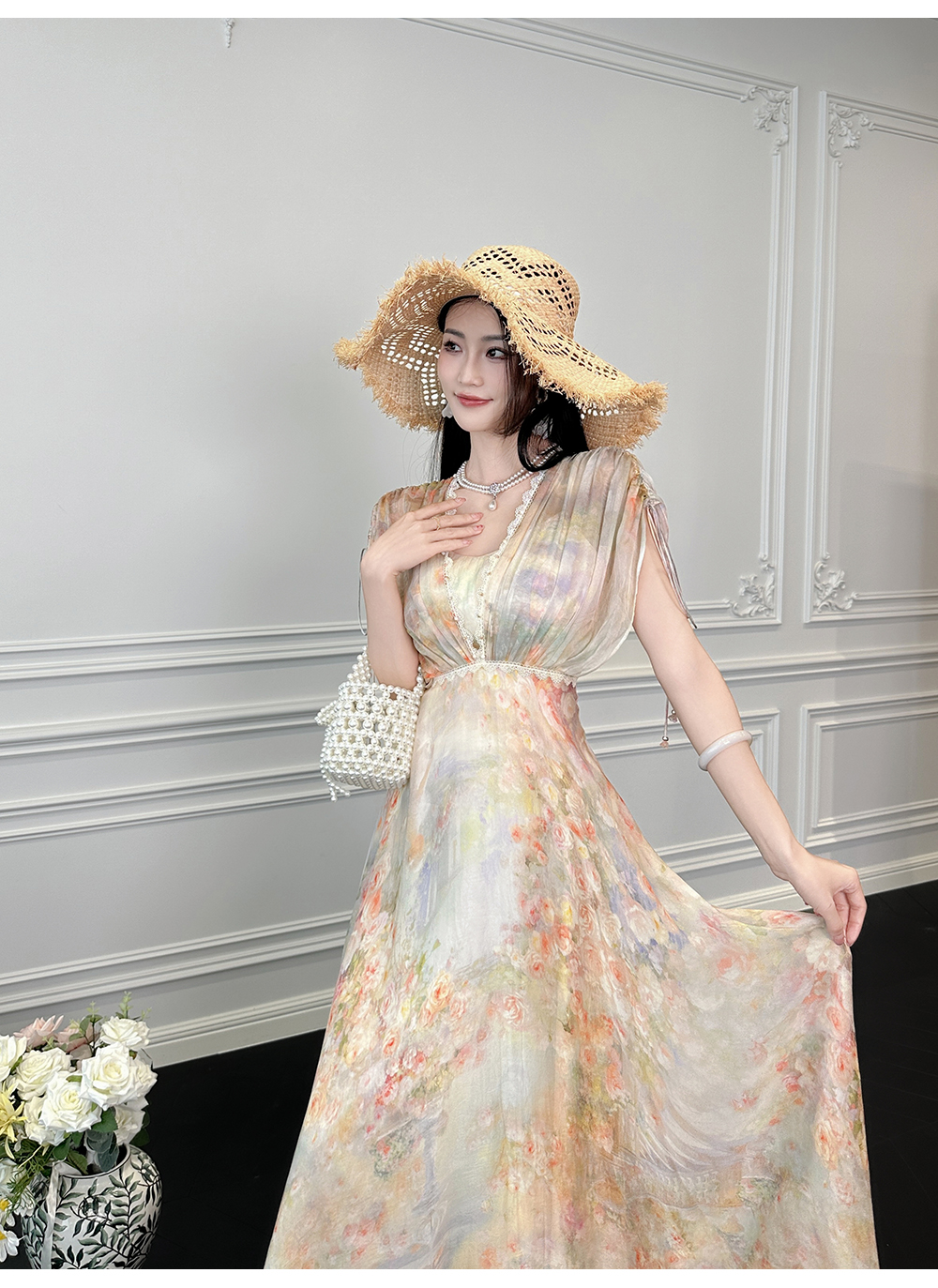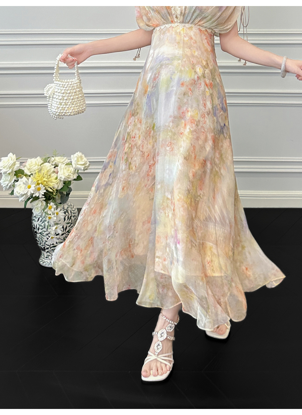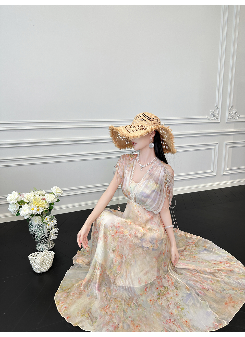 【孤品样衣,不退不换】 【罗马玫瑰】轻奢真丝宽松抽褶蝴蝶袖气质收腰连衣裙
