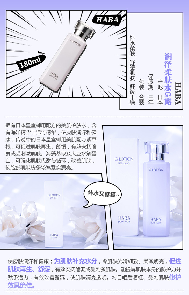 【现货】HABA润泽柔肤水G露水补水保湿爽肤水孕妇可用180ml