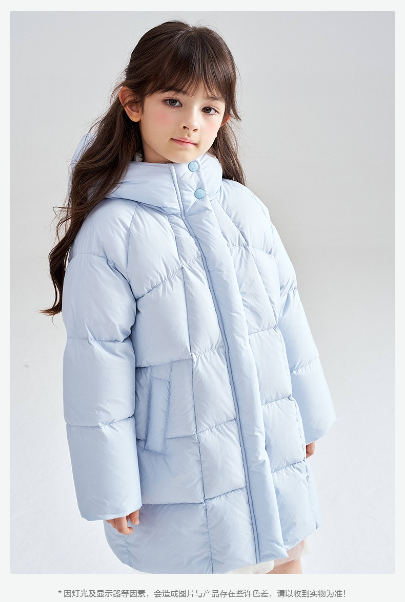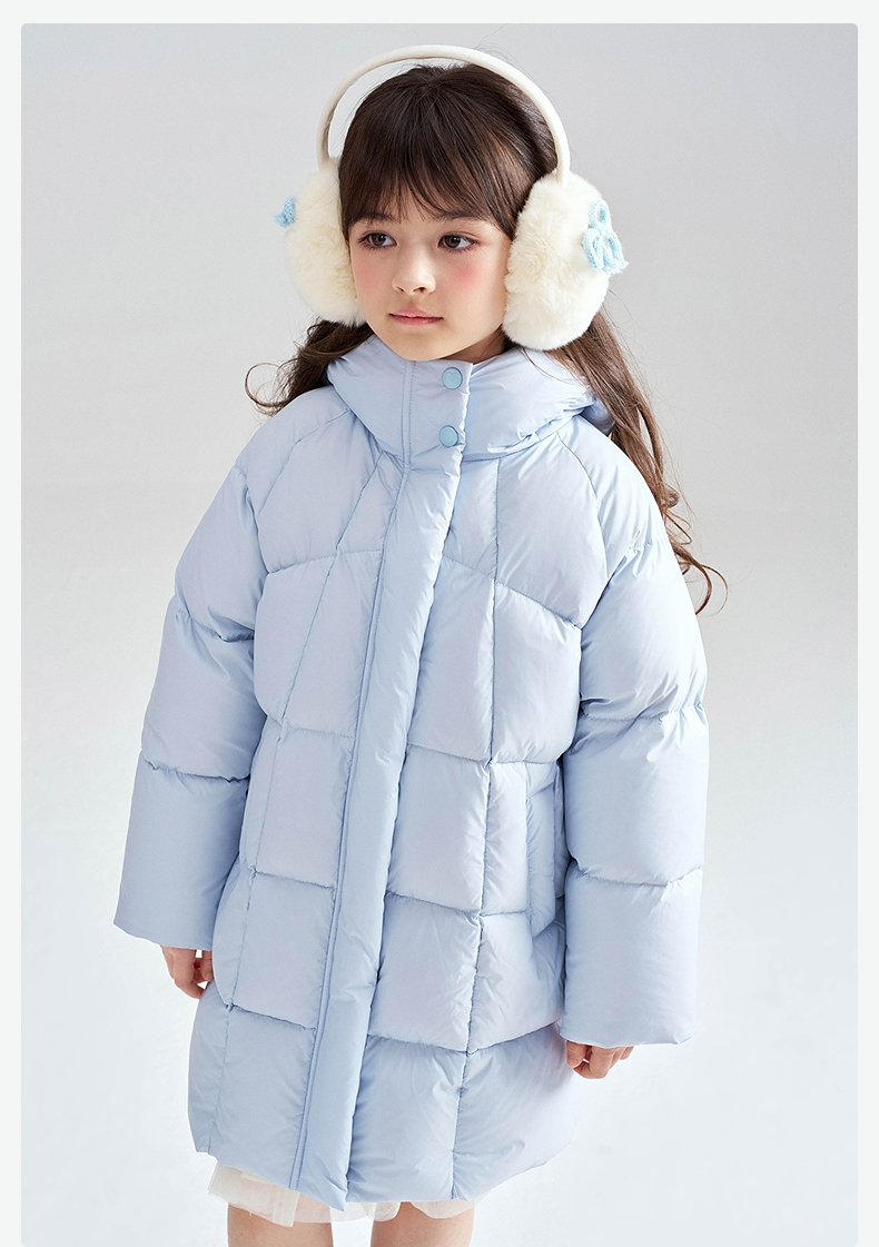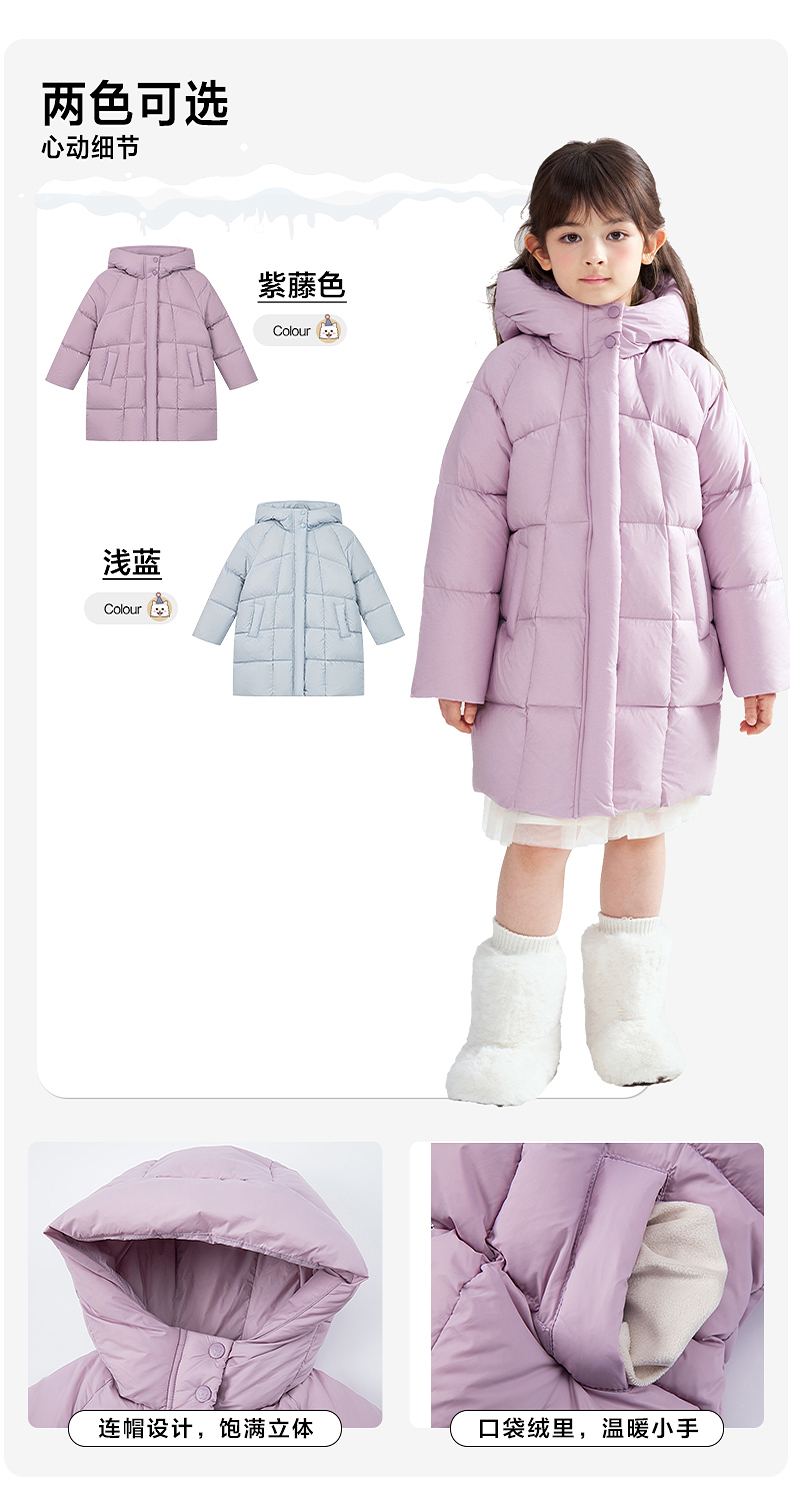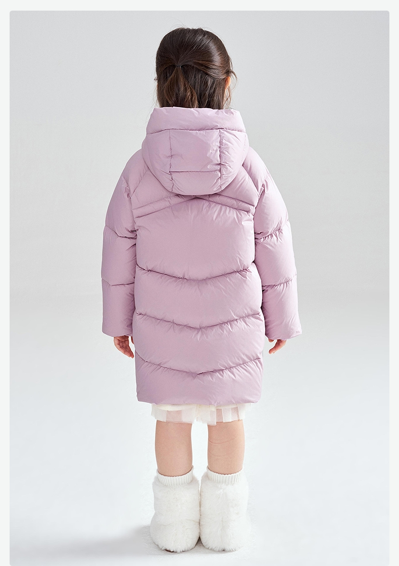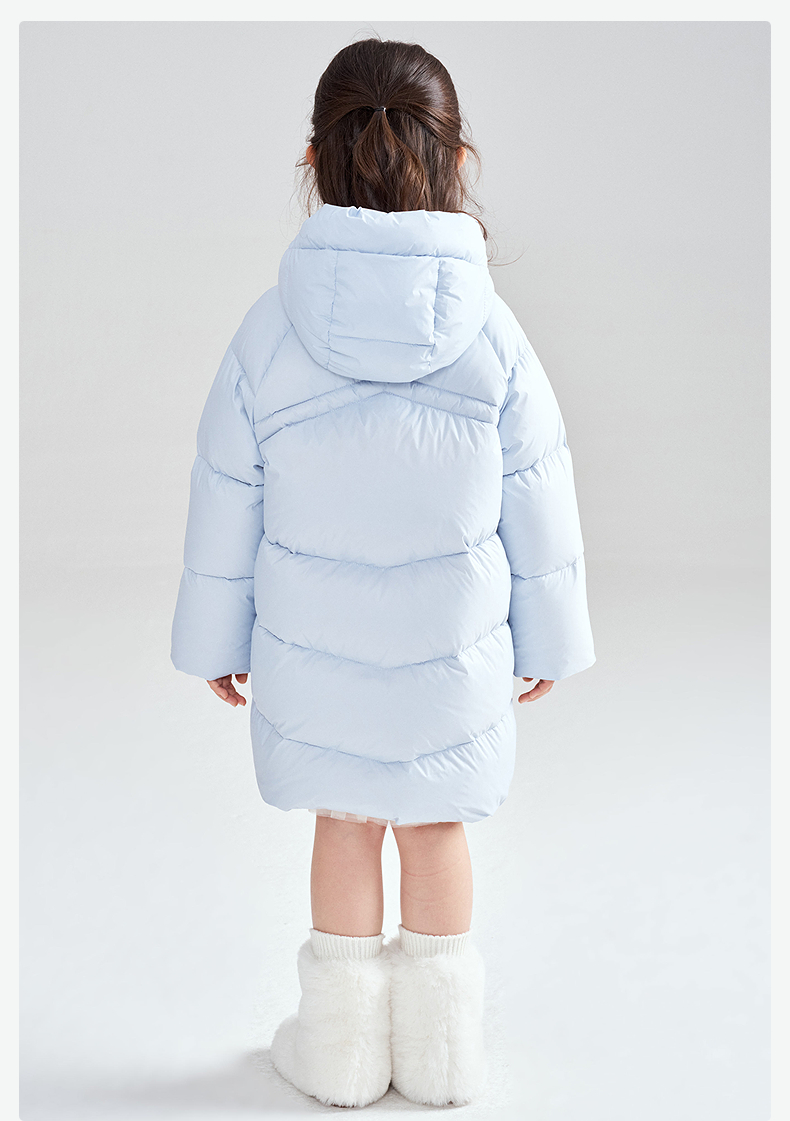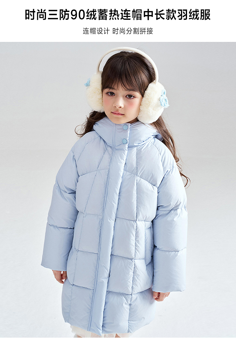 笛莎Deesha 2025冬季女童时尚三防90绒蓄热连帽中长款羽绒服