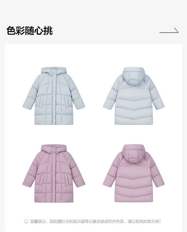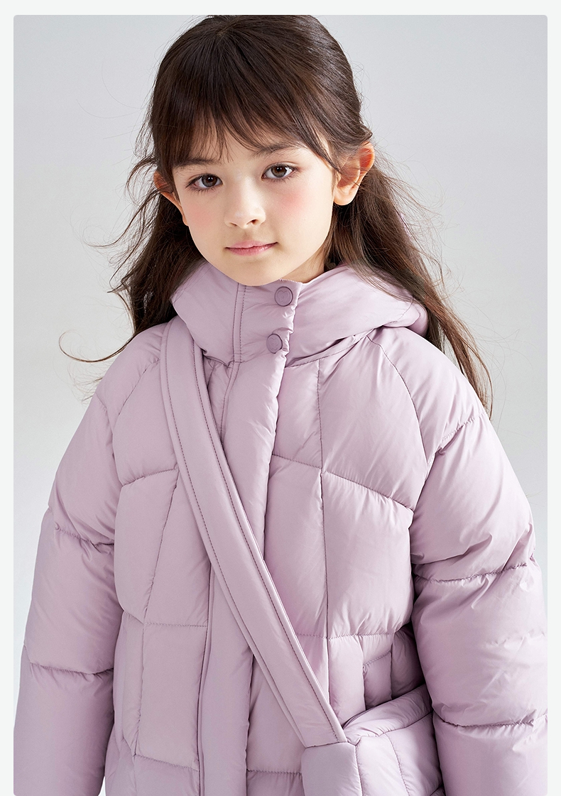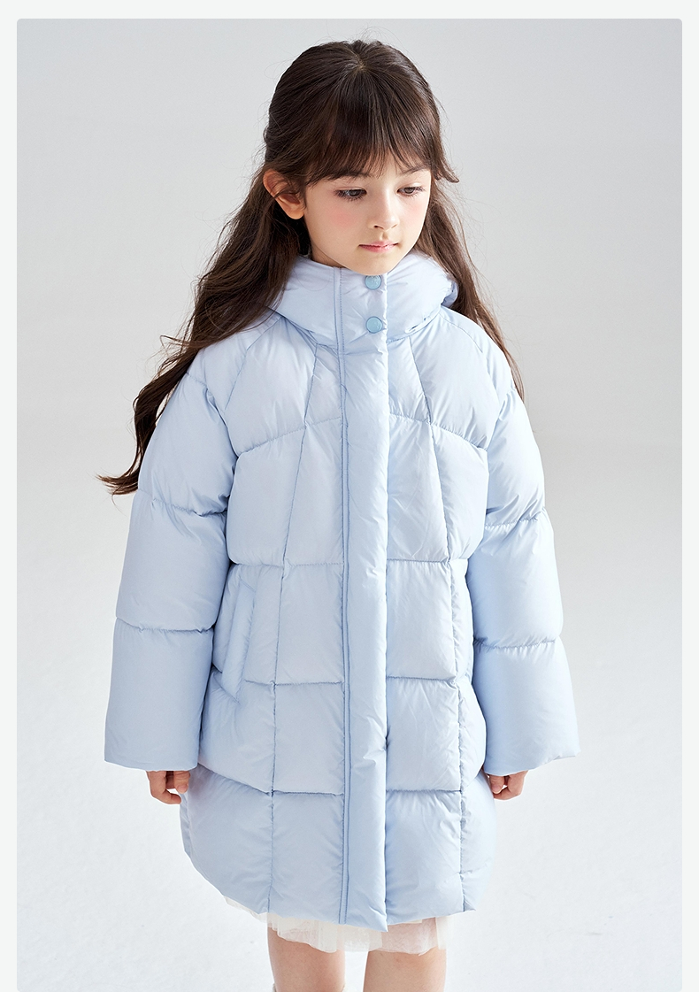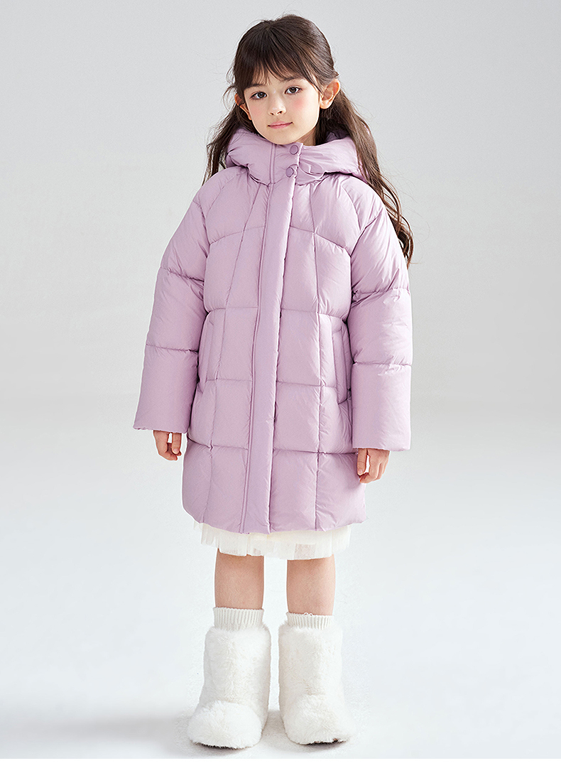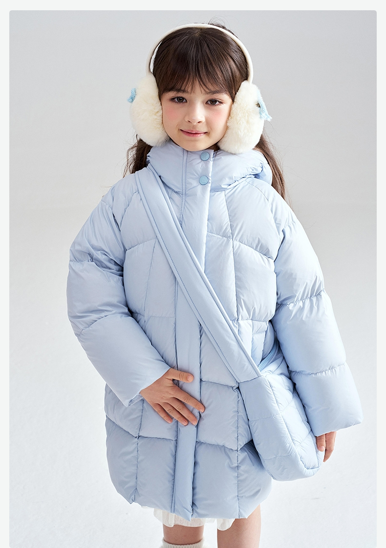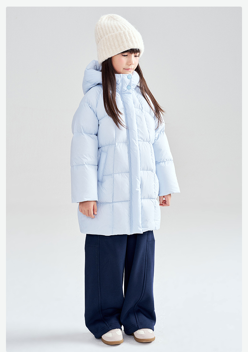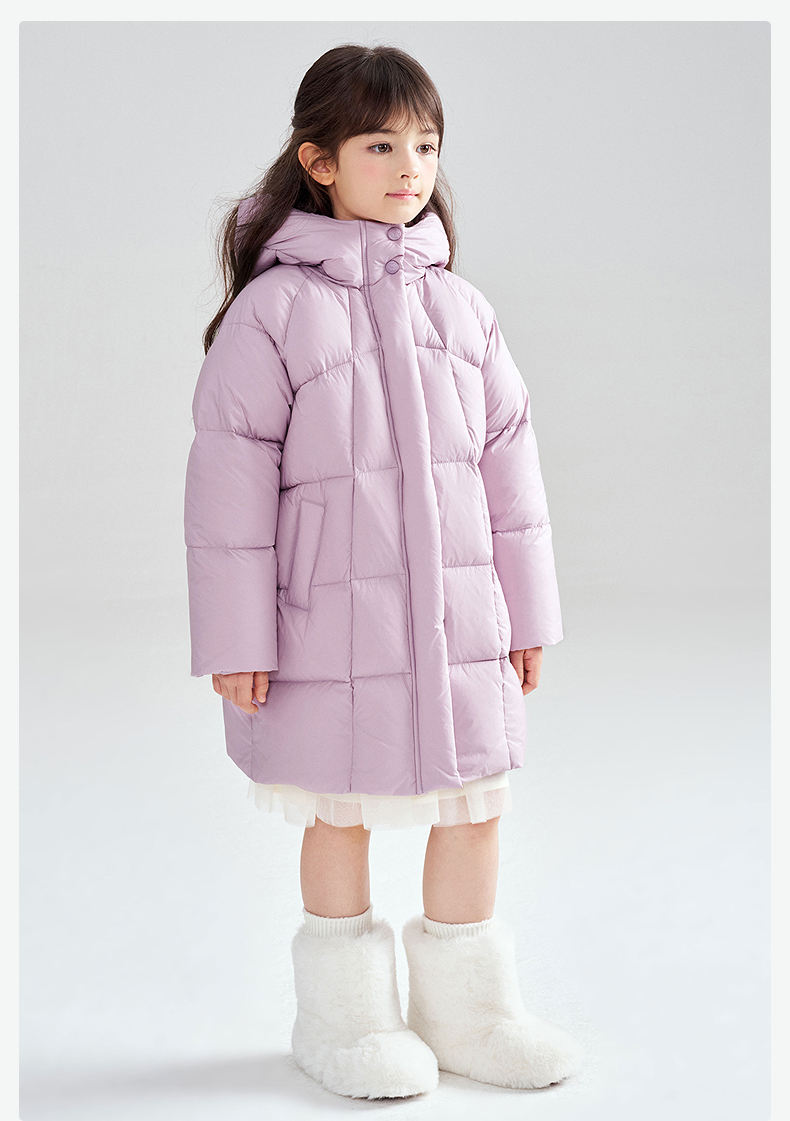 笛莎Deesha 2025冬季女童时尚三防90绒蓄热连帽中长款羽绒服