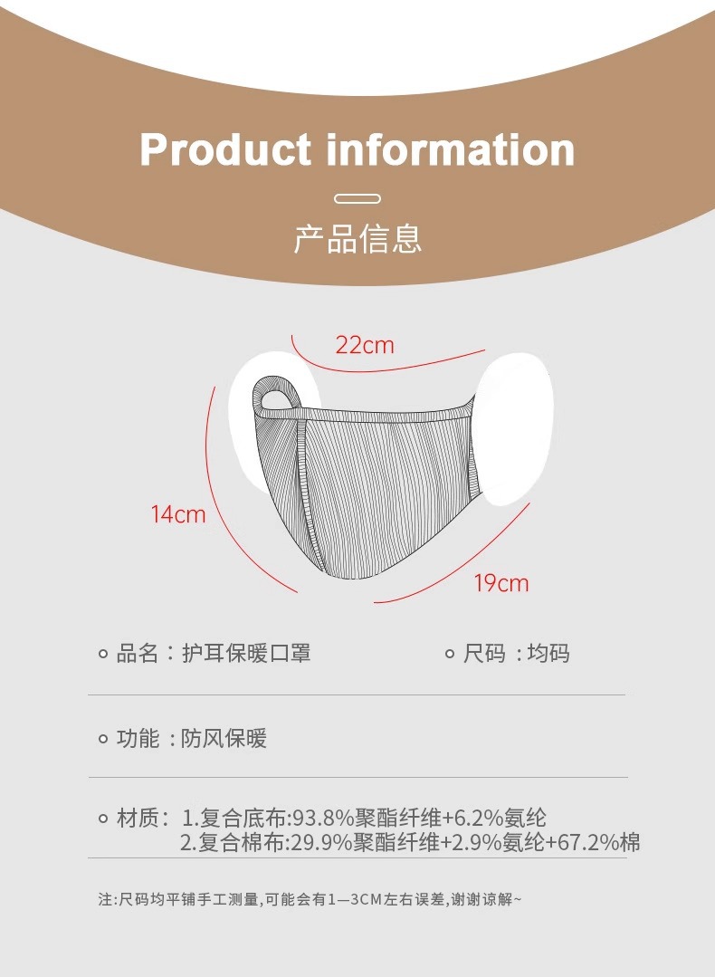 秋冬【女士保暖生活口罩】加绒加厚护耳 防寒防风 显脸小面罩耳罩