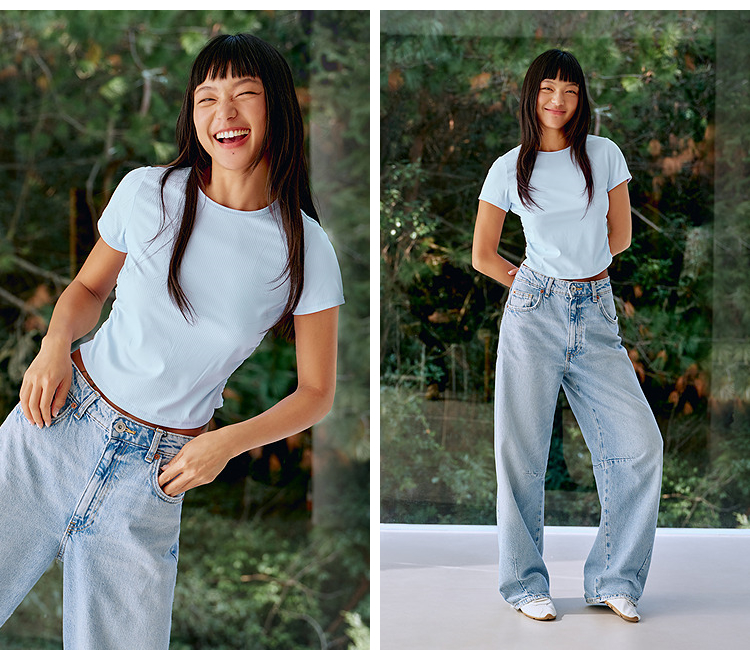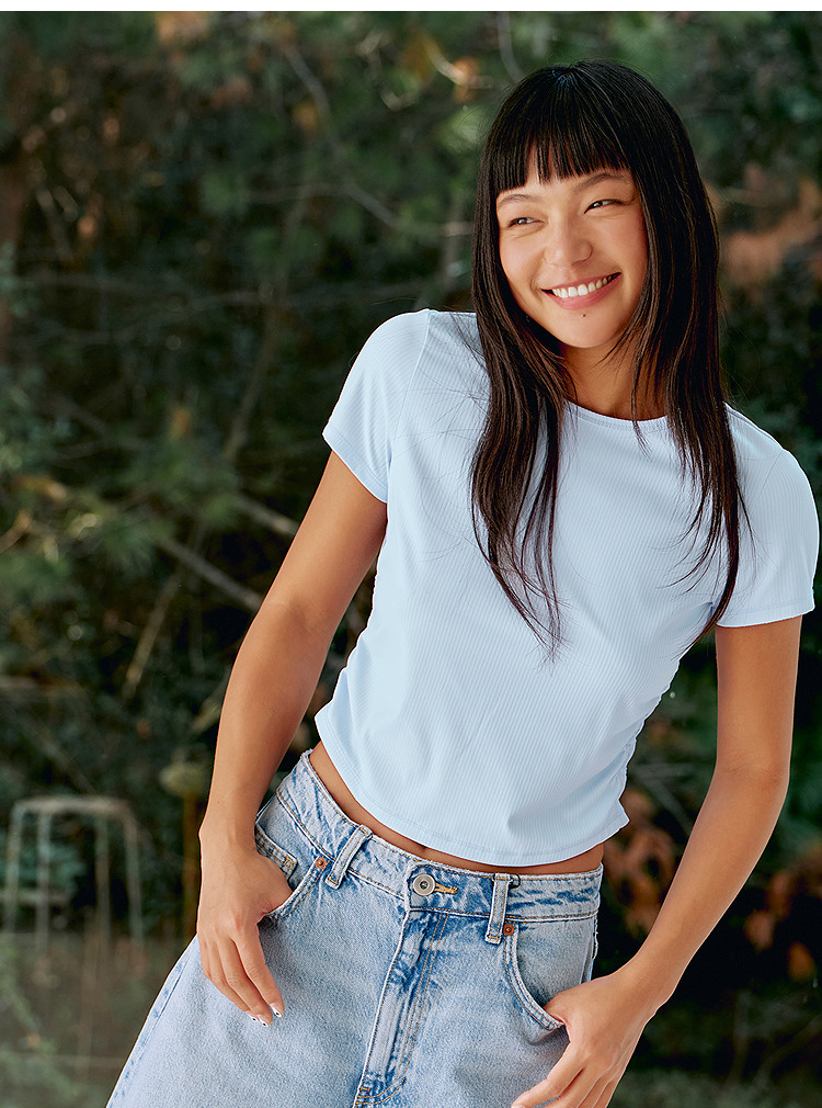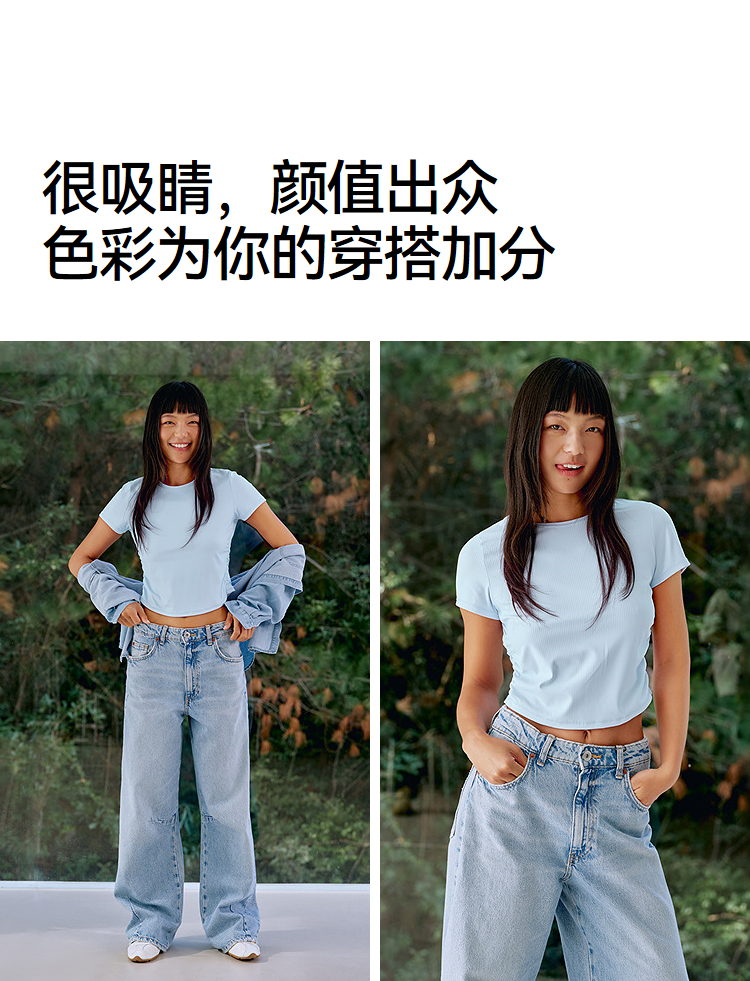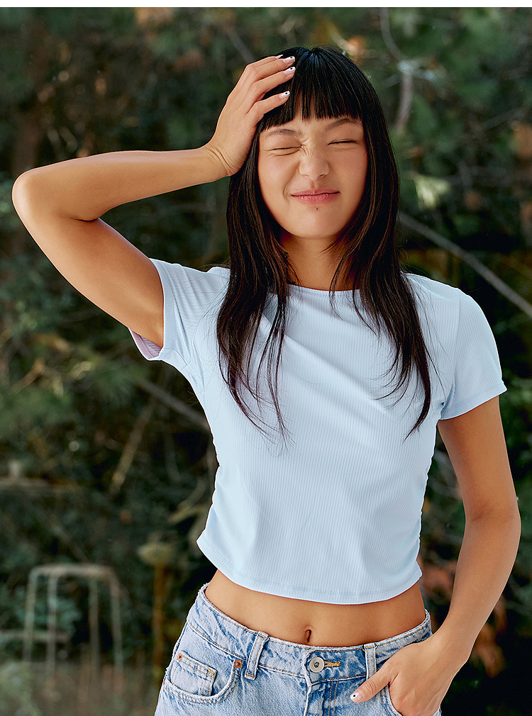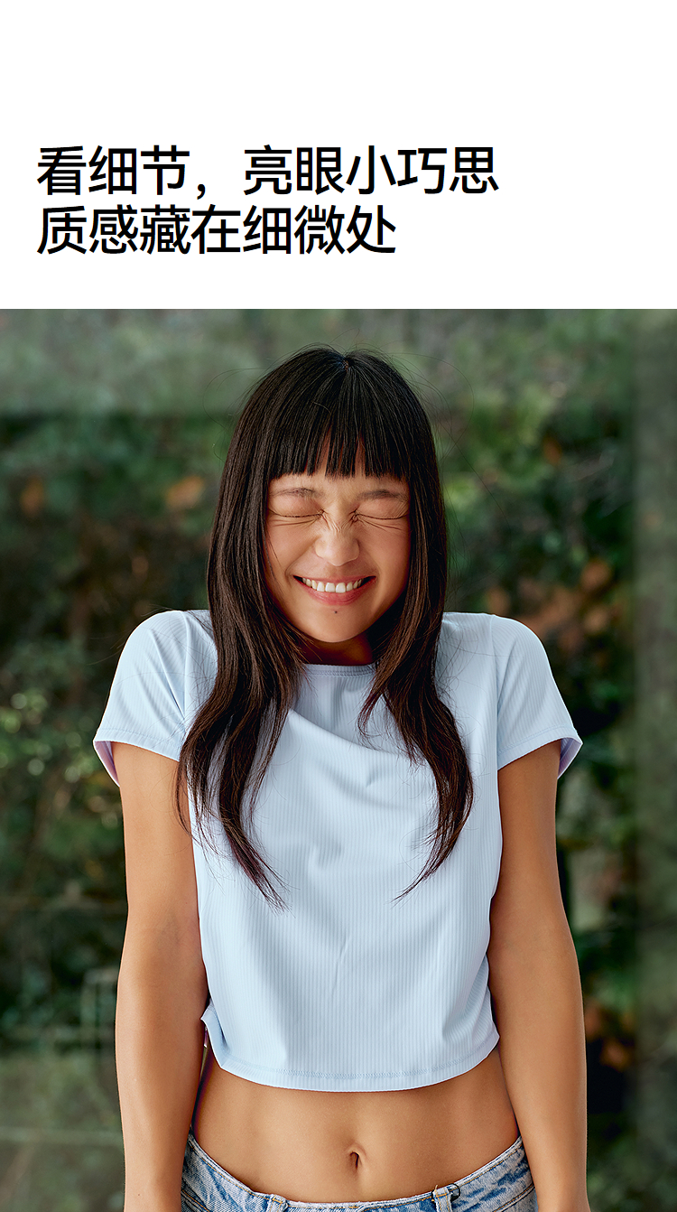 森马短袖T恤女夏季短款吸湿速干凉感修身正肩褶皱显瘦小心机上衣