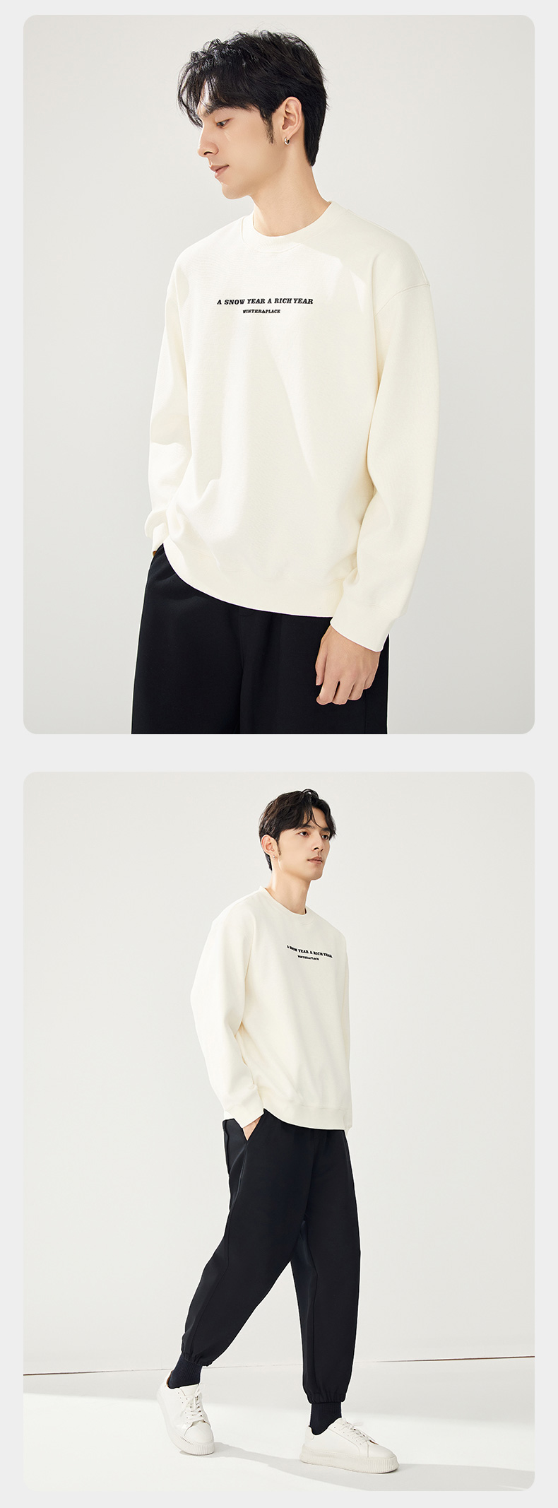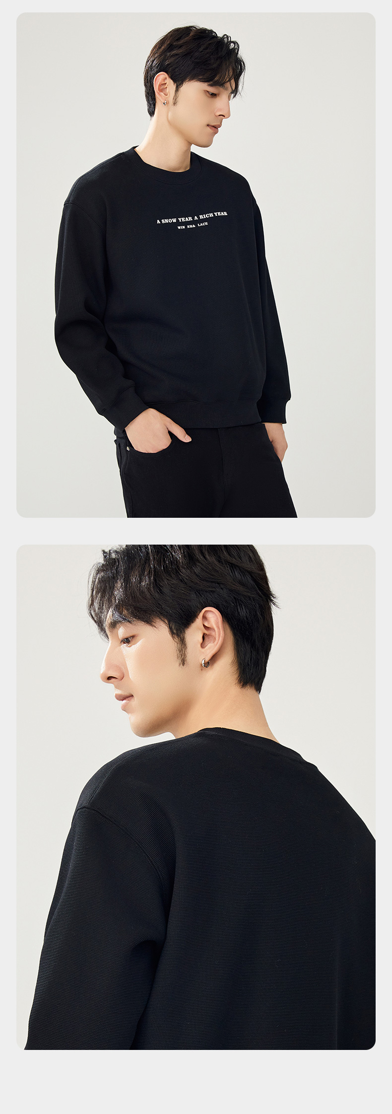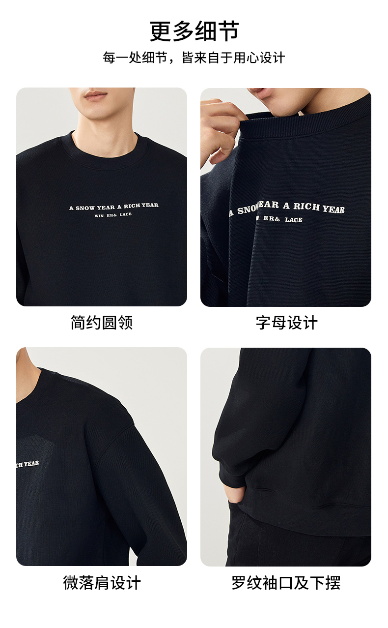 贝纳川圆领加绒字母图案卫衣ECT324002