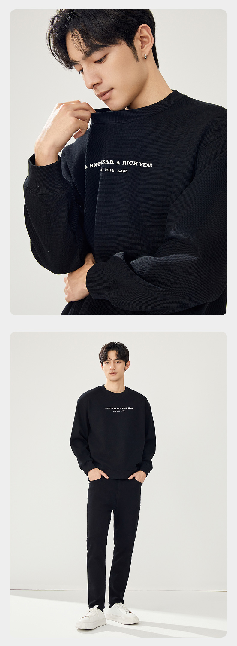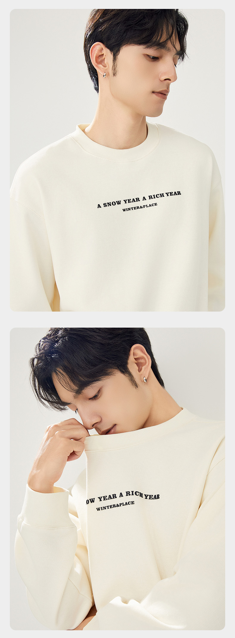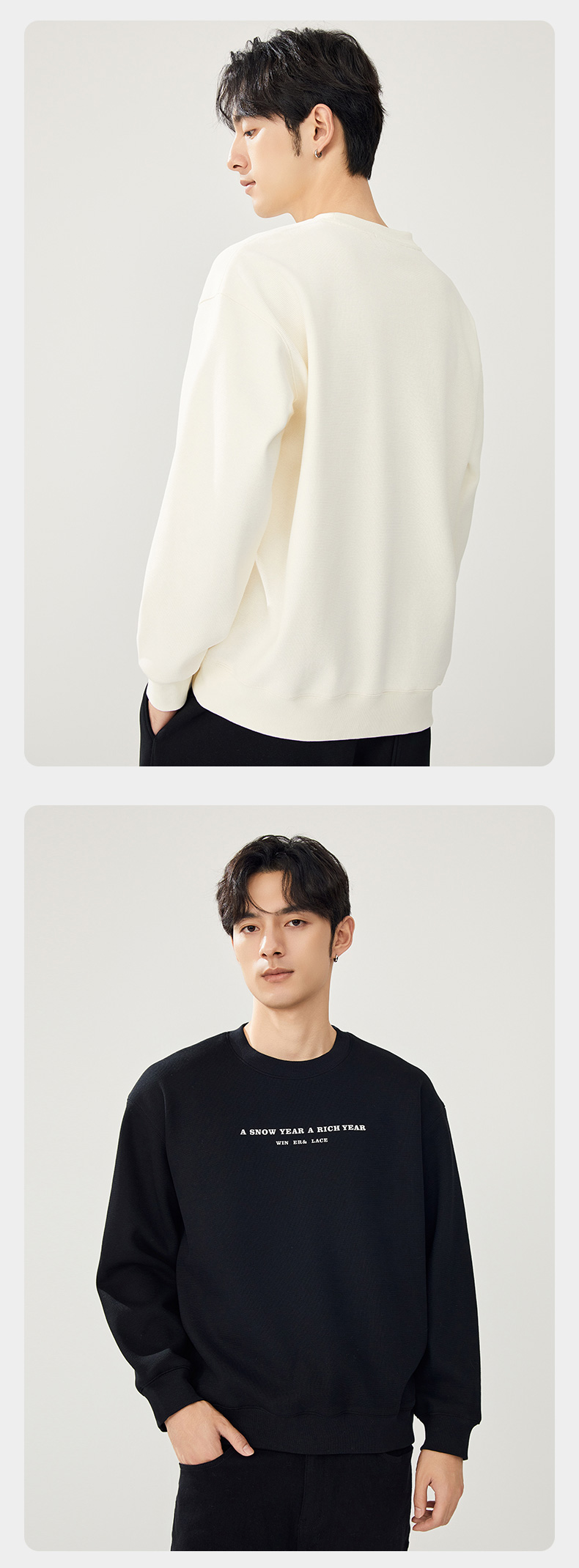 贝纳川圆领加绒字母图案卫衣ECT324002