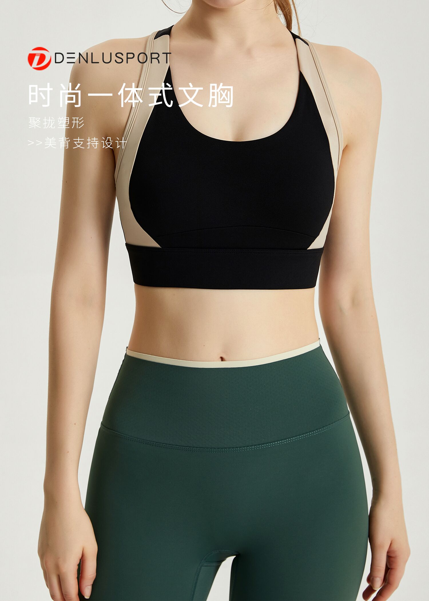 秋冬季新款一体式运动文胸DY66030#时尚拼色超强承托固定一体不跑杯复合粘胶腰围贴合胸围不卷边