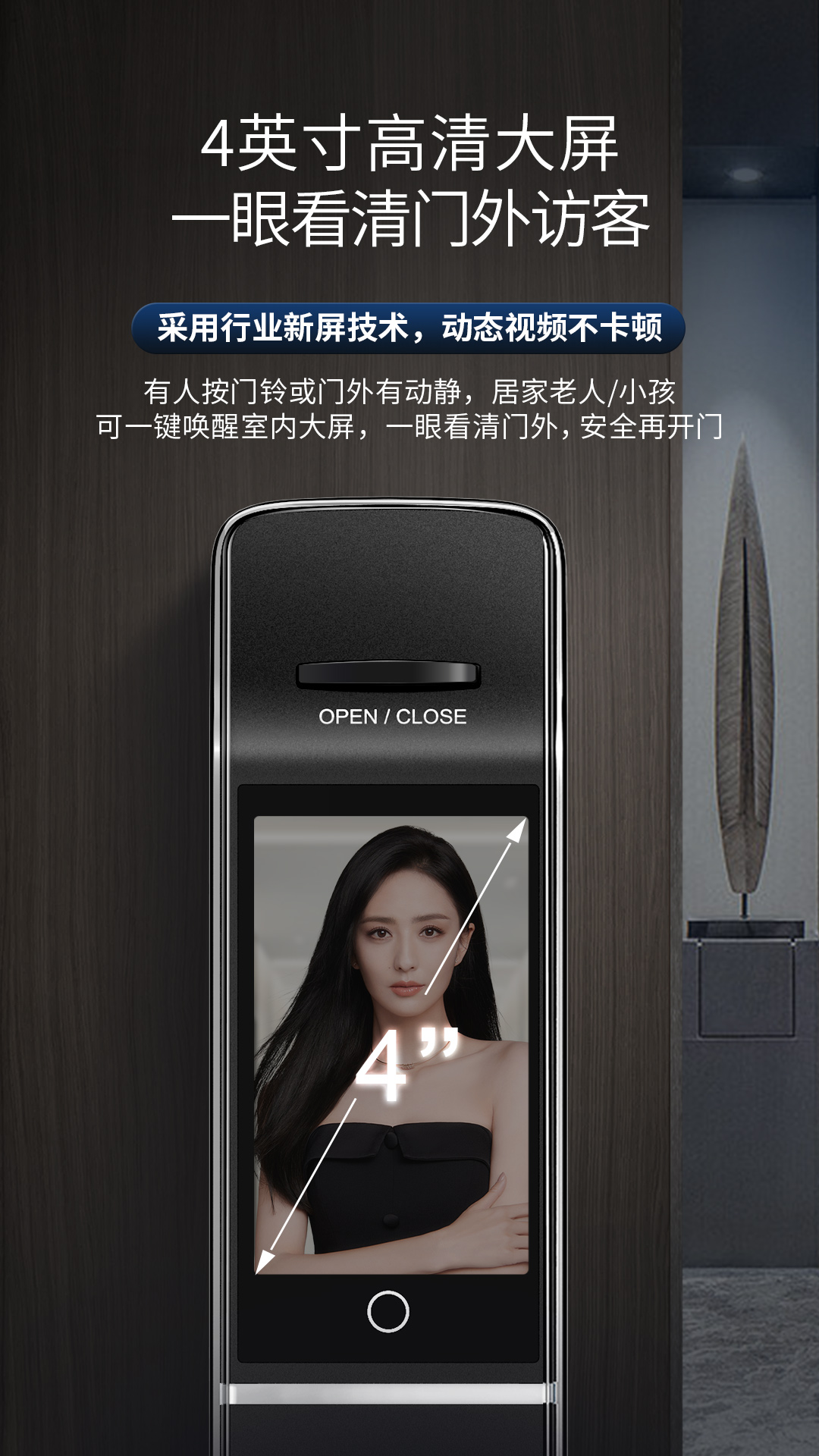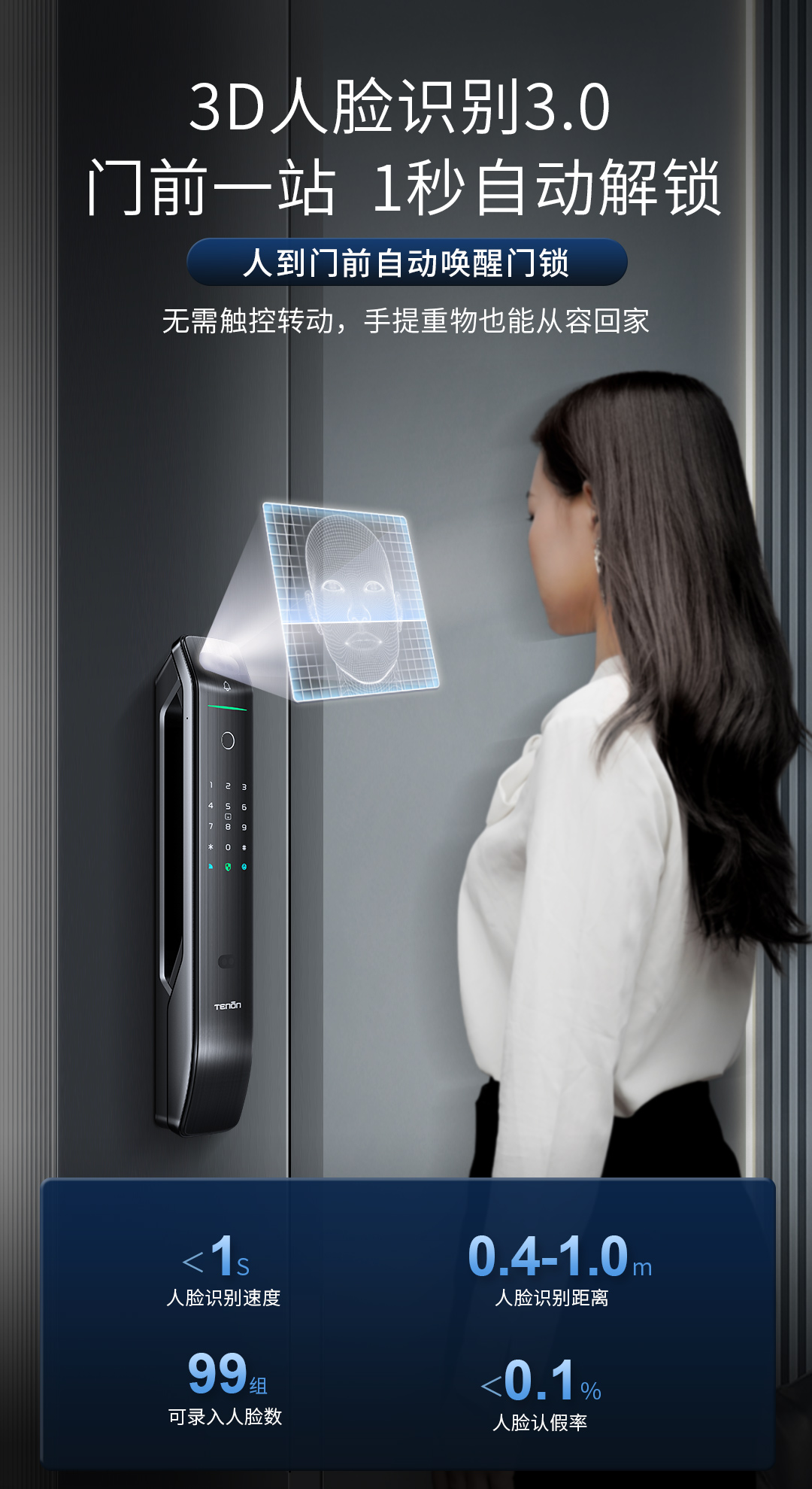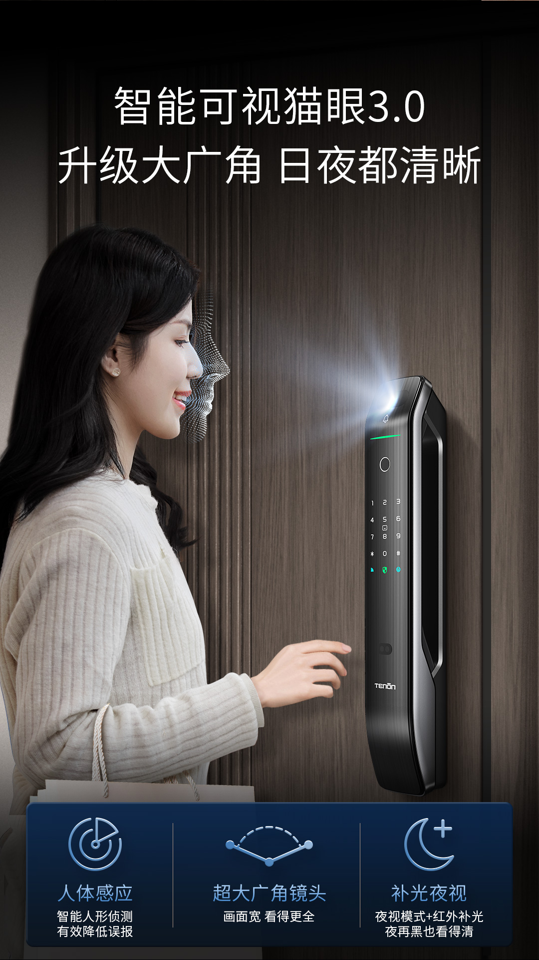 亚太天能智能锁A9pro人脸识别可视猫眼带屏监控指纹锁密码锁智能门锁