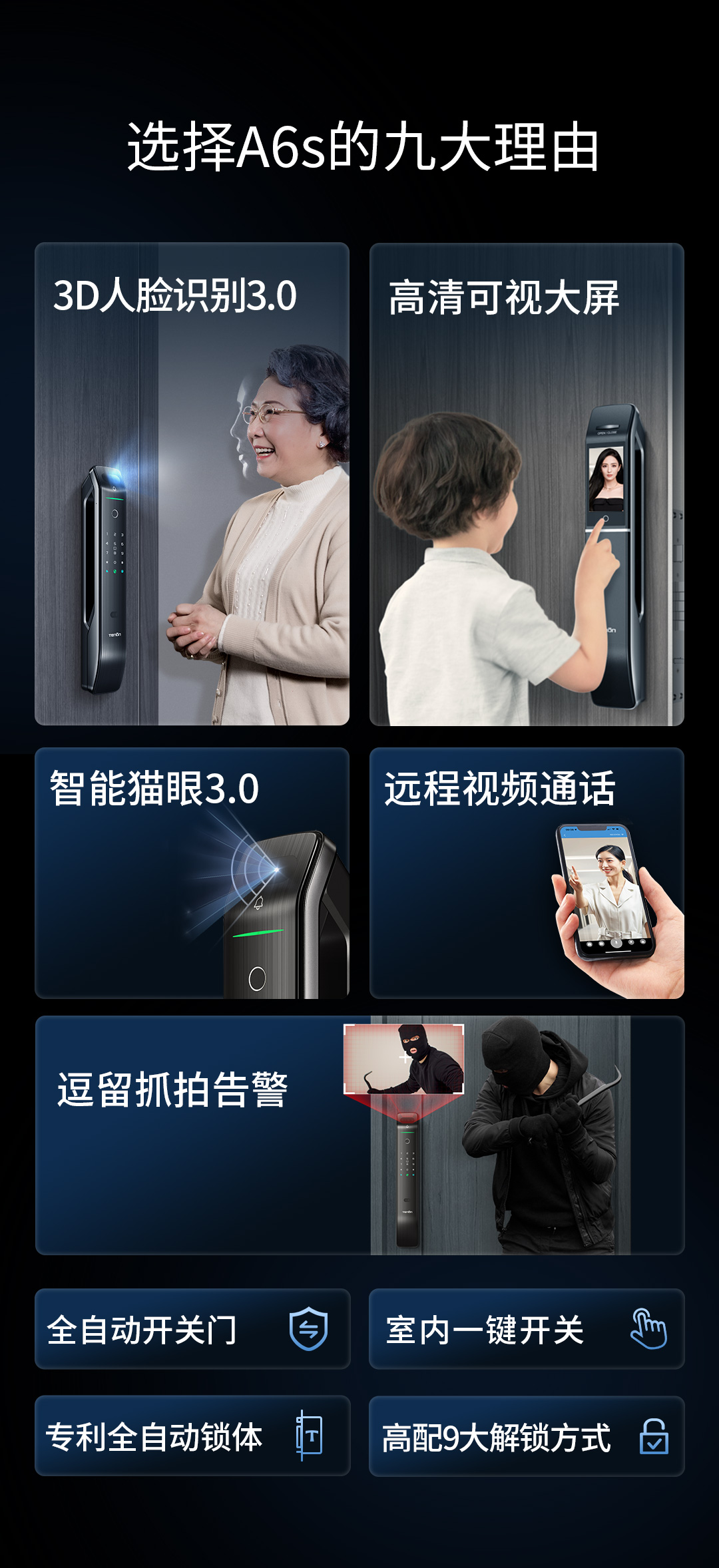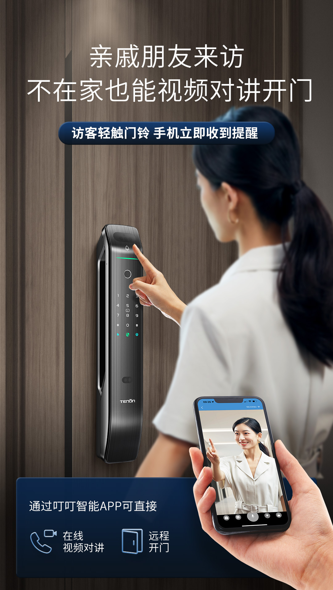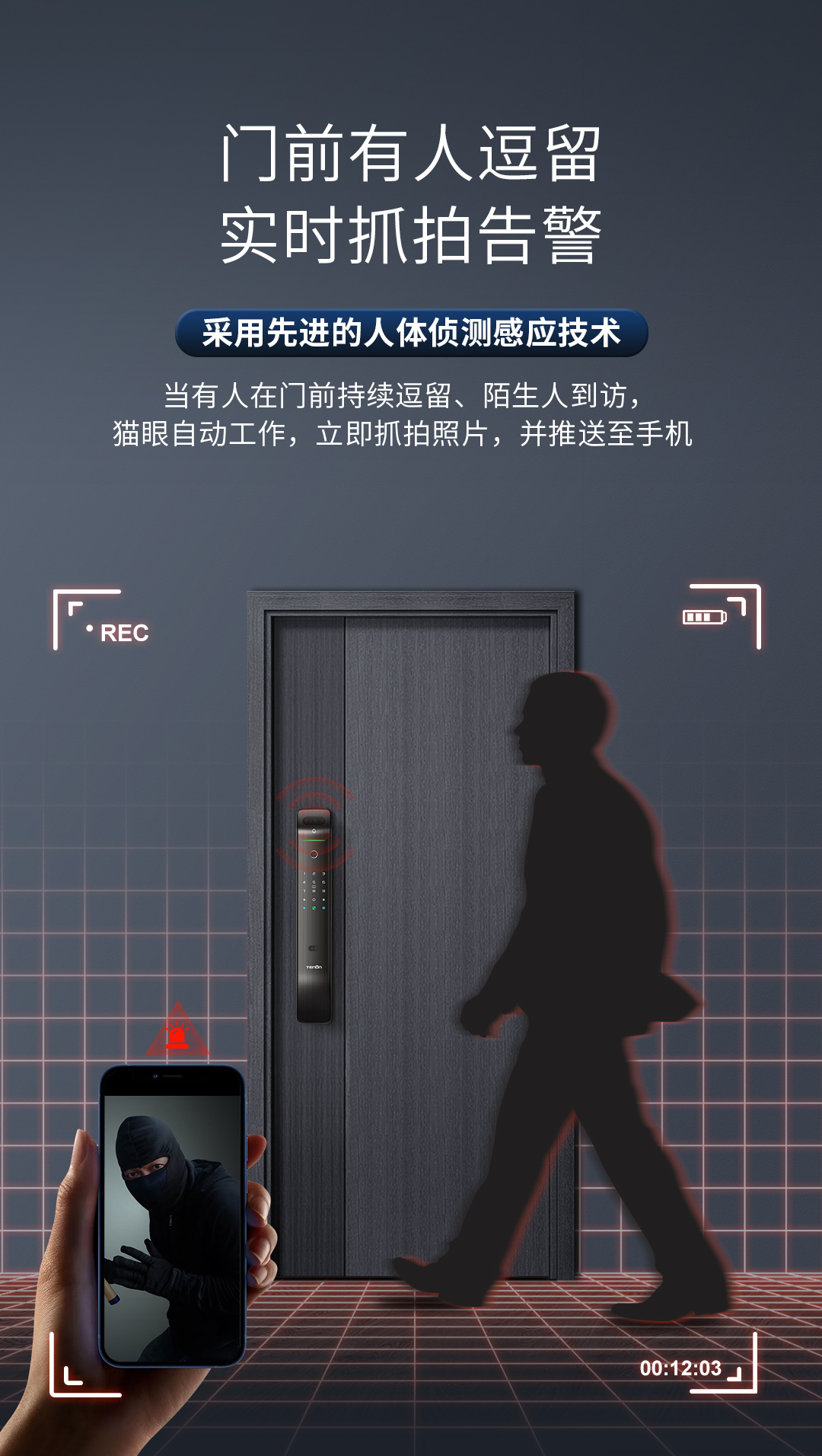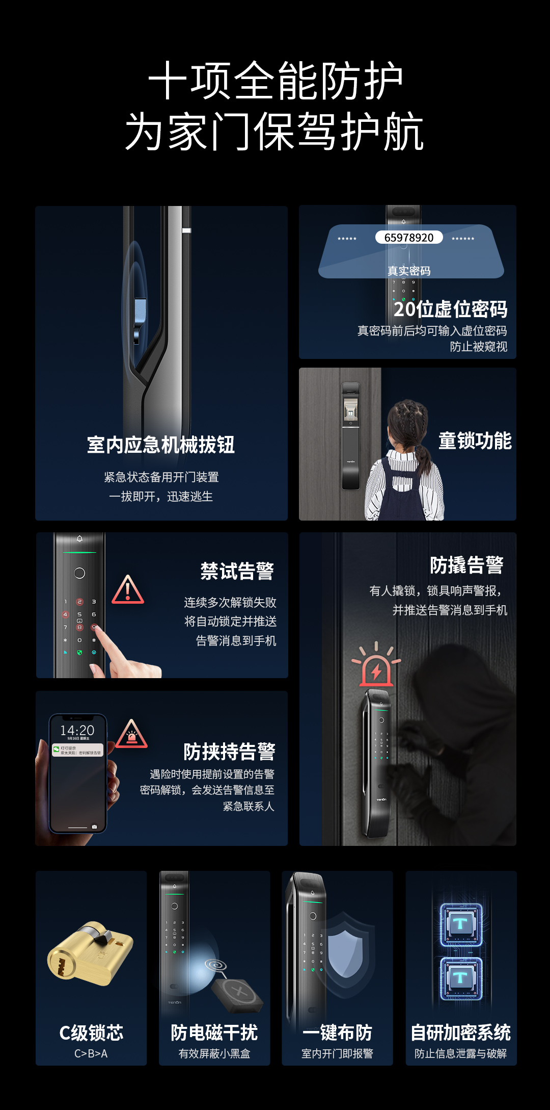 亚太天能智能锁A9pro人脸识别可视猫眼带屏监控指纹锁密码锁智能门锁