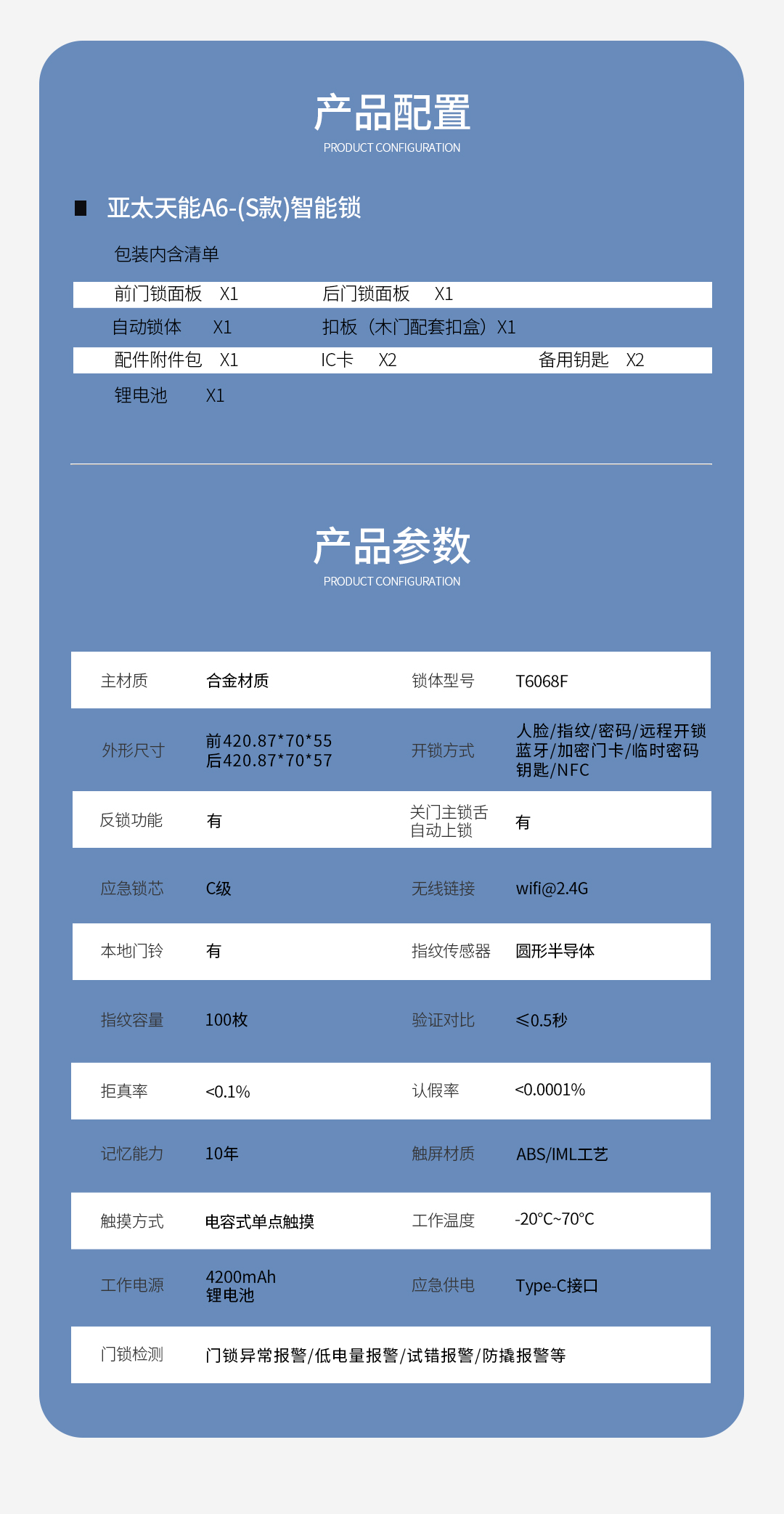 广东亚太天能科技股份有限公司(股票代码833559)成立于2011年,旗下品牌:亚太天能TENON。注册资本1.02亿,是国家高新技术企业、中国首家智能指纹锁行业上市公司。