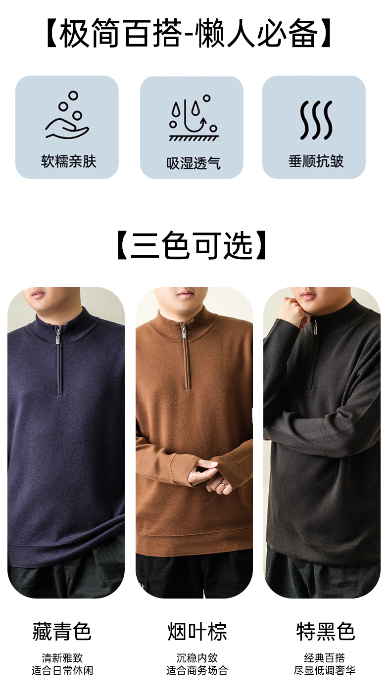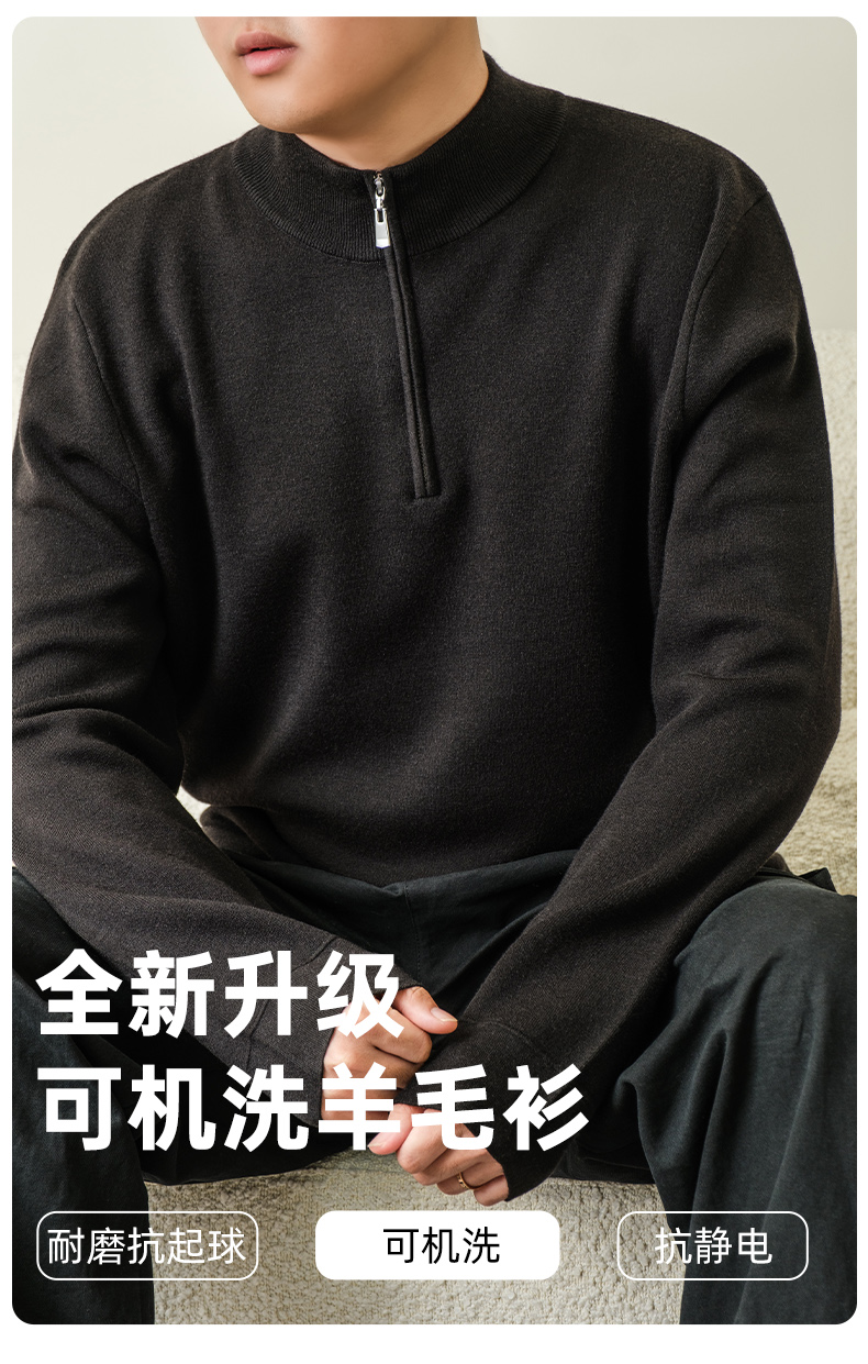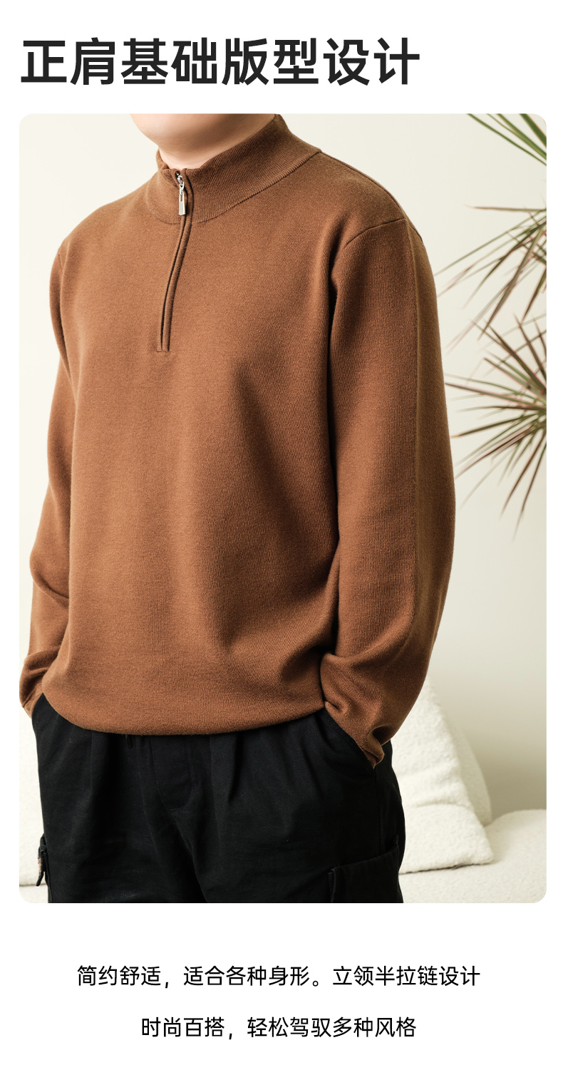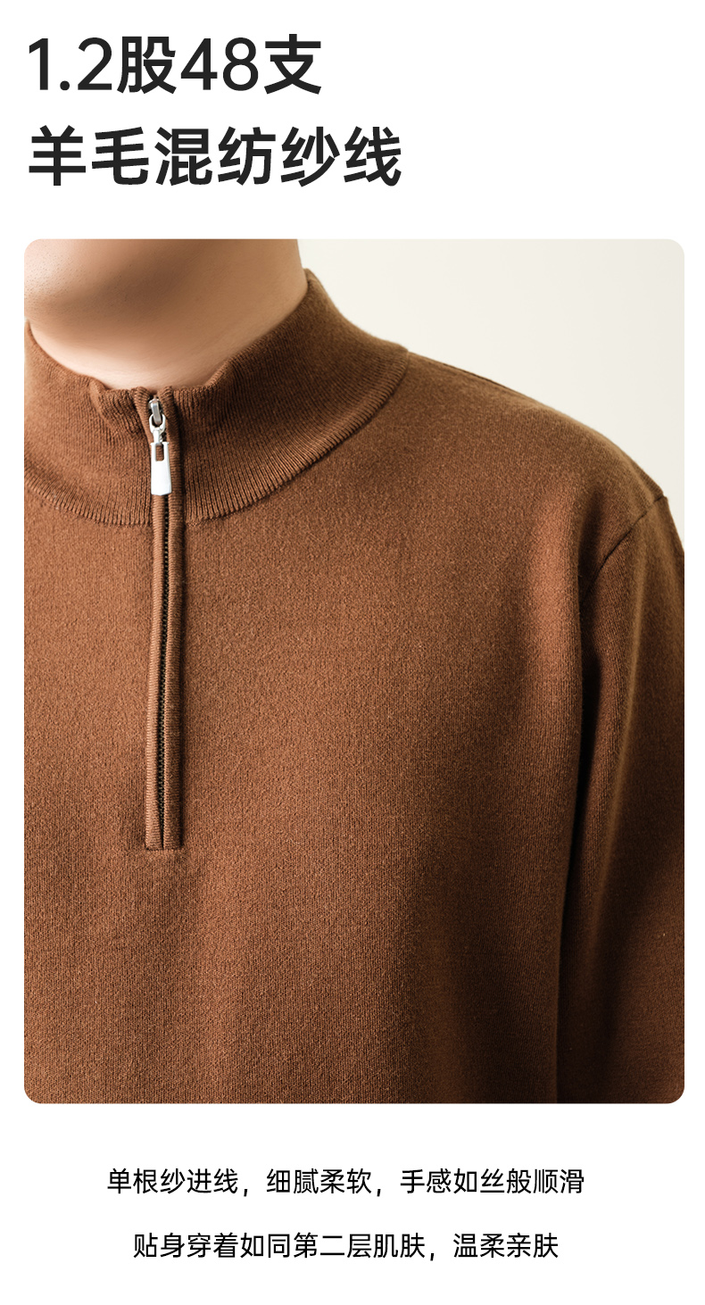 【可机洗羊毛衫】5天内发货!千元质量小立领半拉链毛衣男2025冬爸爸打底针织衫JX27