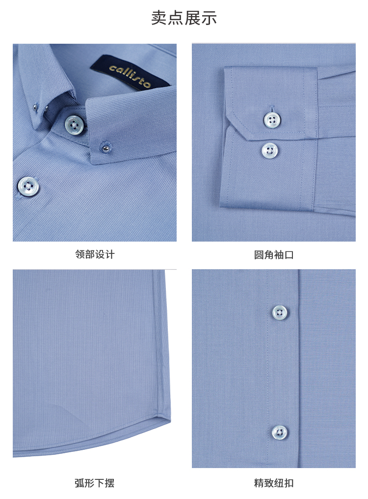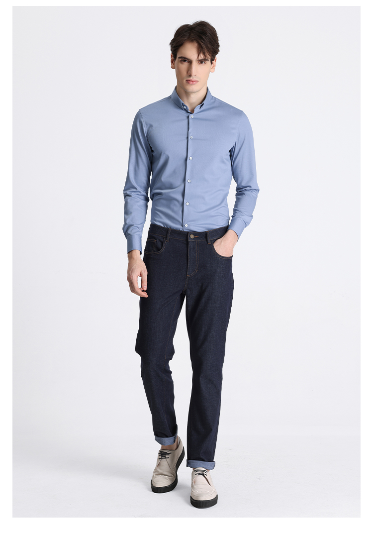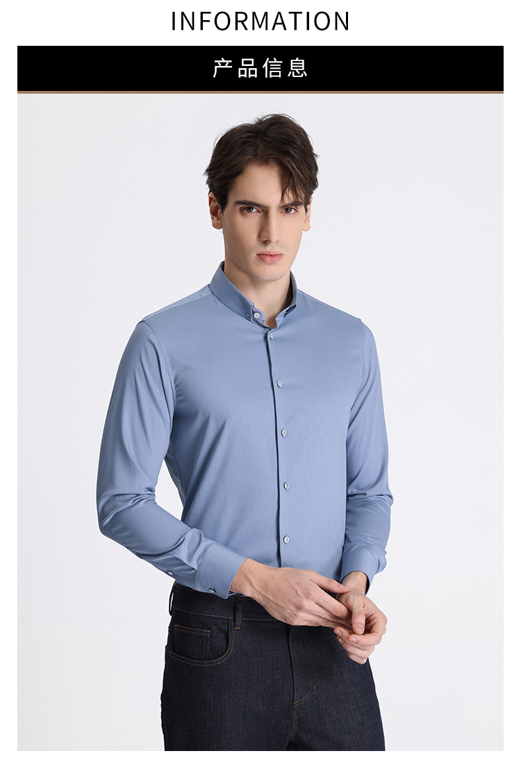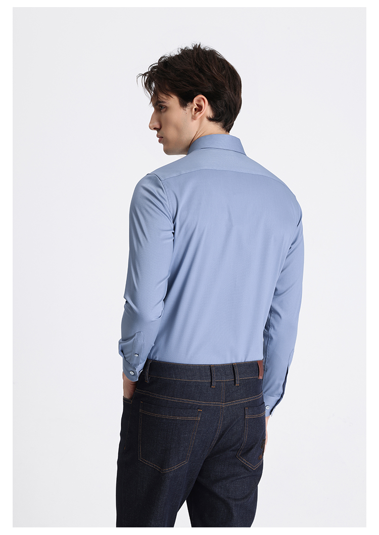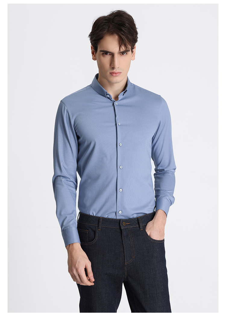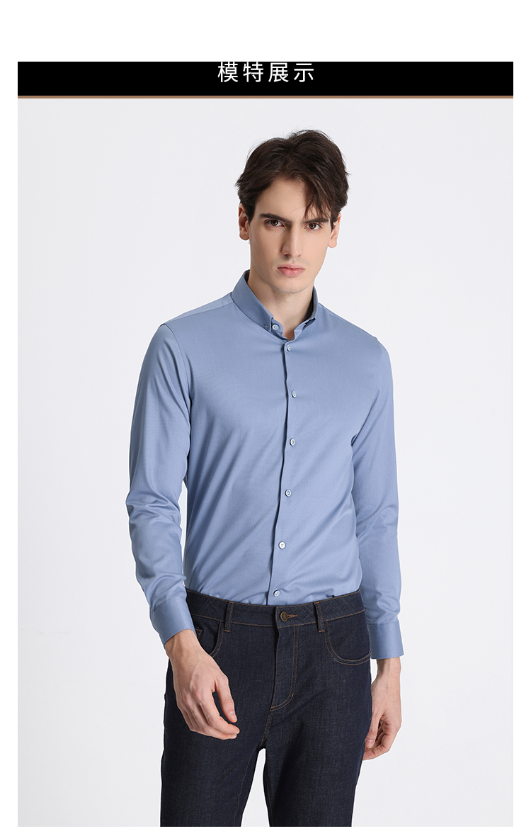 callisto蓝色粘纤混纺长袖衬衫 STSTL022C