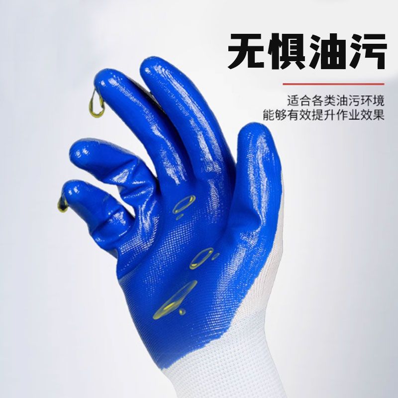 12双耐磨耐油丁腈劳保手套耐用工地劳保防水加厚尼龙橡胶手套