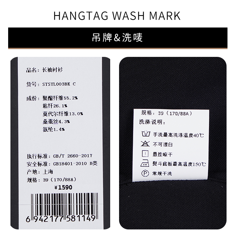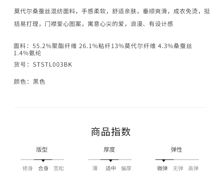 callisto黑莫代尔桑蚕丝混纺长袖衬衫 STSTL003C