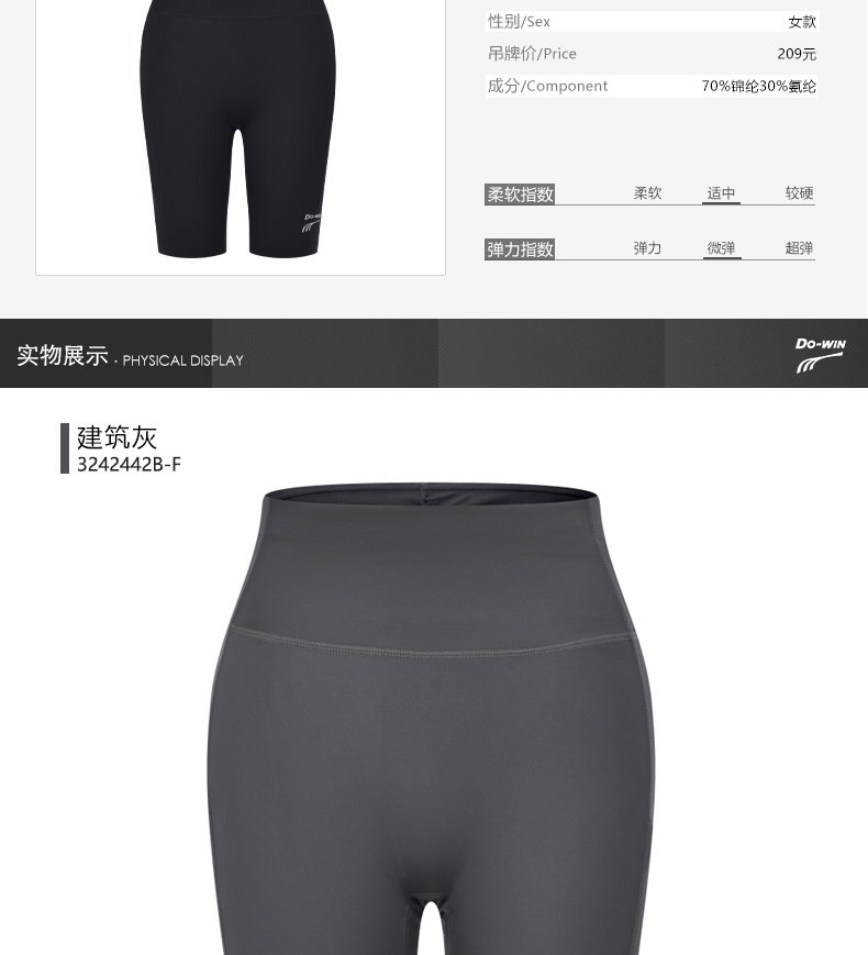 多威紧身裤女新款柔软五分紧身裤速干运动裤3242442