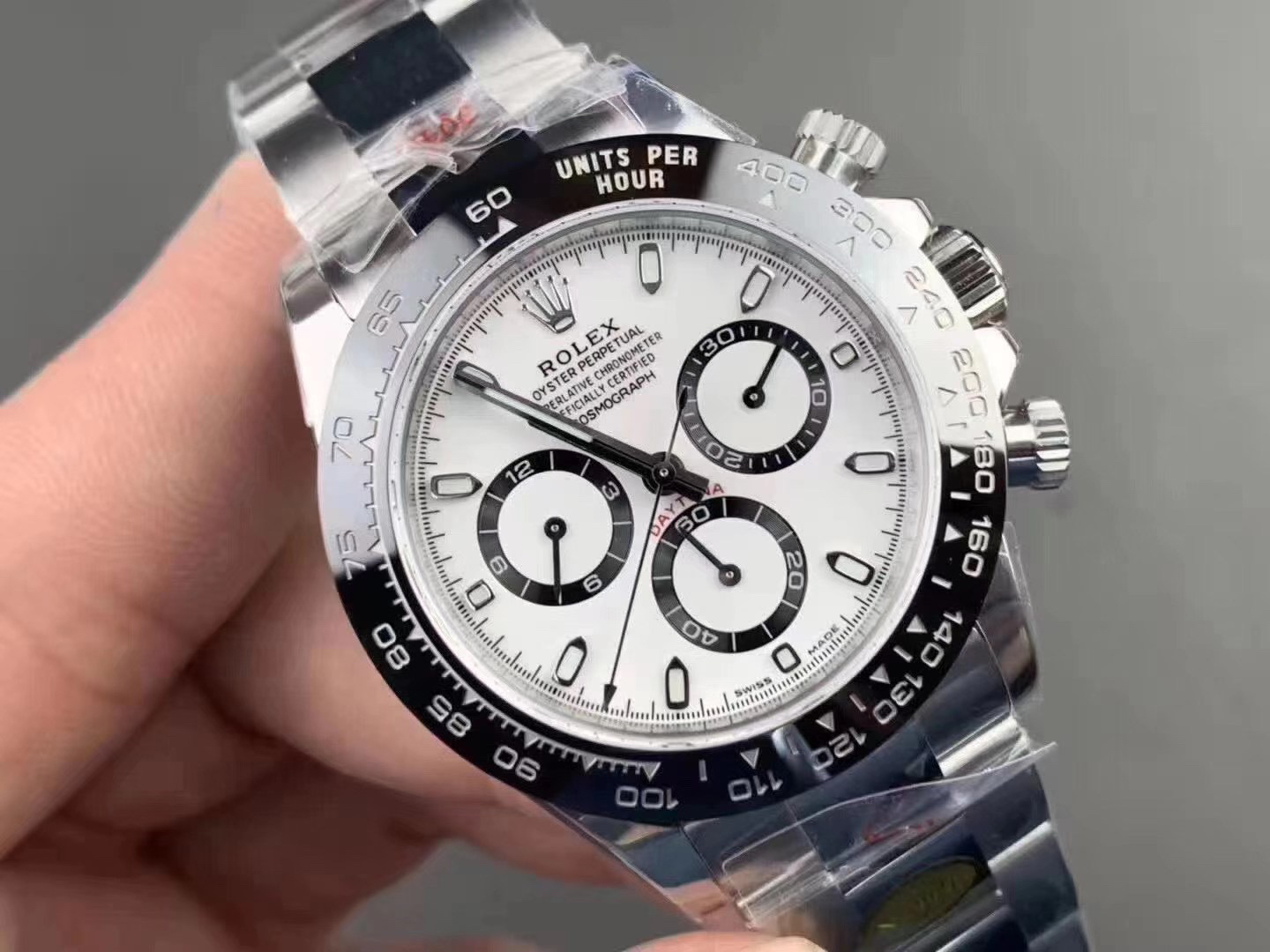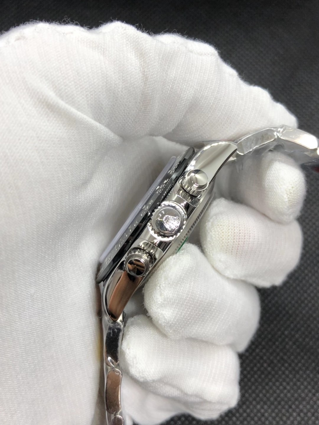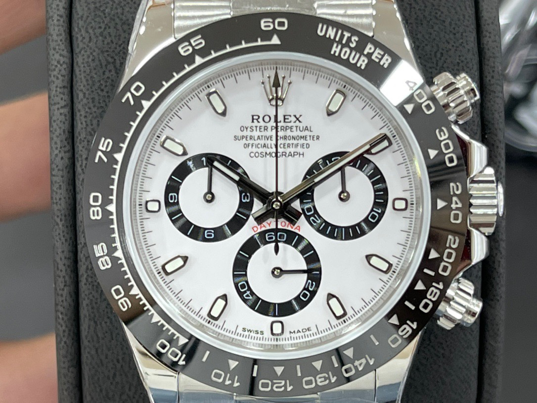 迪通拿熊猫N厂 神器,劳li士迪通拿 本116500, 正Cal.4130自动上链机芯,厚度和正品一致,904L钢。全部计时功能100% 实现,使用了订制版