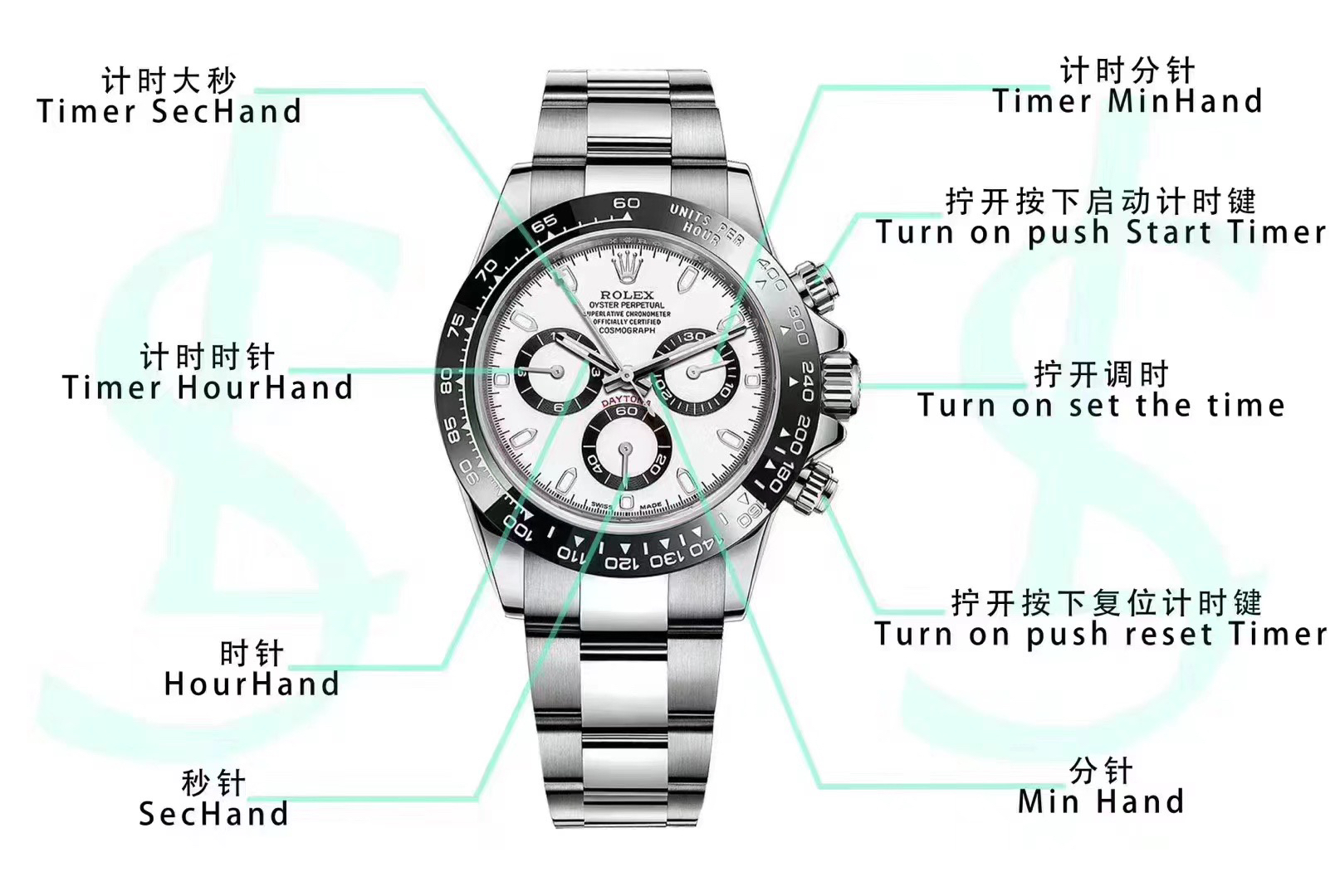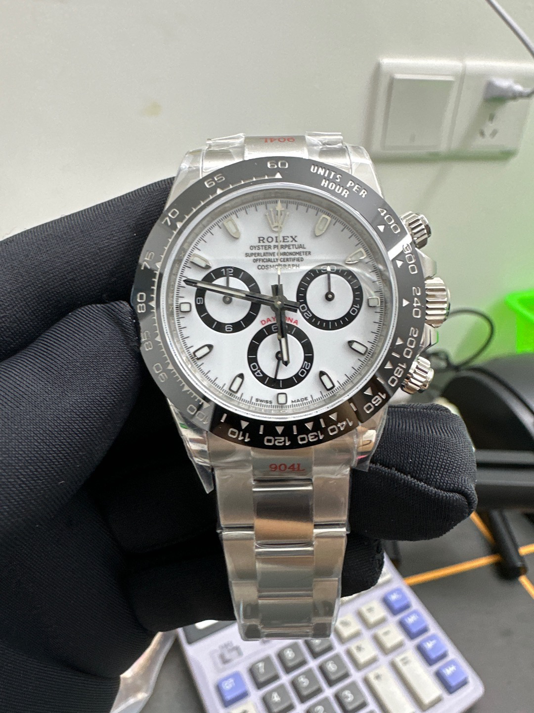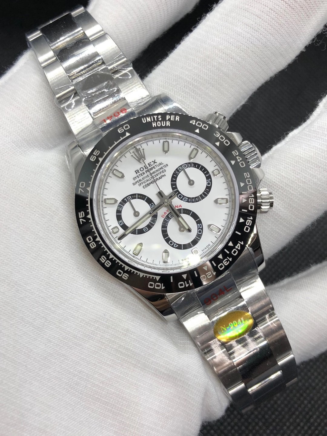 迪通拿熊猫N厂 神器,劳li士迪通拿 本116500, 正Cal.4130自动上链机芯,厚度和正品一致,904L钢。全部计时功能100% 实现,使用了订制版