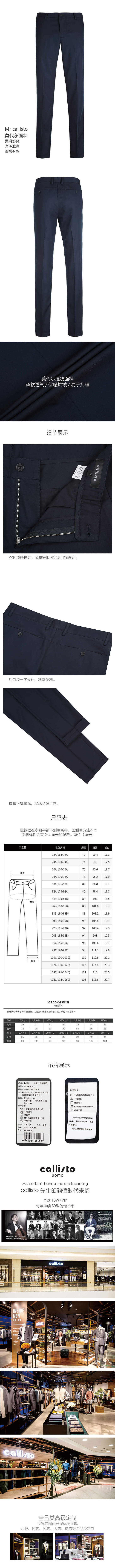 callisto男士2019秋冬新品藏青色微弹休闲长裤 SPCPWT02NA