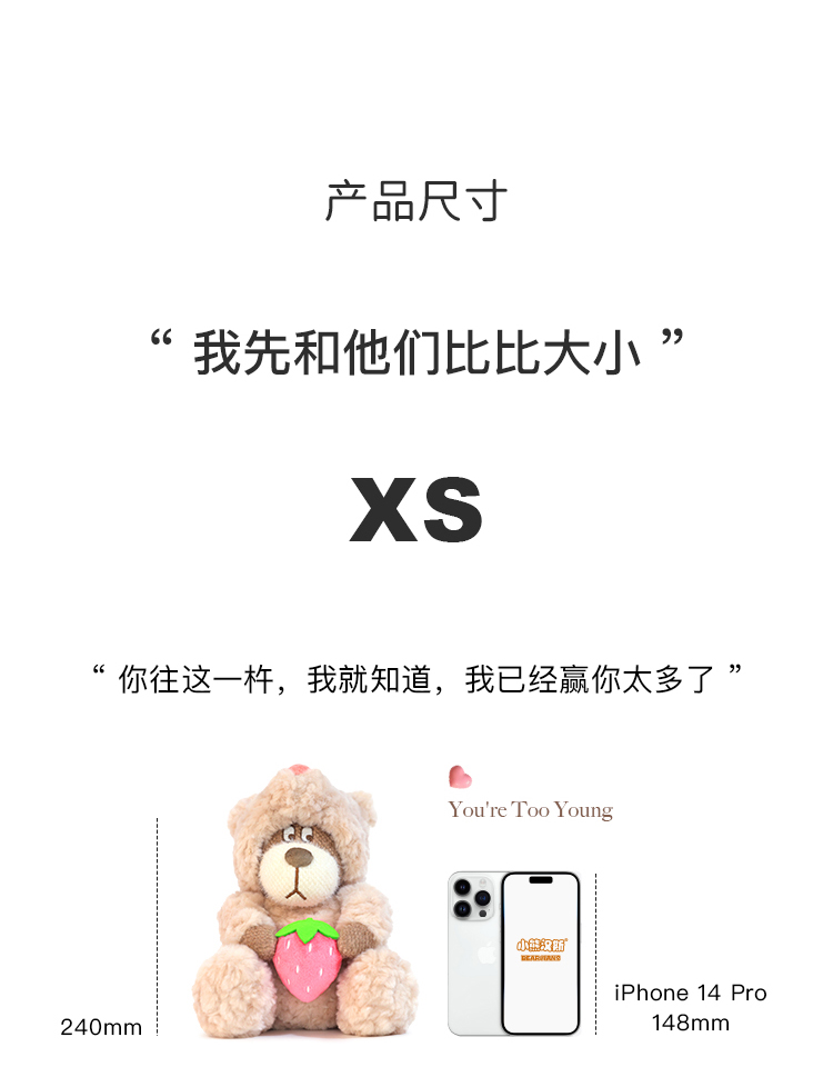 小熊汉斯 变身草莓熊粉灰-XS-S-M