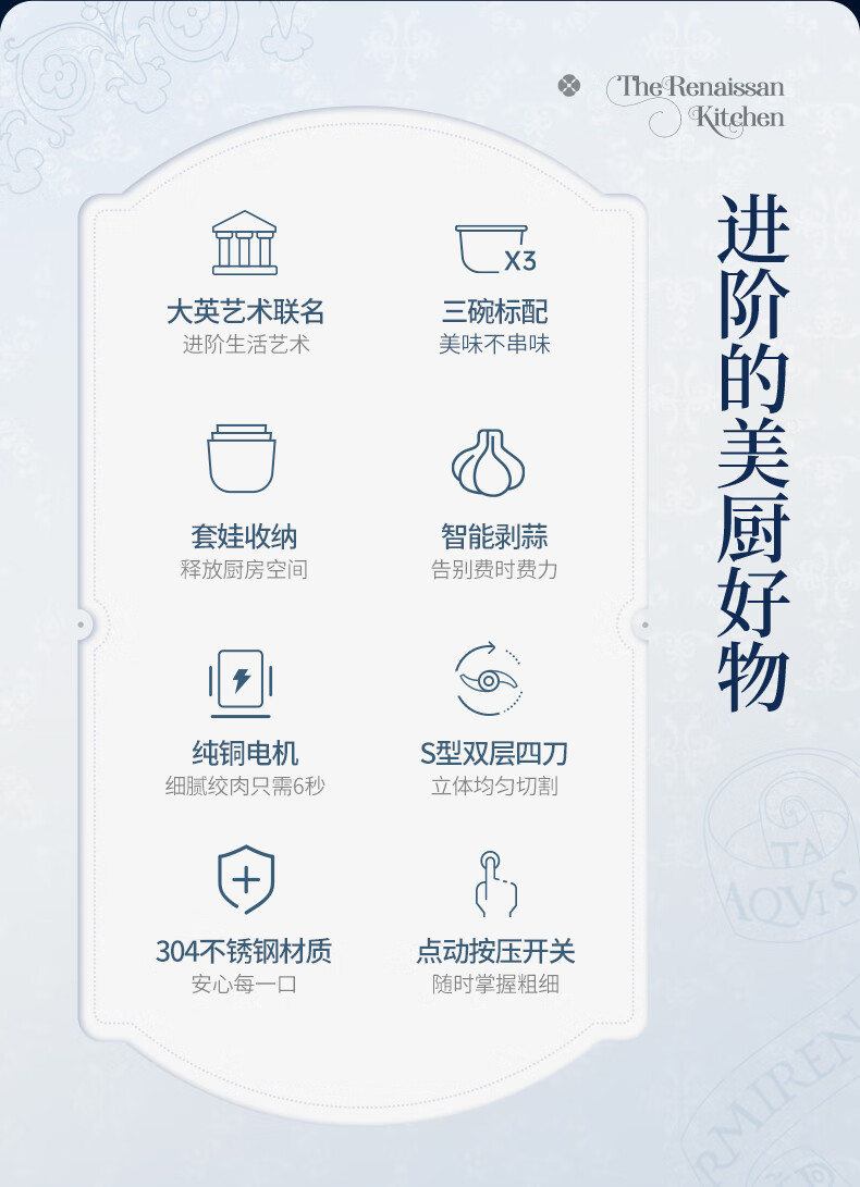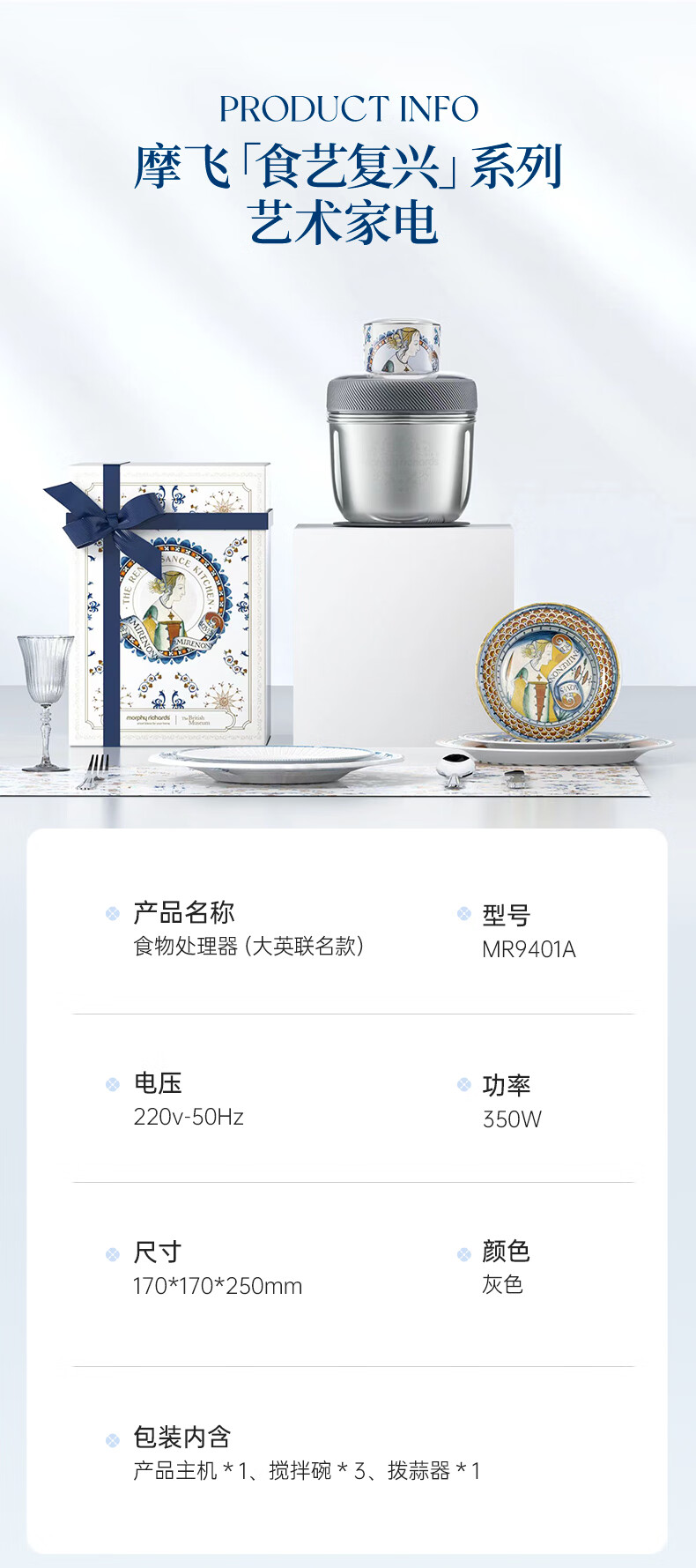 摩飞电器(Morphyrichards)绞肉机 家用绞馅机碎肉机电动多功能辅食料理机剥蒜器 MR9401A(大英博物馆联名款)