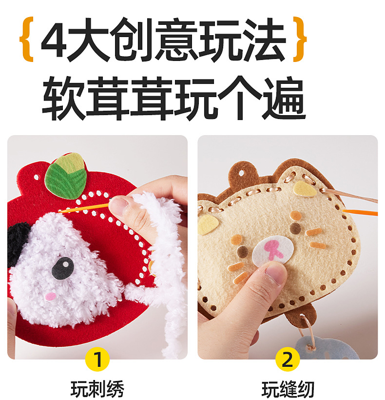 【毛绒绒小惊喜 送到心坎里】美乐童年女孩戳戳乐软乎乎DIY缝包包材料 儿童手工礼物益智玩具