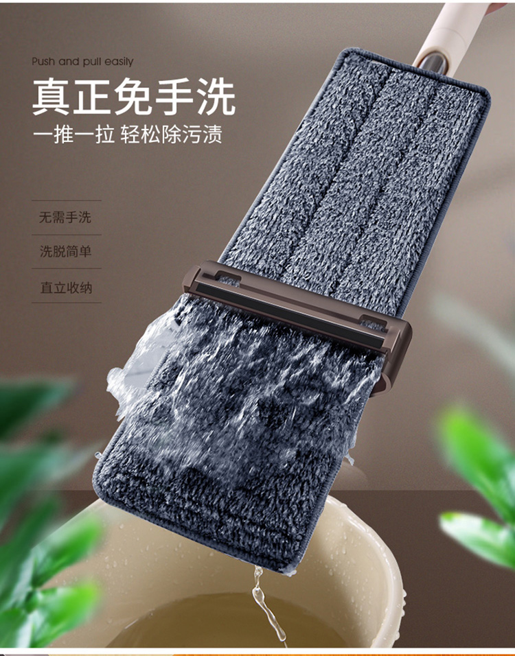 佳佰平板拖把 自动回弹平拖 免手洗拖把家用吸水地拖墩布 干湿两用拖把网红旋转拖布TB200