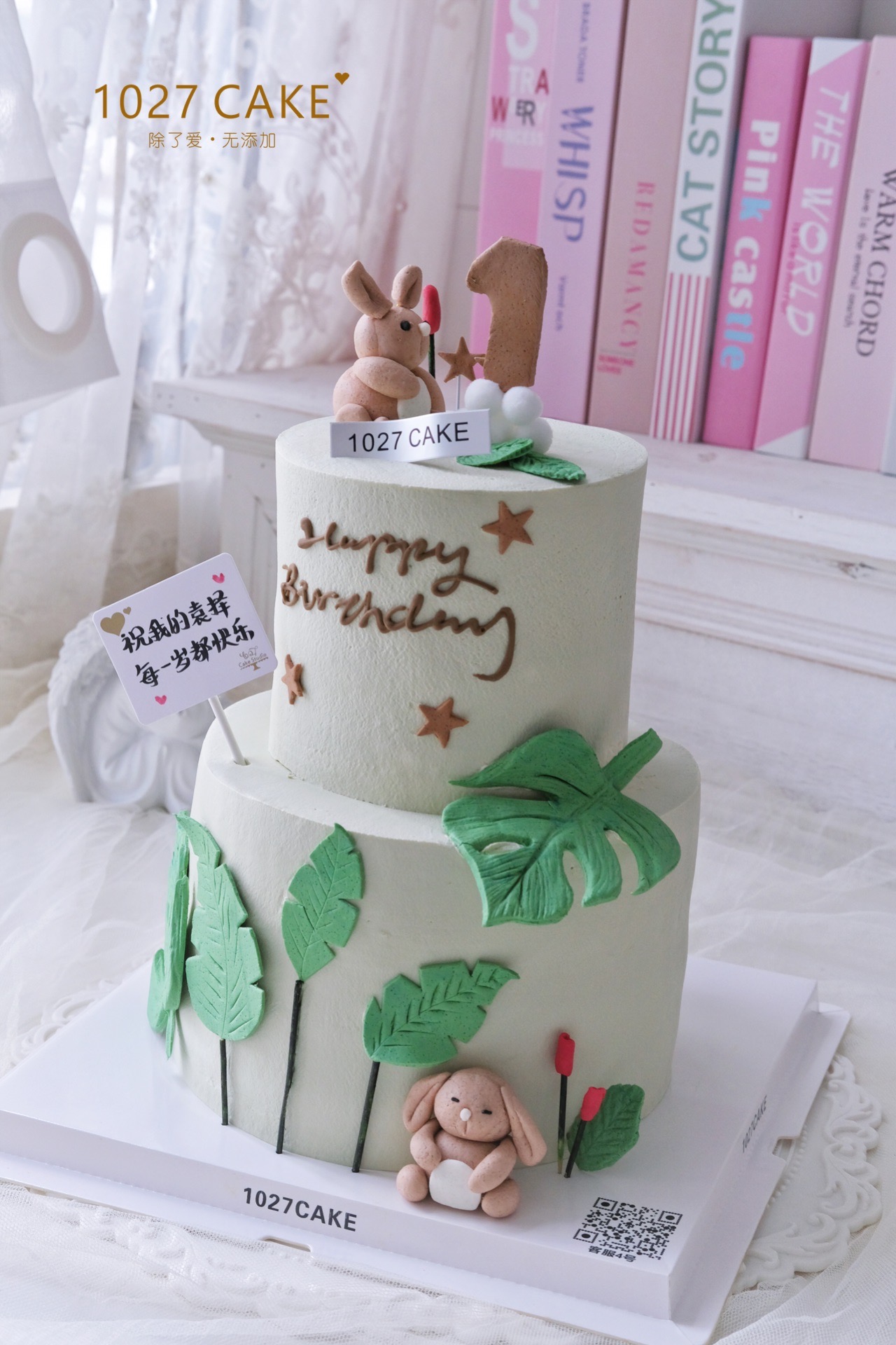 1027CAKE | 双层 兔兔周岁 手工翻糖装饰(需要提前2-3天预订)
