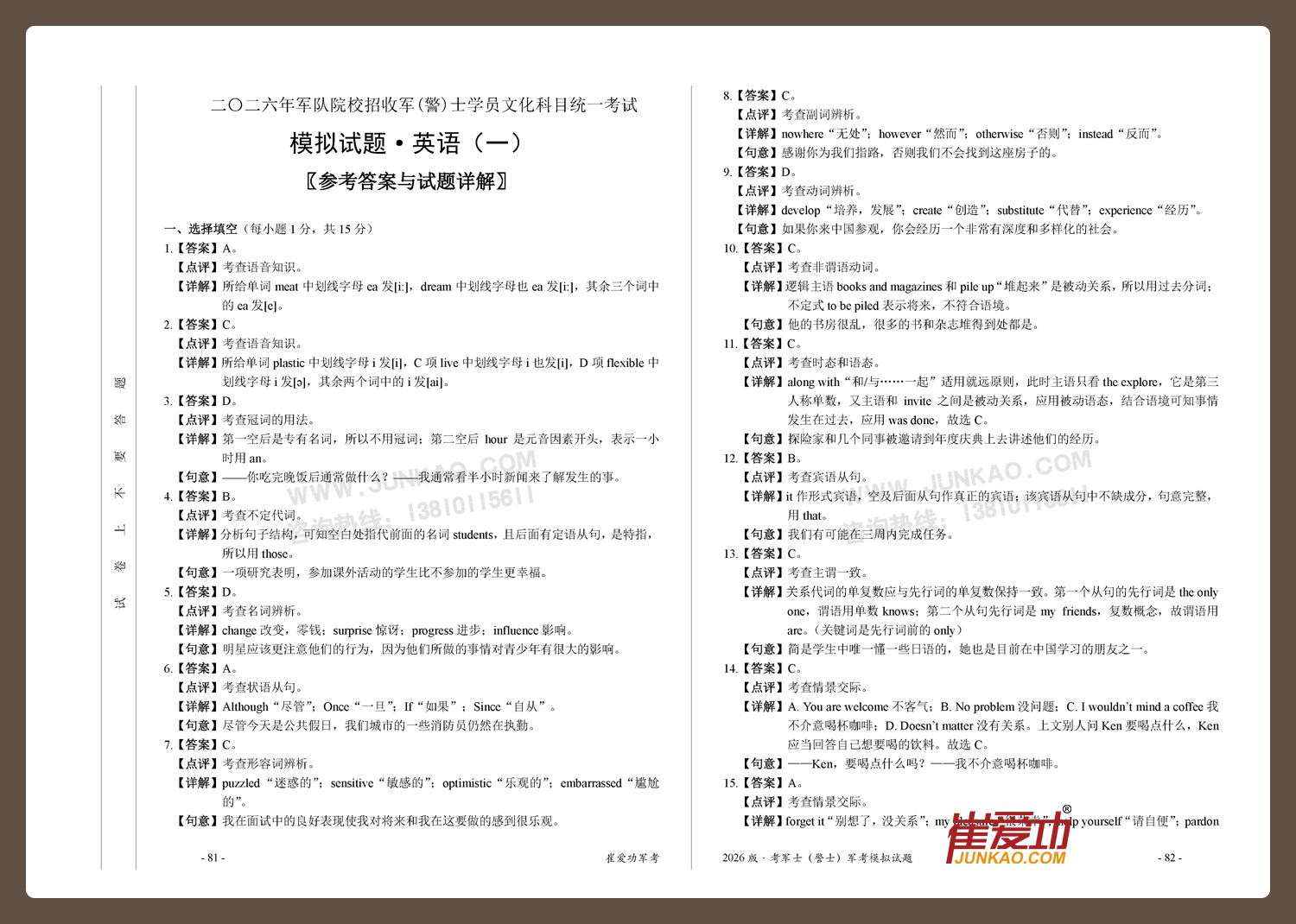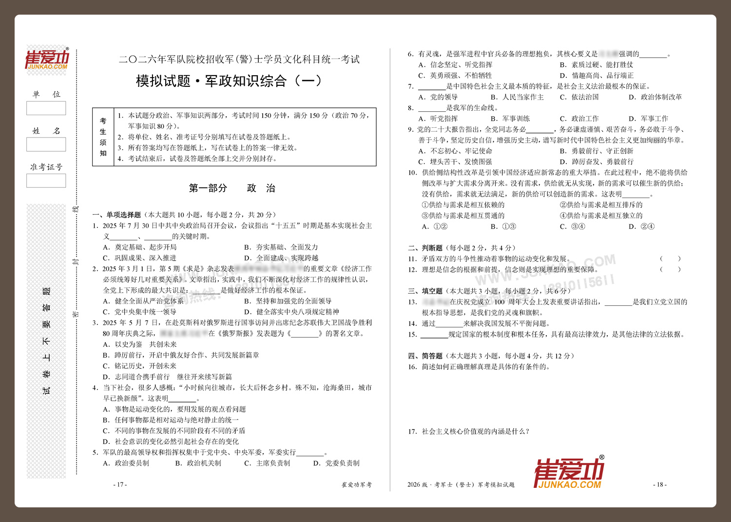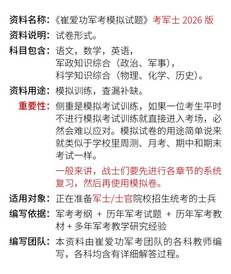 【考军士/警士】2026版崔爱功《军考模拟试题》解放军和武警(士官版)