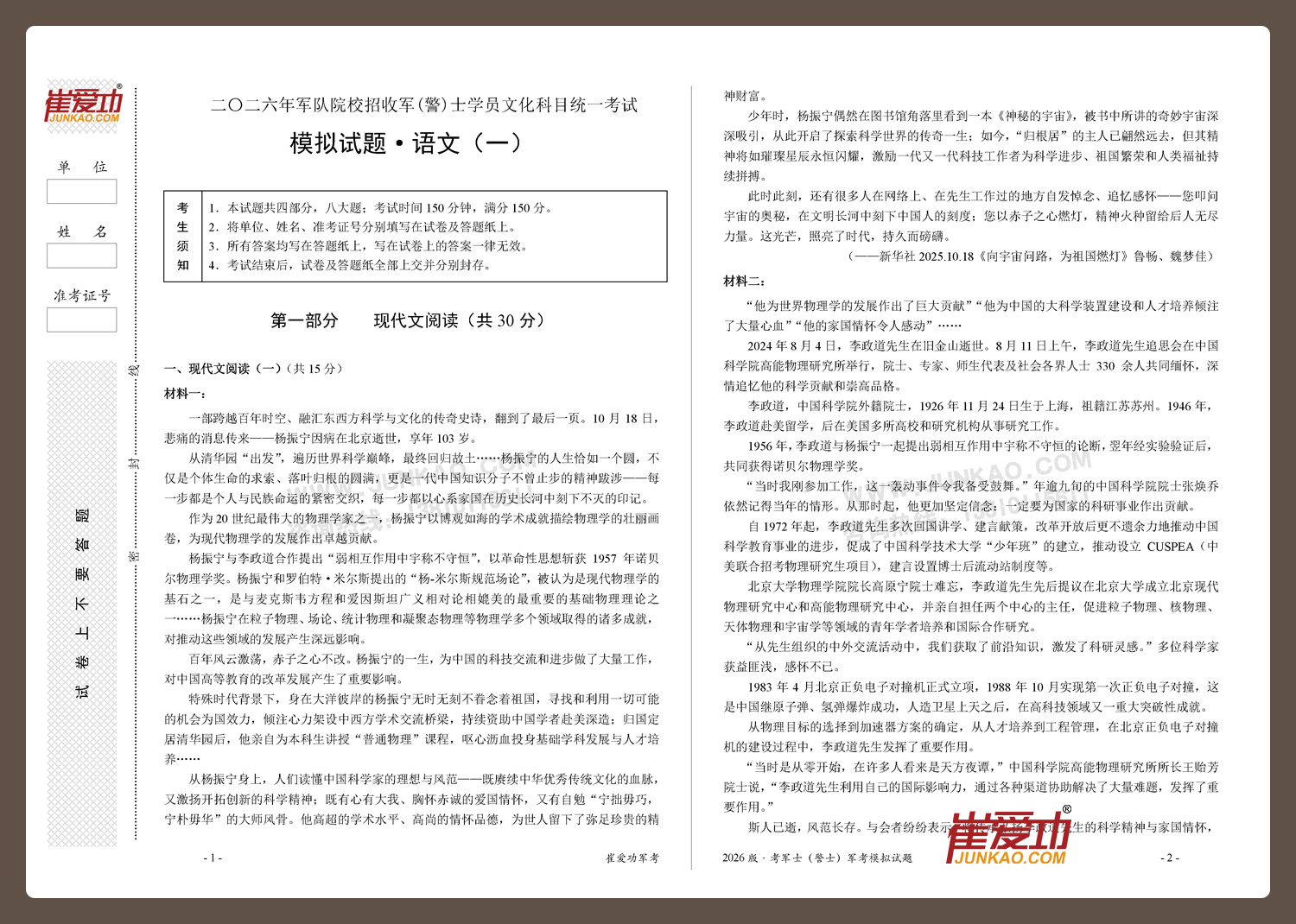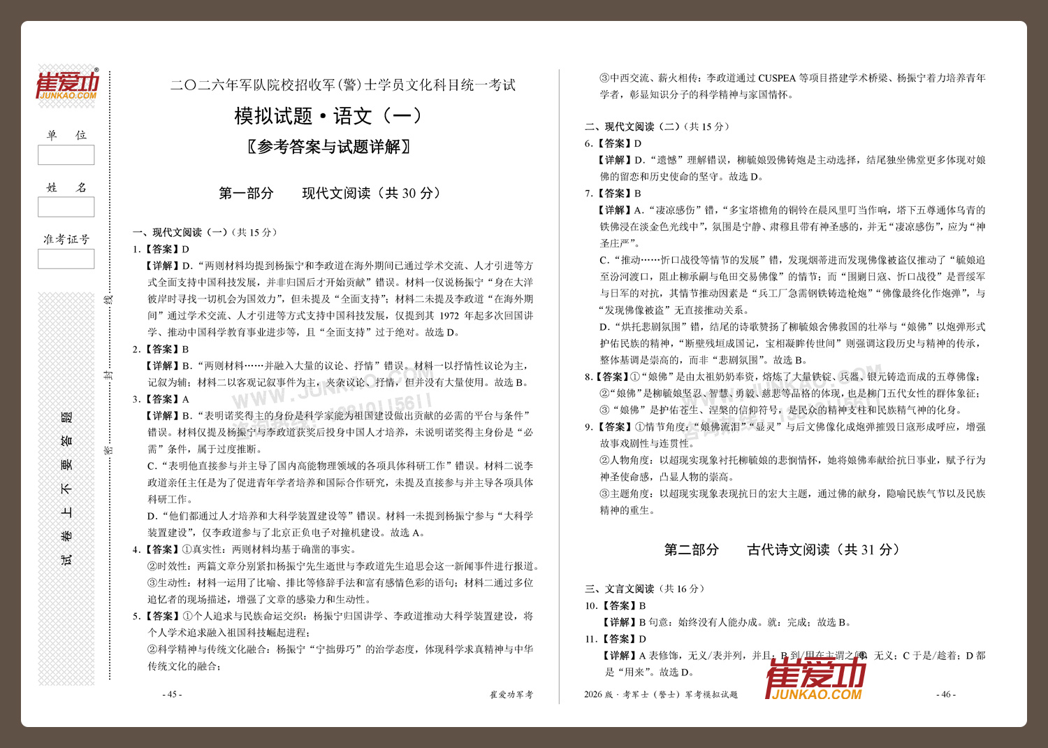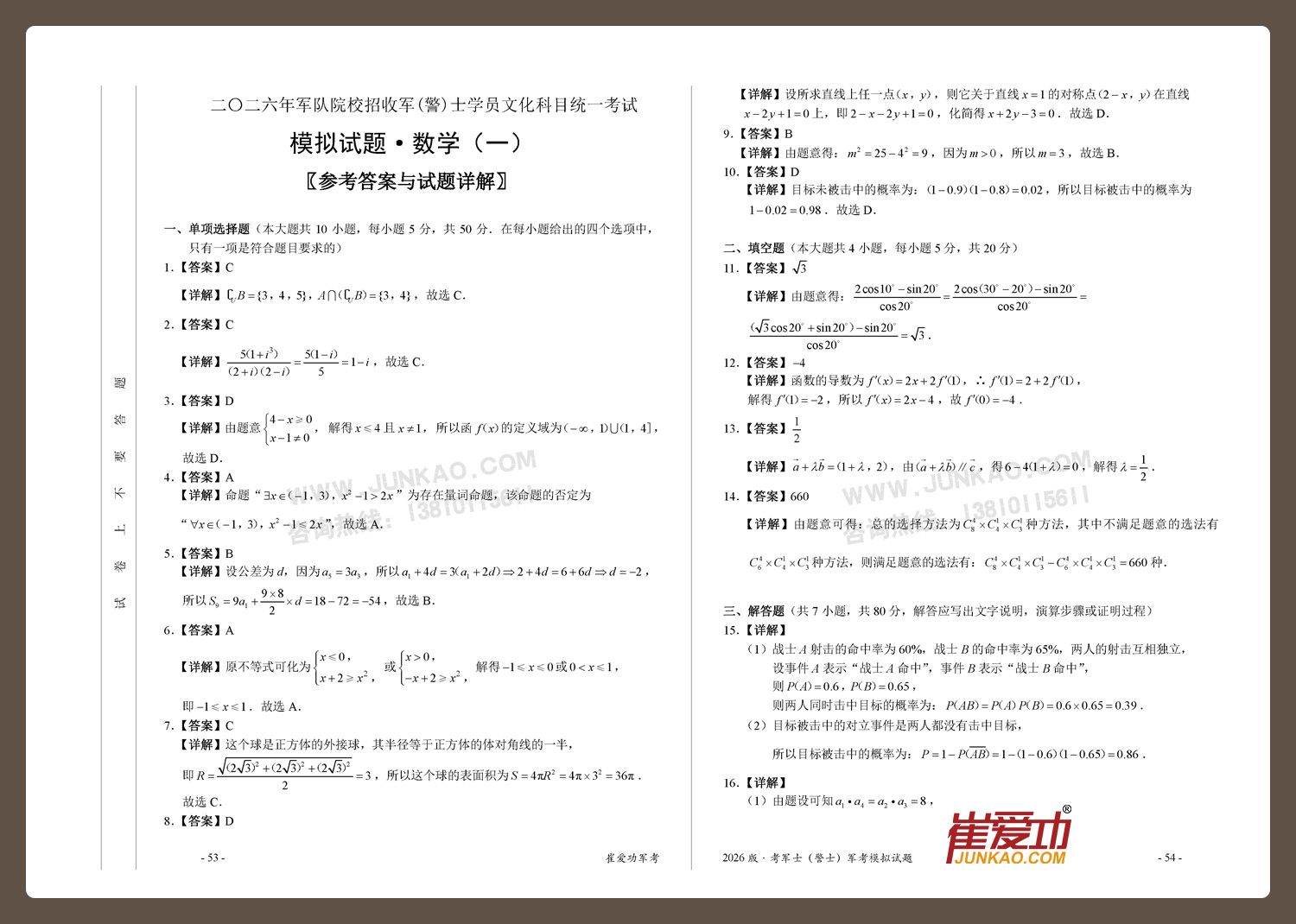 【考军士/警士】2026版崔爱功《军考模拟试题》解放军和武警(士官版)