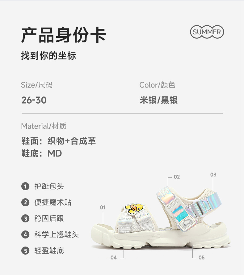 B.Duck小黄鸭童鞋儿童凉鞋男童小孩夏季鞋子百搭运动鞋 B2485062