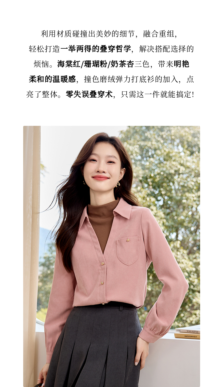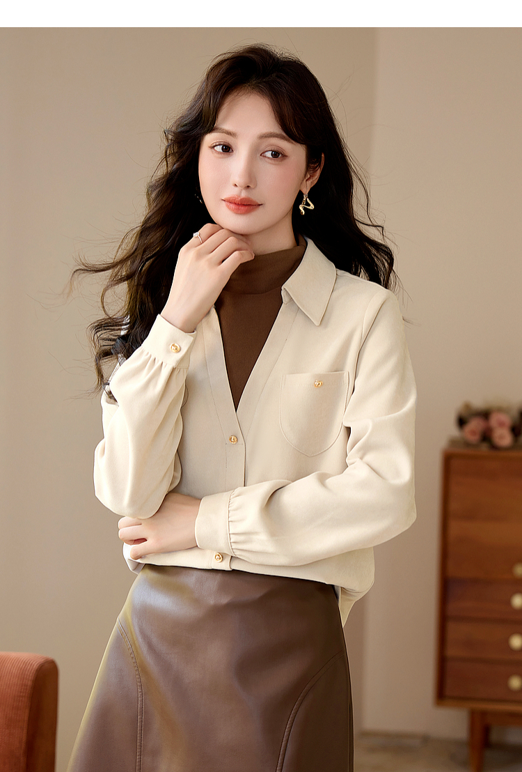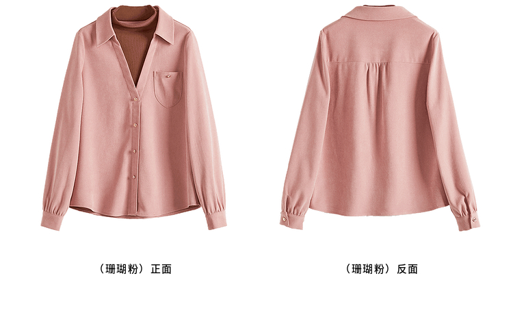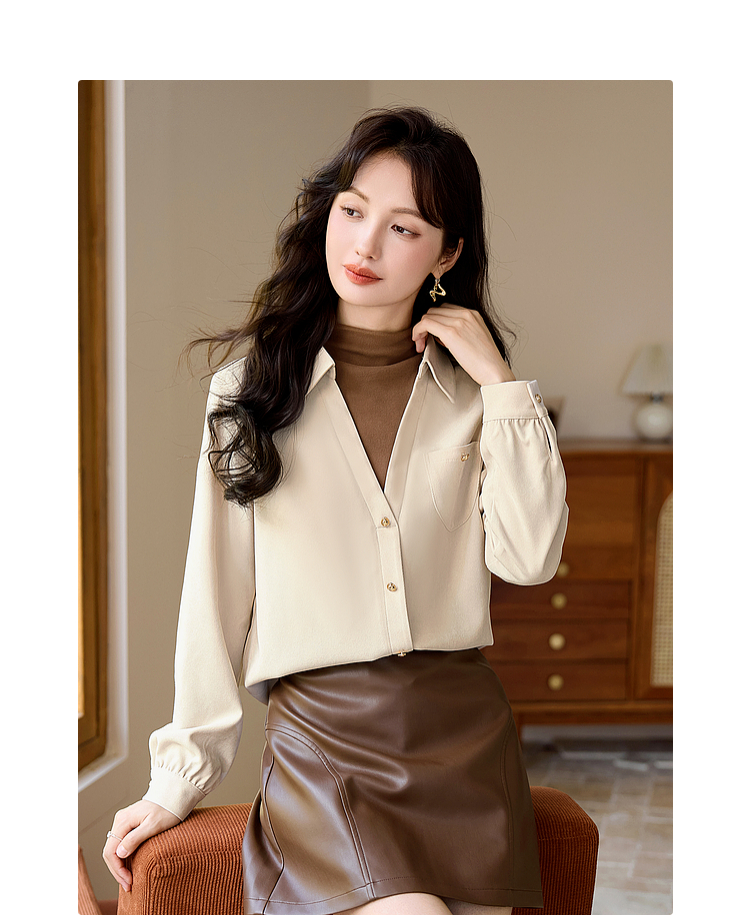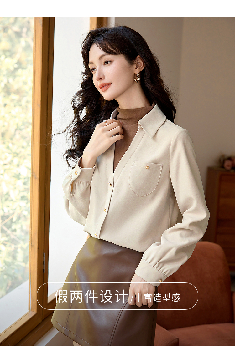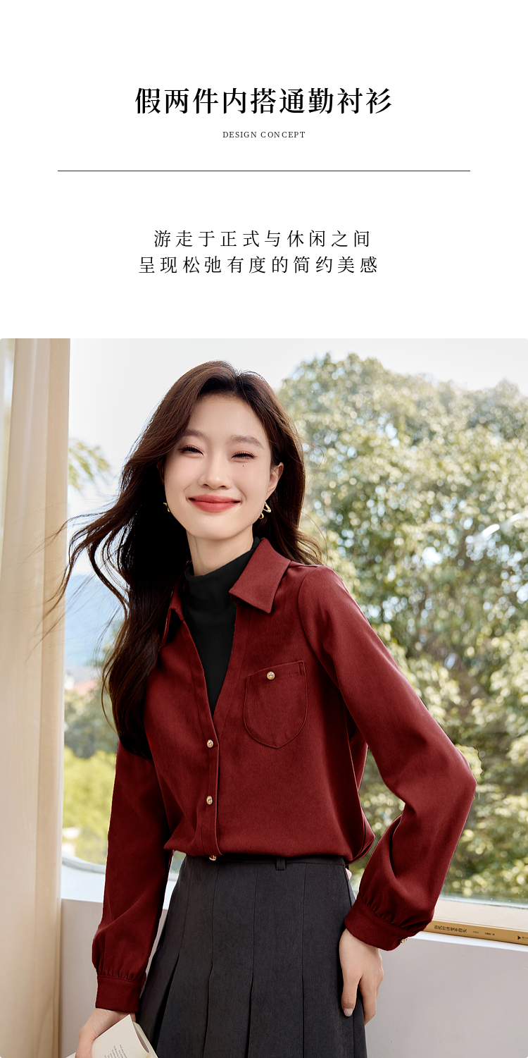 【年终特卖】熙世界叠穿假两件半高领拼接衬衣秋冬新款小众设计长袖衬衫上衣