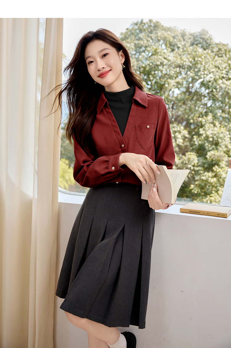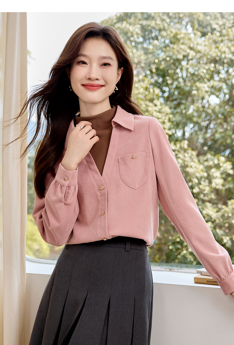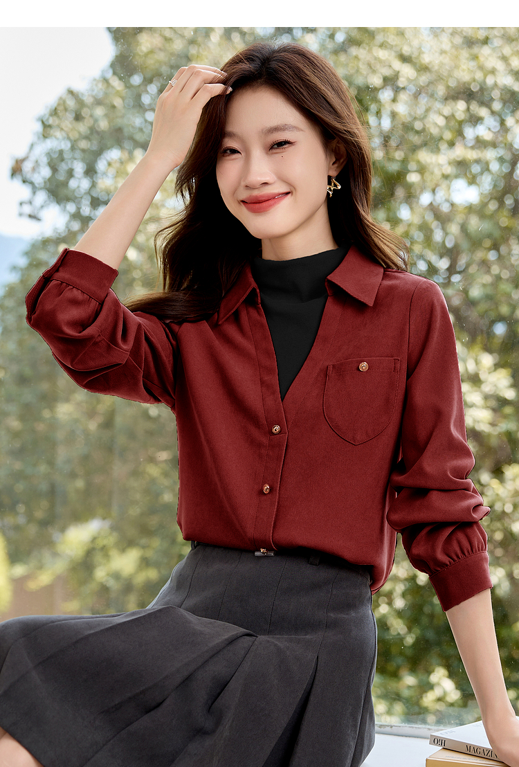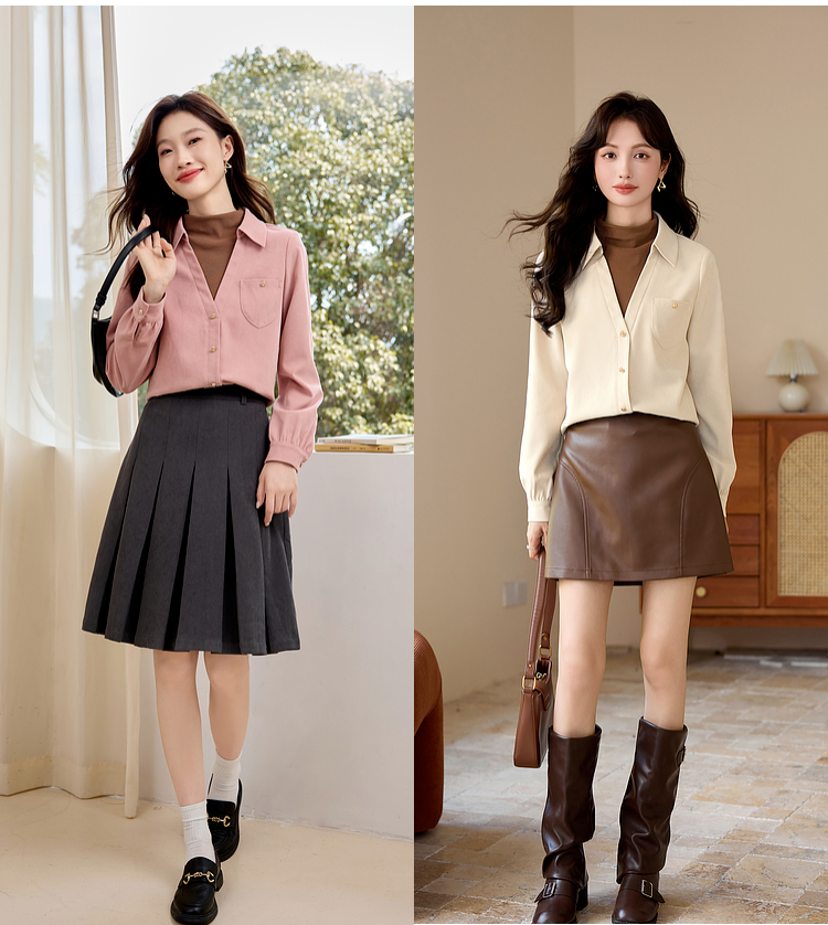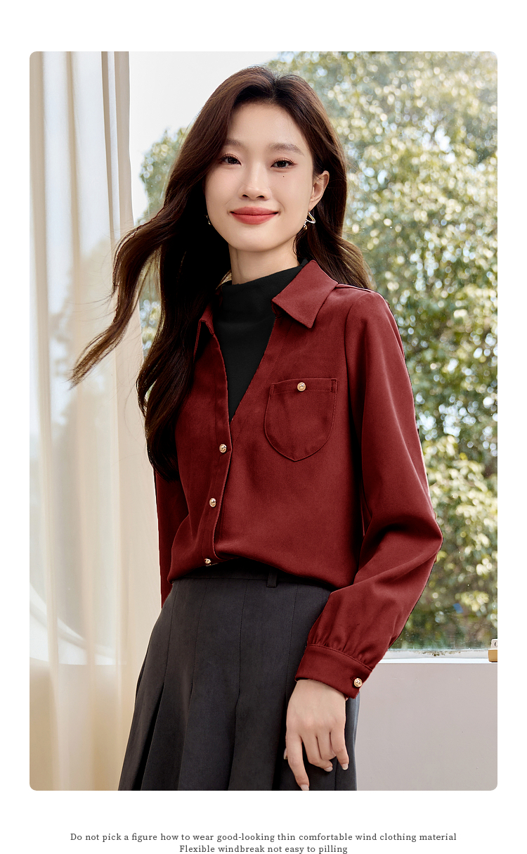 【年终特卖】熙世界叠穿假两件半高领拼接衬衣秋冬新款小众设计长袖衬衫上衣