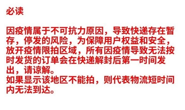 【关于快递】全国包邮(偏远地区除外,甘肃、青海、海南、宁夏、内蒙古+10,新疆、西藏+15,疫情地区不发货)