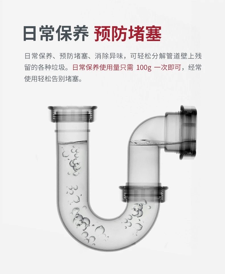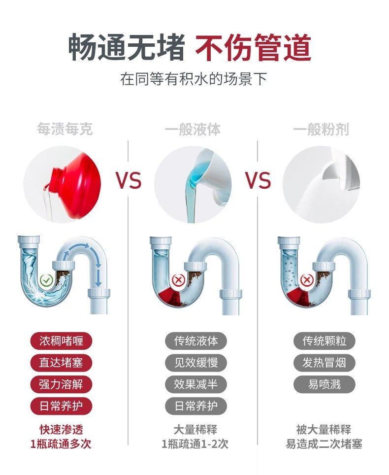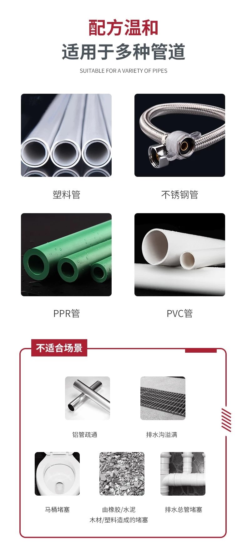安全疏通:不发热、不会二次堵塞(市面粉体产品普遍