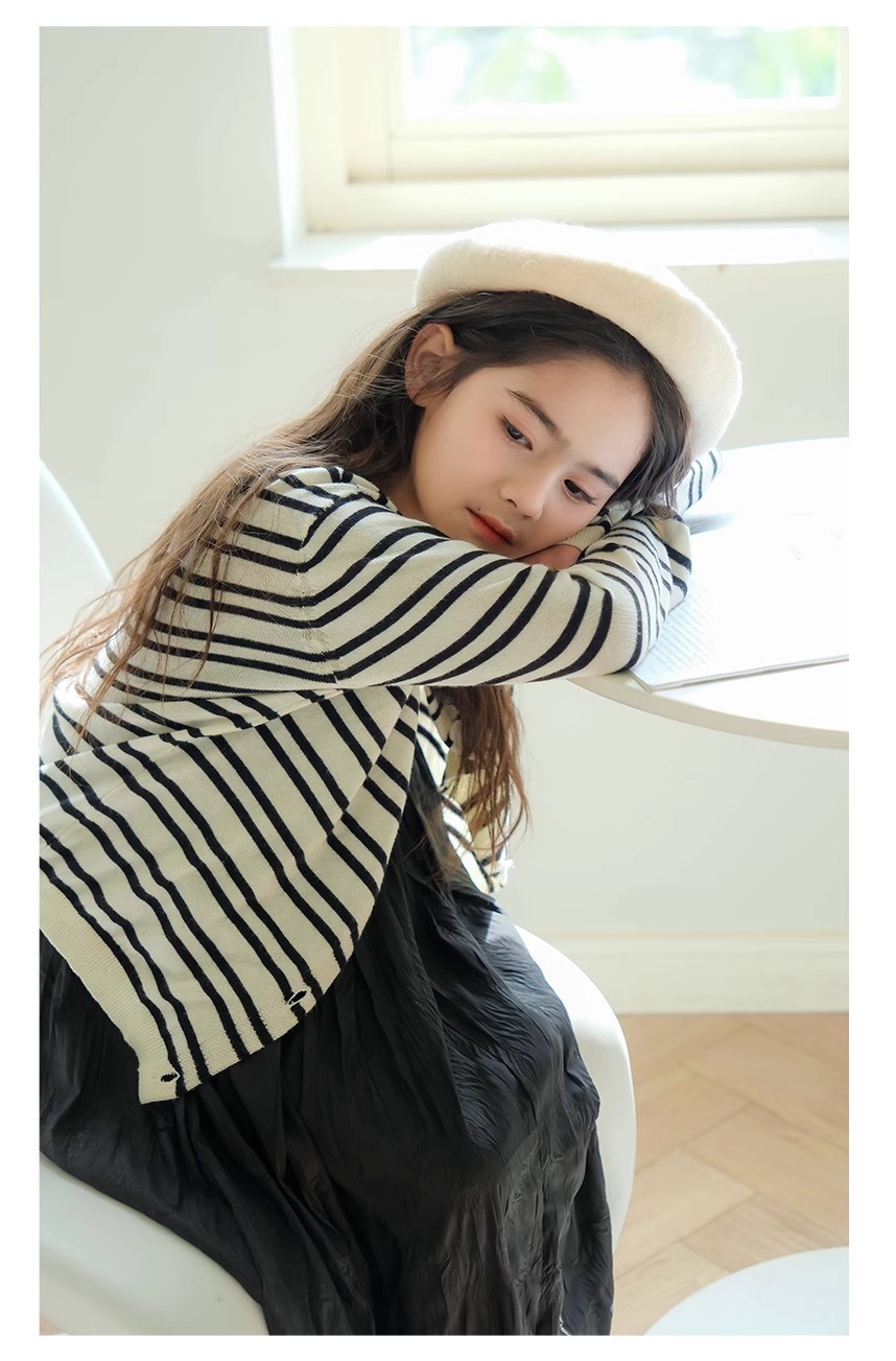 littletime女童黑白条纹针织毛衣开衫春夏新款韩版气质长袖外套
