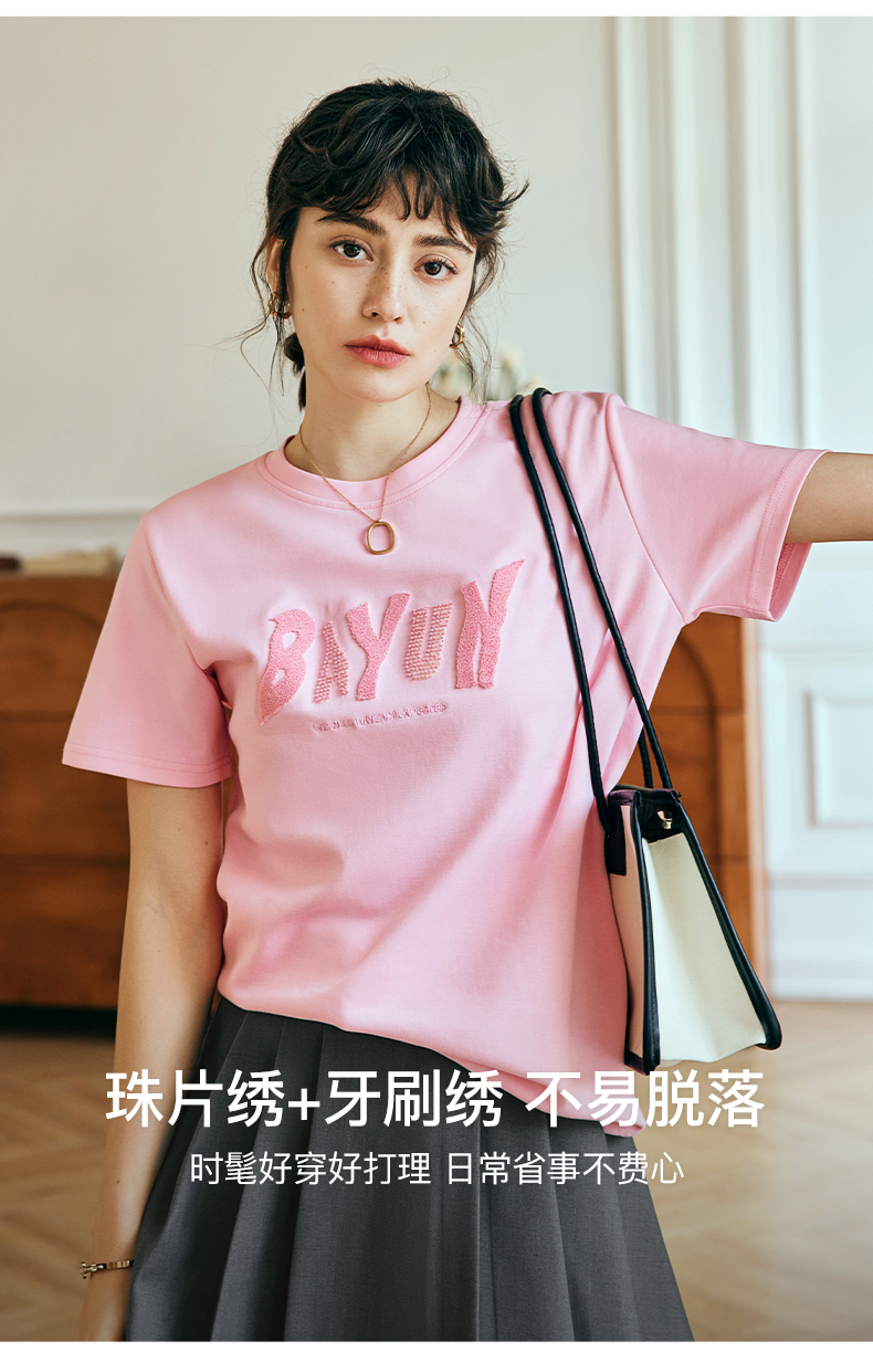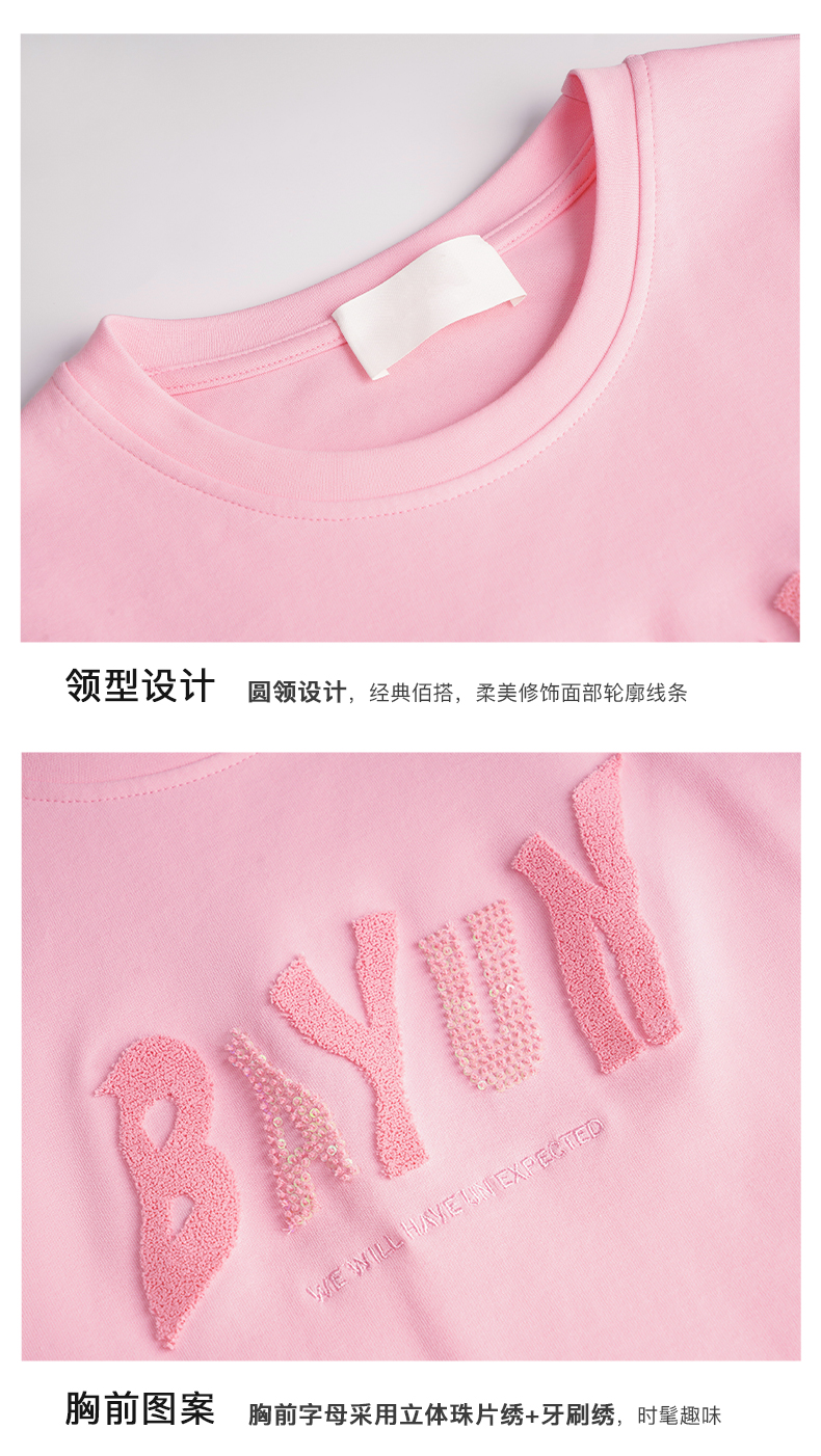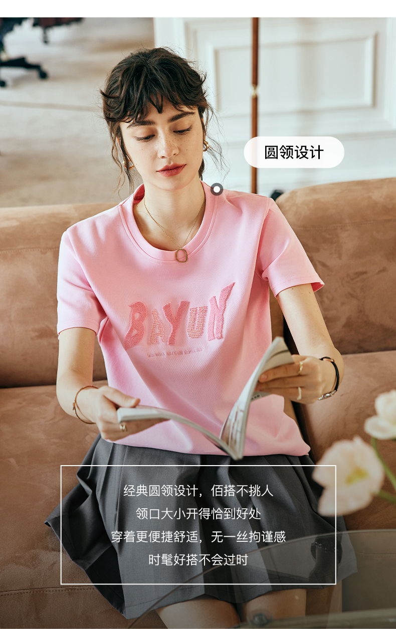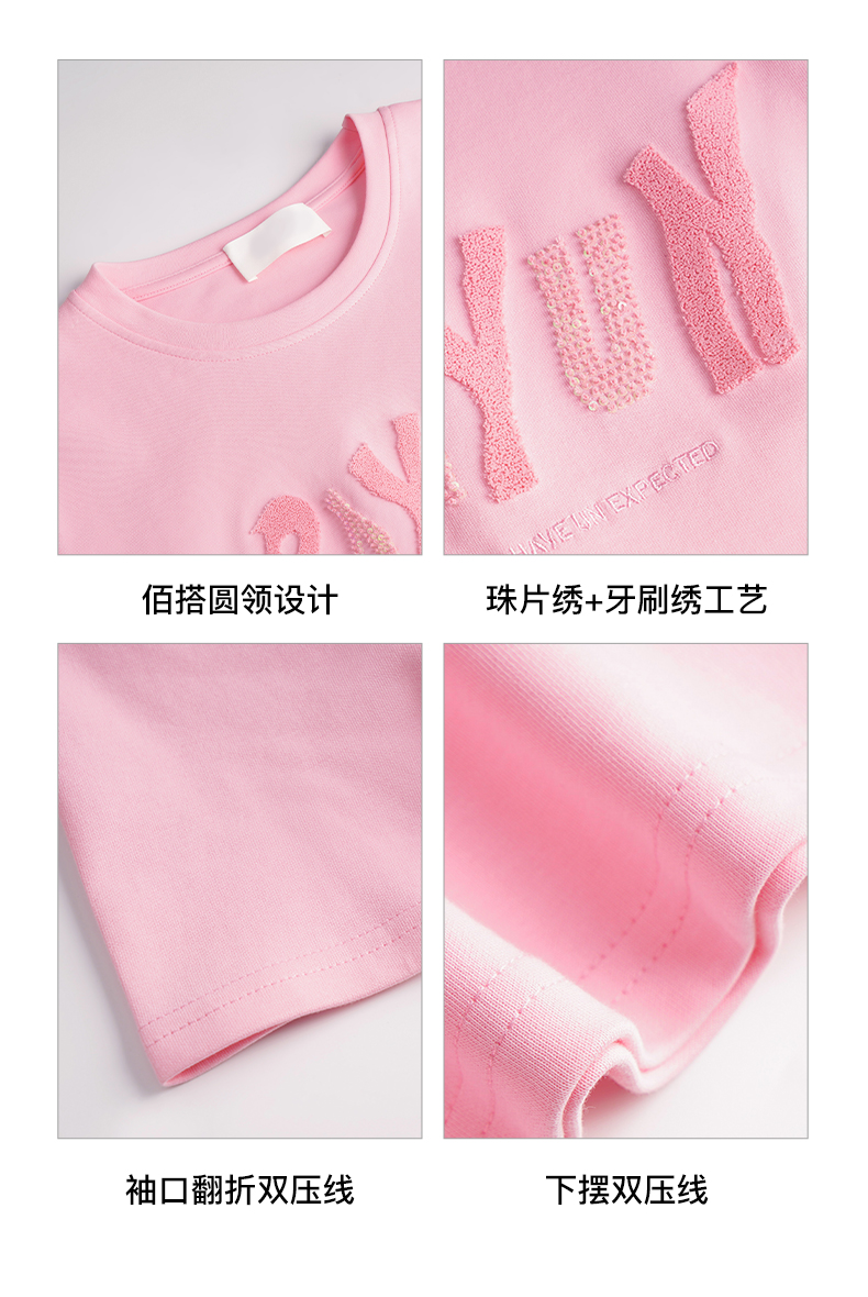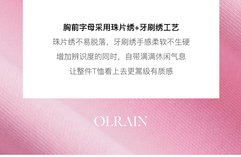 OLrain欧芮儿法式粉色短袖T恤女夏季2023年新款宽松字母刺绣上衣