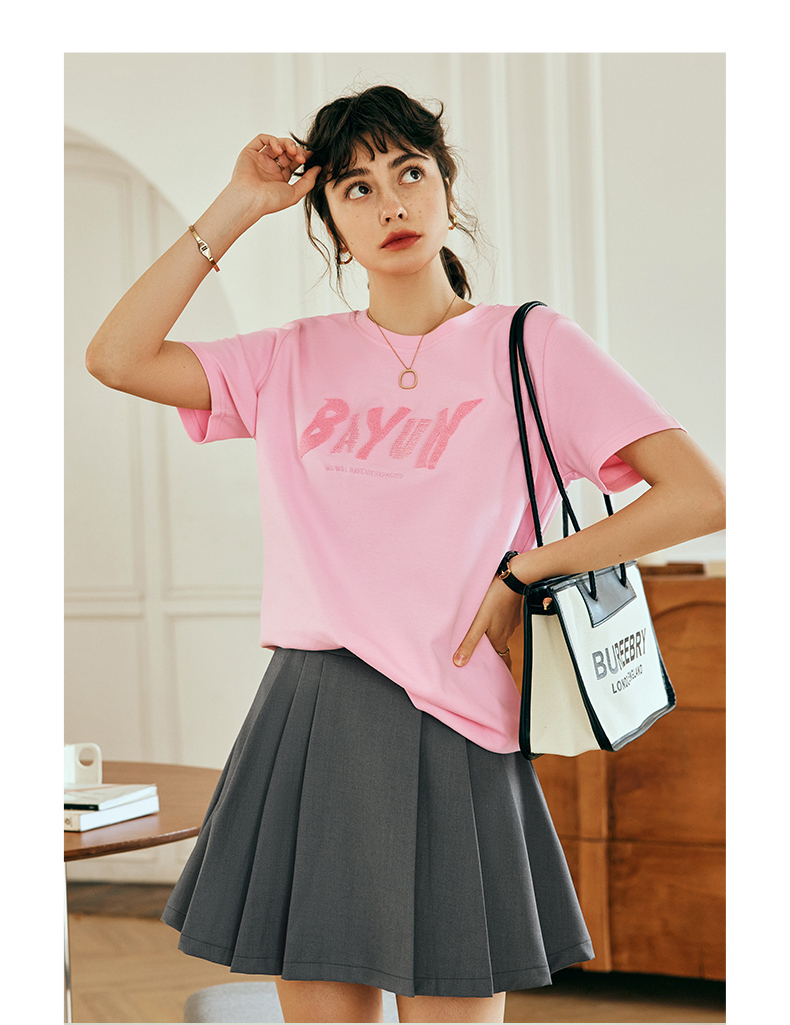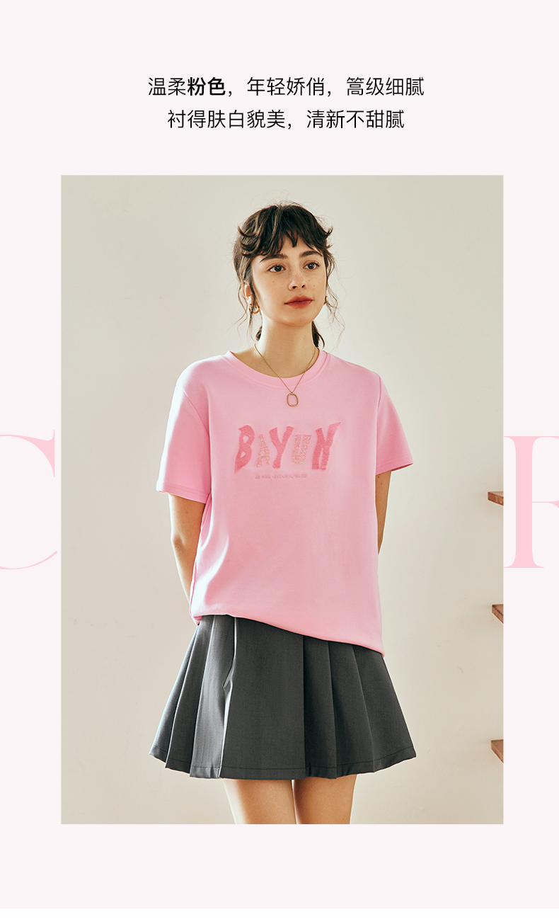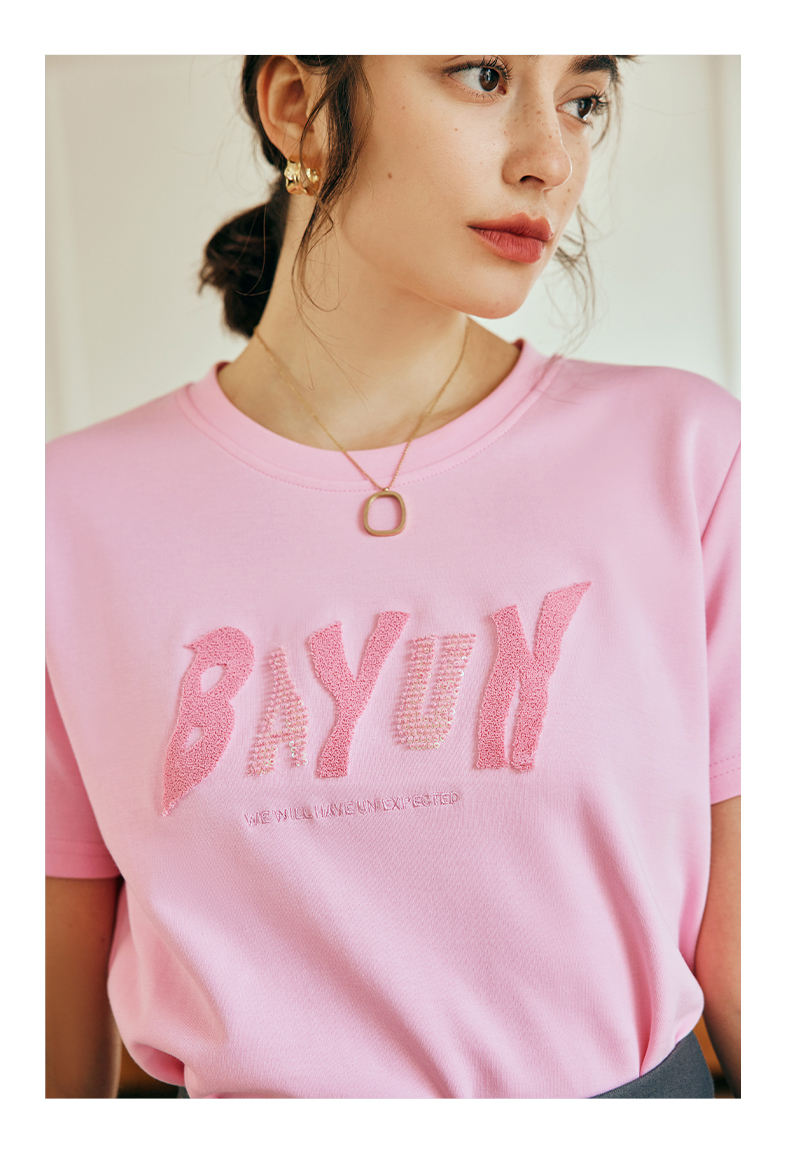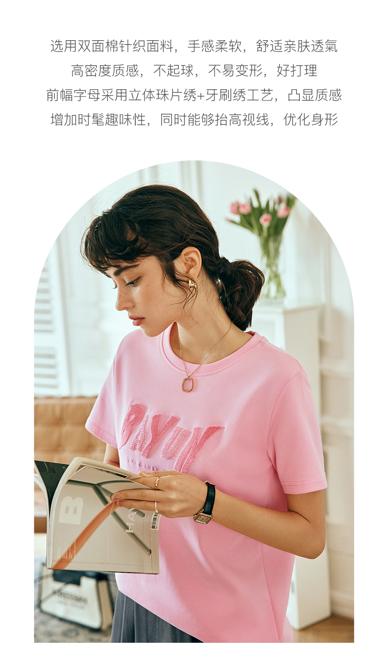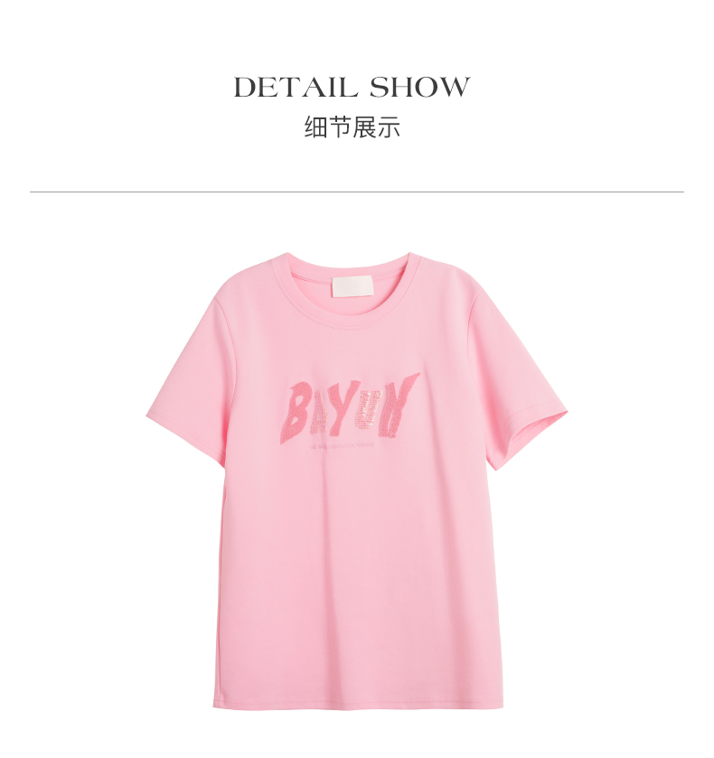 OLrain欧芮儿法式粉色短袖T恤女夏季2023年新款宽松字母刺绣上衣