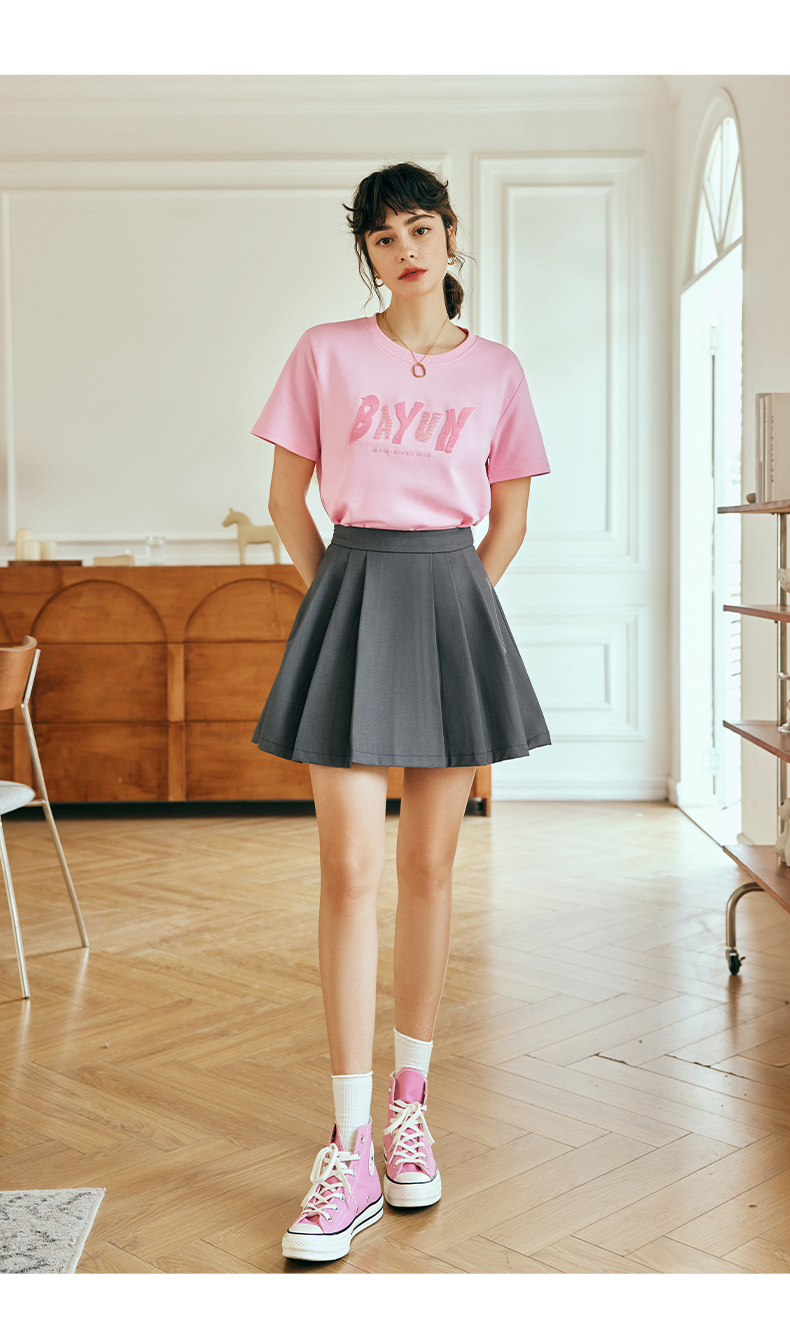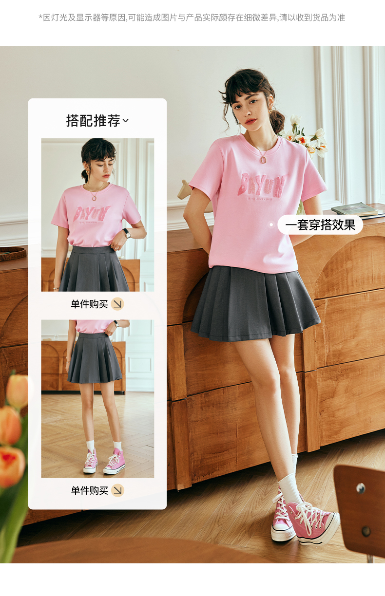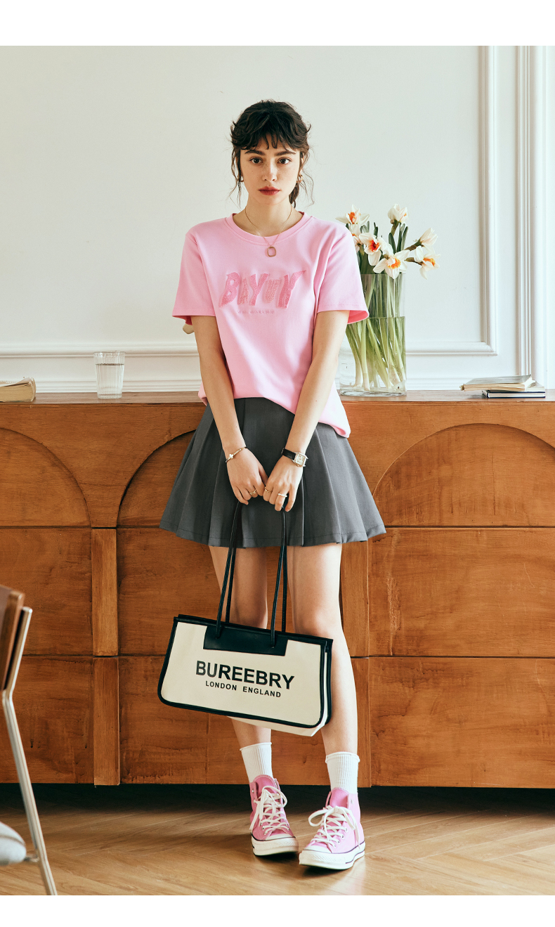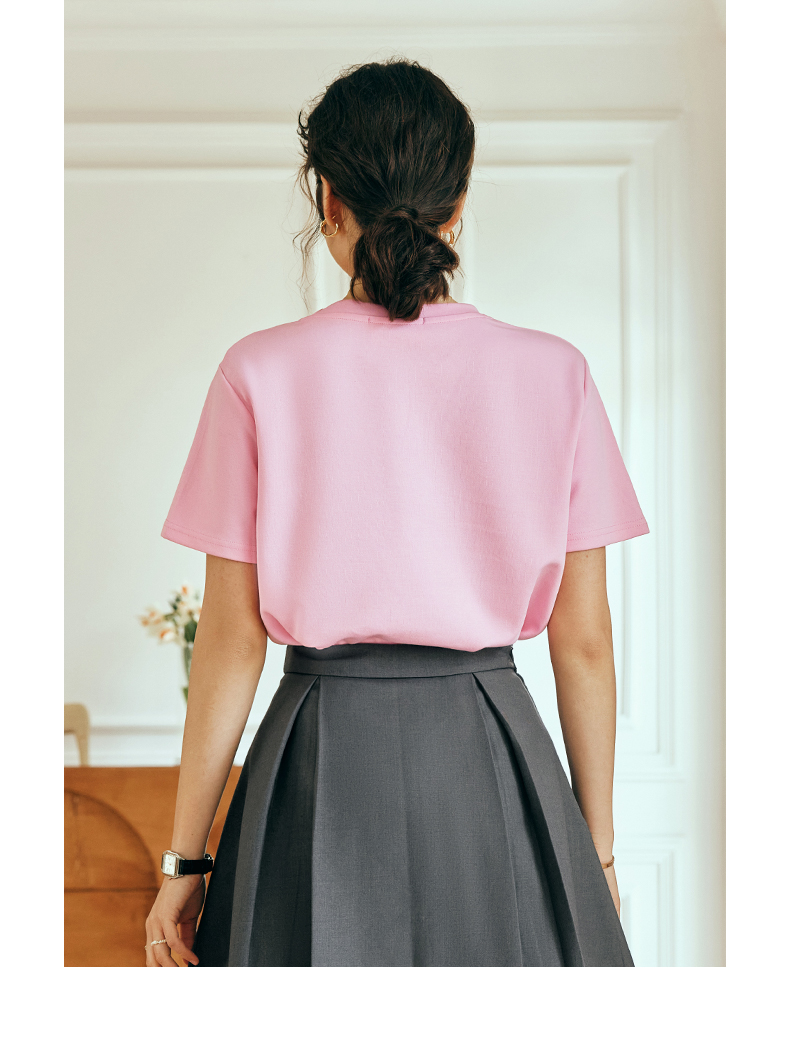 OLrain欧芮儿法式粉色短袖T恤女夏季2023年新款宽松字母刺绣上衣