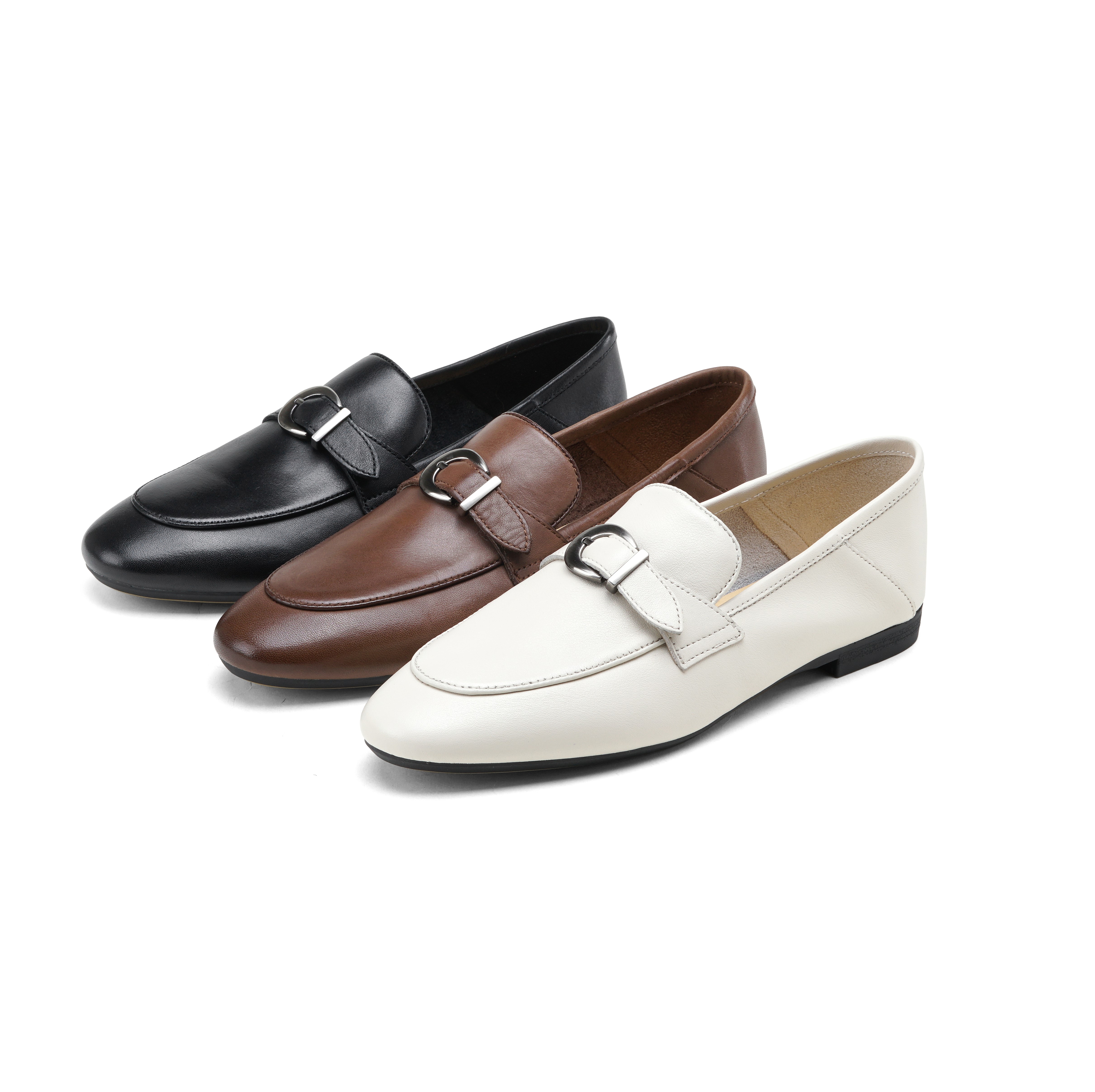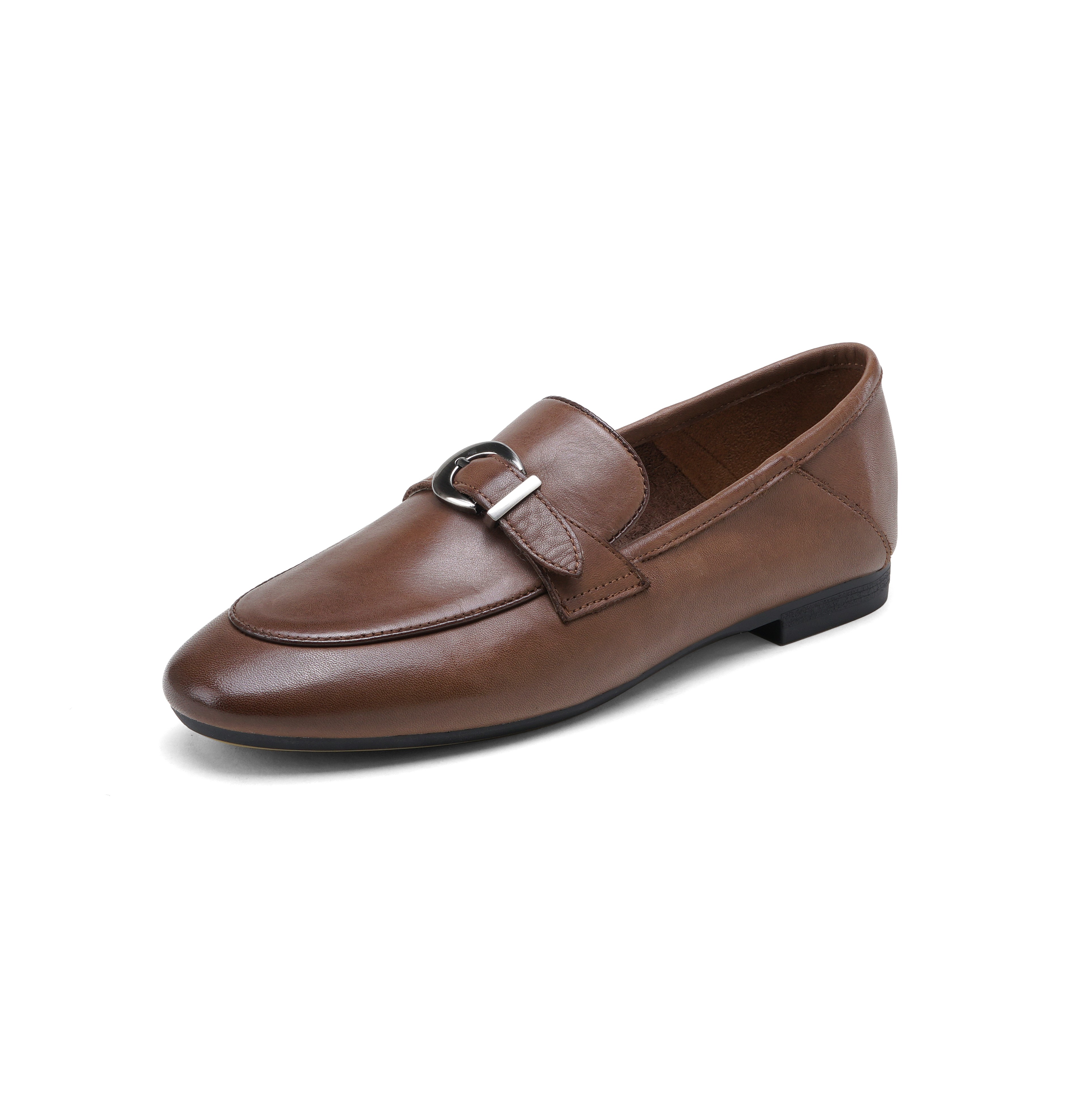 西村名物2025年春季新款小圆头低平跟舒适乐福鞋深口单鞋X25AM15171