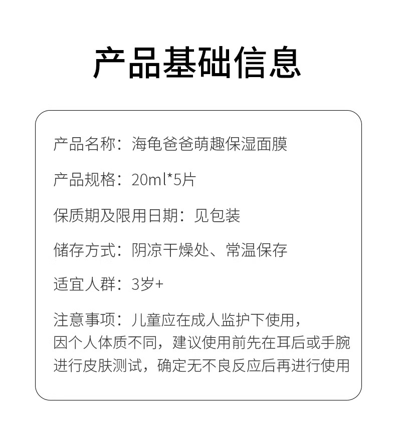 【35元会员福利】海龟爸爸萌趣保湿儿童面膜20ml*7片-小老虎