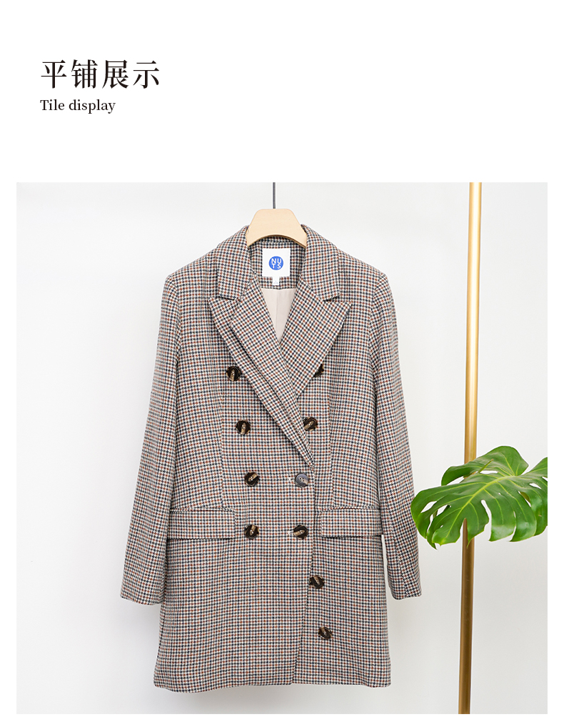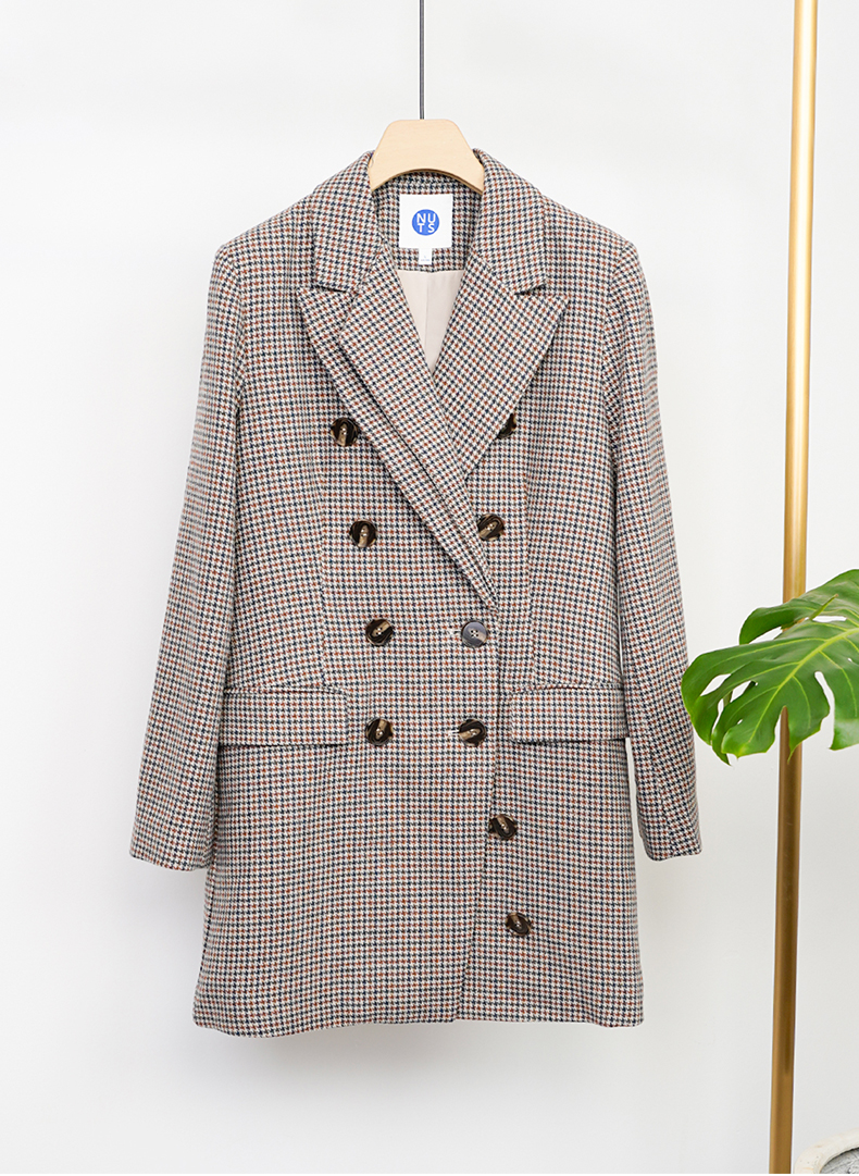 NUTS商场同款西装复古格子中长款外套女141048001B