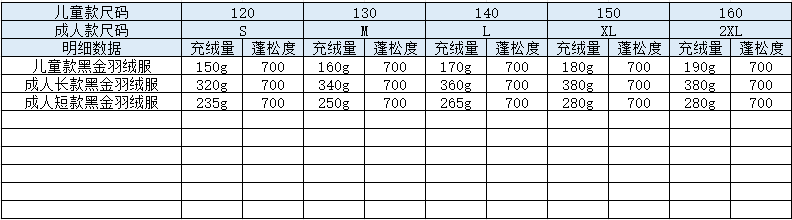 【面料】锦纶100%,含绒量90%,充绒量140克-190克
