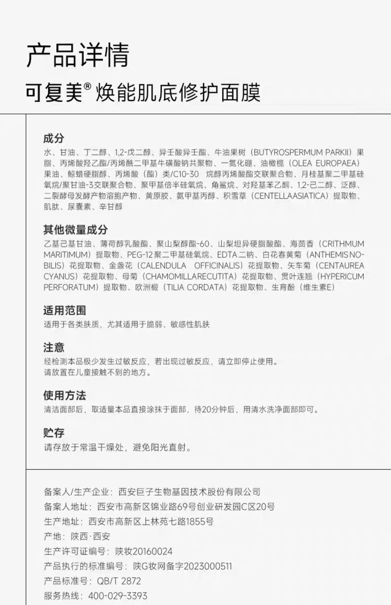 【海关监管】可复美-冰淇淋涂抹舒缓保湿修护屏障面膜165g-会员5折