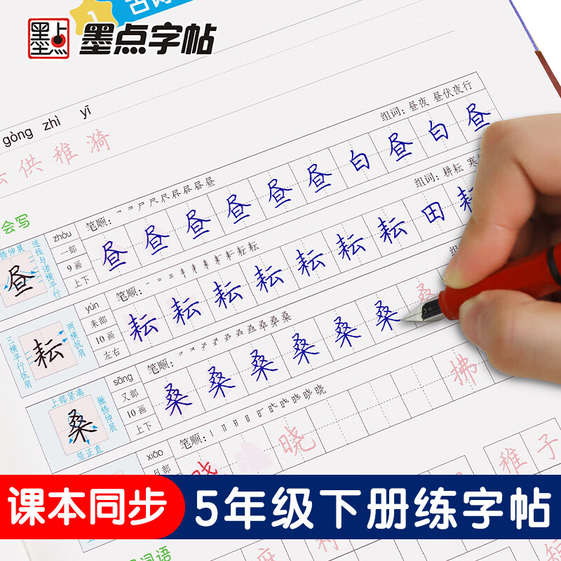 (仓发) 墨点字帖 2024年春 语文同步五年级下册 笔顺笔画同步练字帖视频版 赠听写默写本 人教版五年级课外阅读铅笔字帖楷书描红本生字偏旁部首拼音控笔/9787540144999