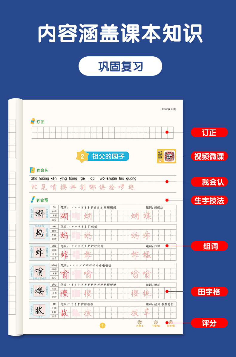 写词语:编入课文中的重点词语,增加描红和临写格,让你们在练字的过程中准确书写、记忆。