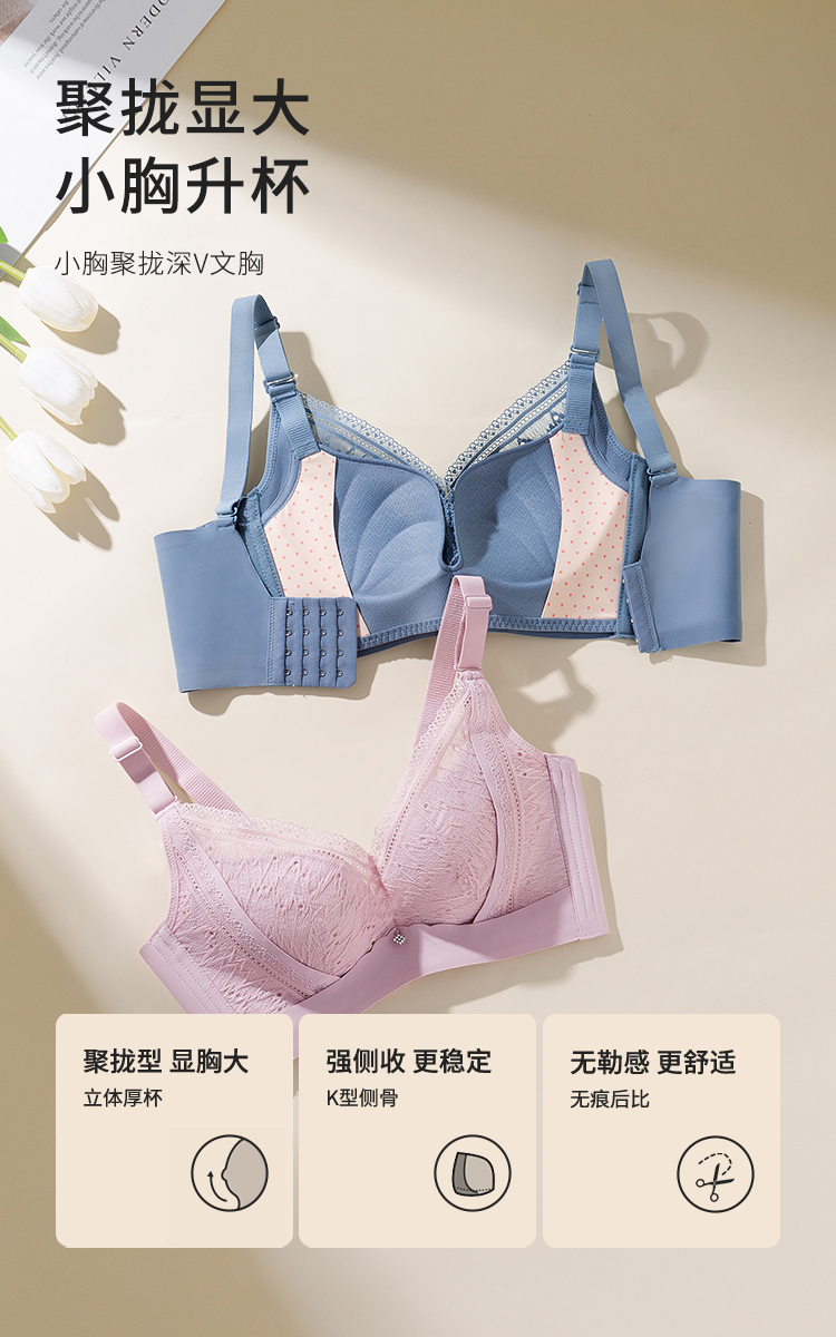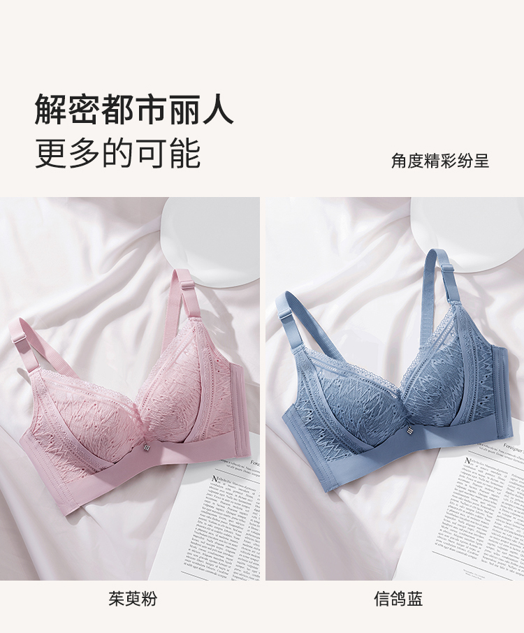 都市丽人内衣自然舒适A:中厚B:薄蕾丝三排扣树脂胶圈3/4杯常规文胸LB21A5