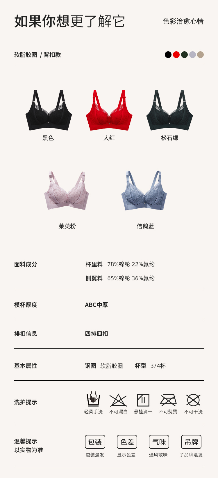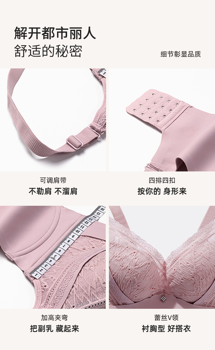 笔笔同款都市丽人自然舒适ABC杯适穿软泡芙蕾丝内衣三种厚度3/4杯常规文胸无钢圈三排扣新年本命年红品LB31M2