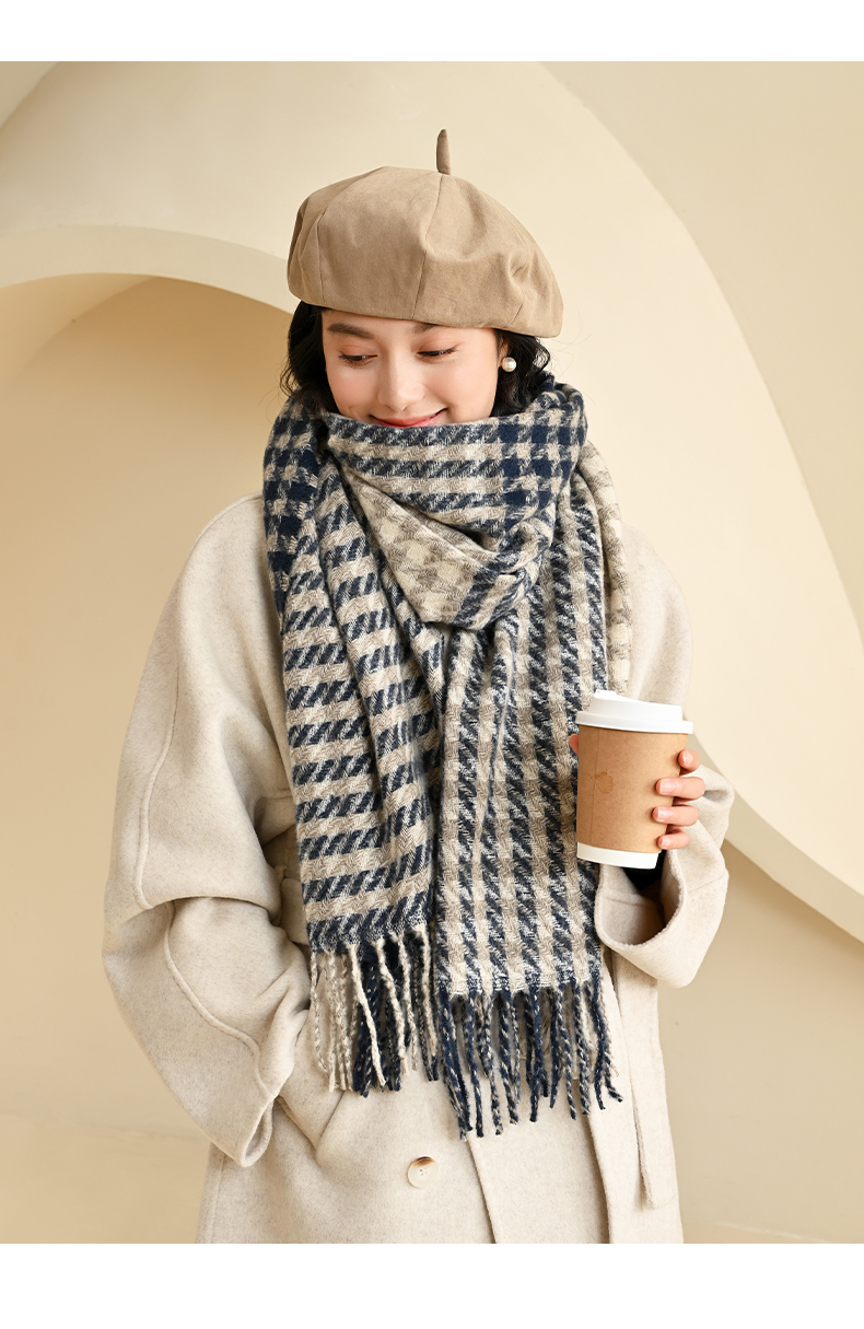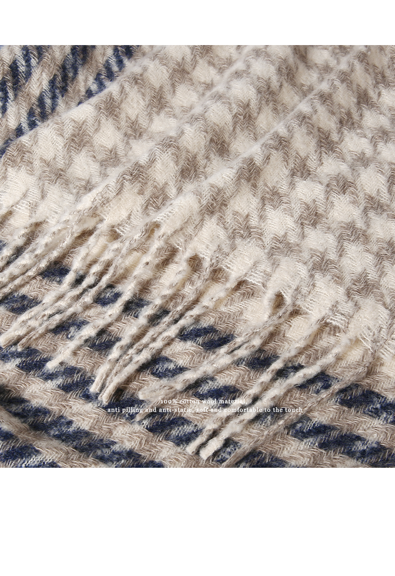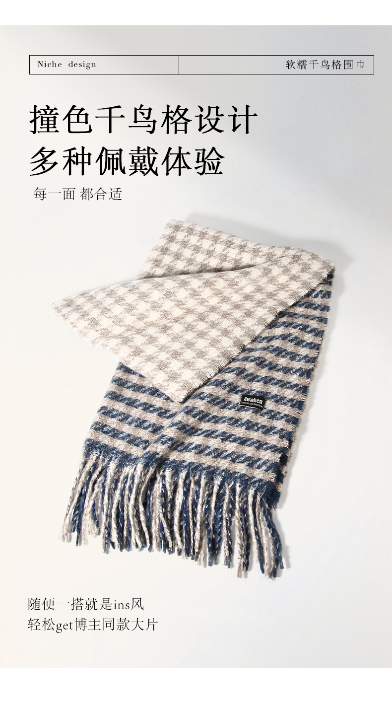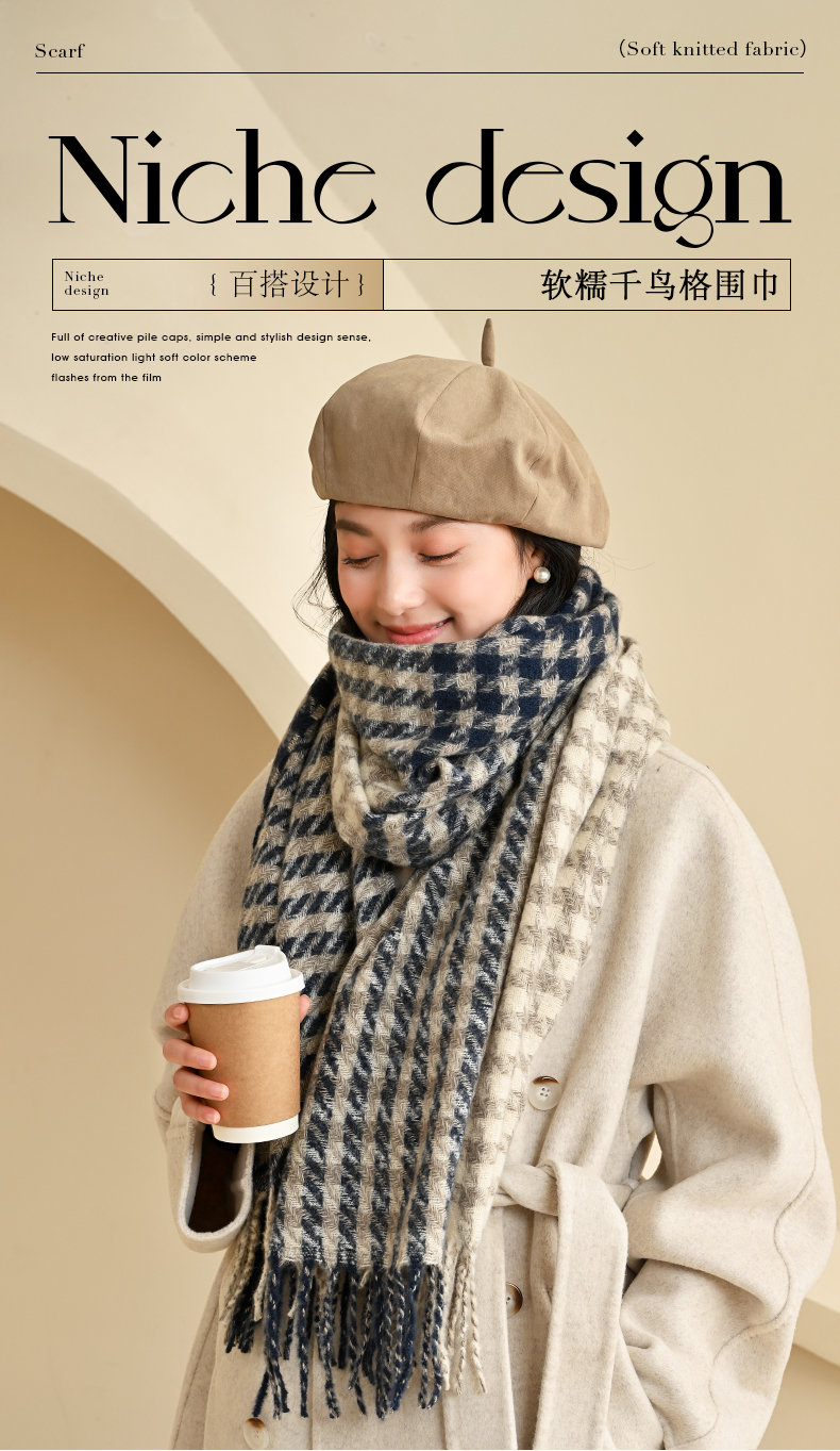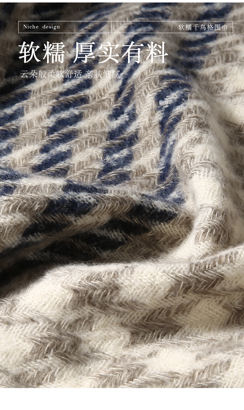 CACUSS冬季千鸟格纹围巾 ins风软糯亲肤细腻保暖 加大加宽户外披肩围脖