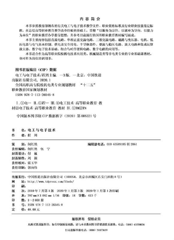 9787113265458电工与电子技术(第三版)