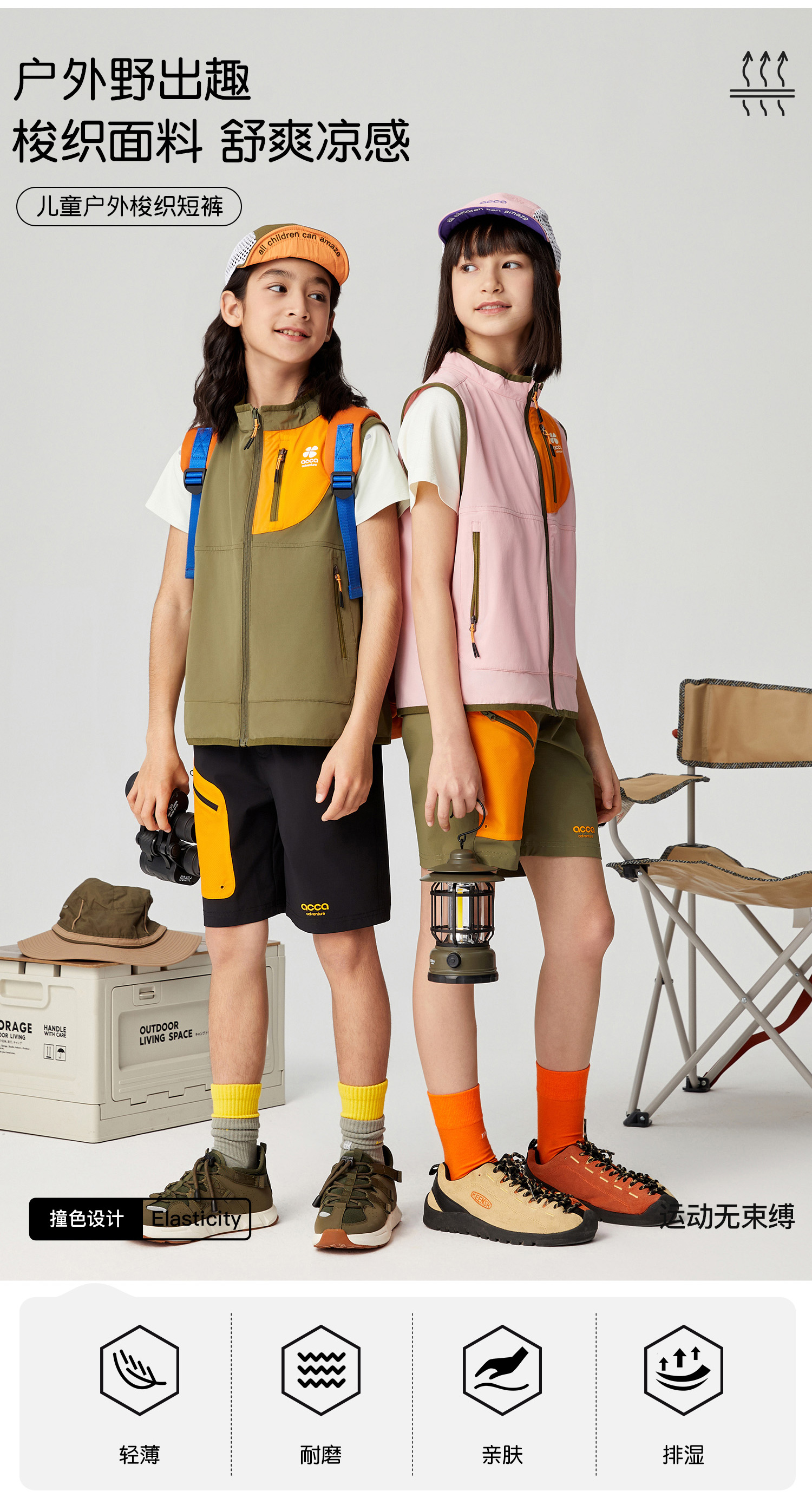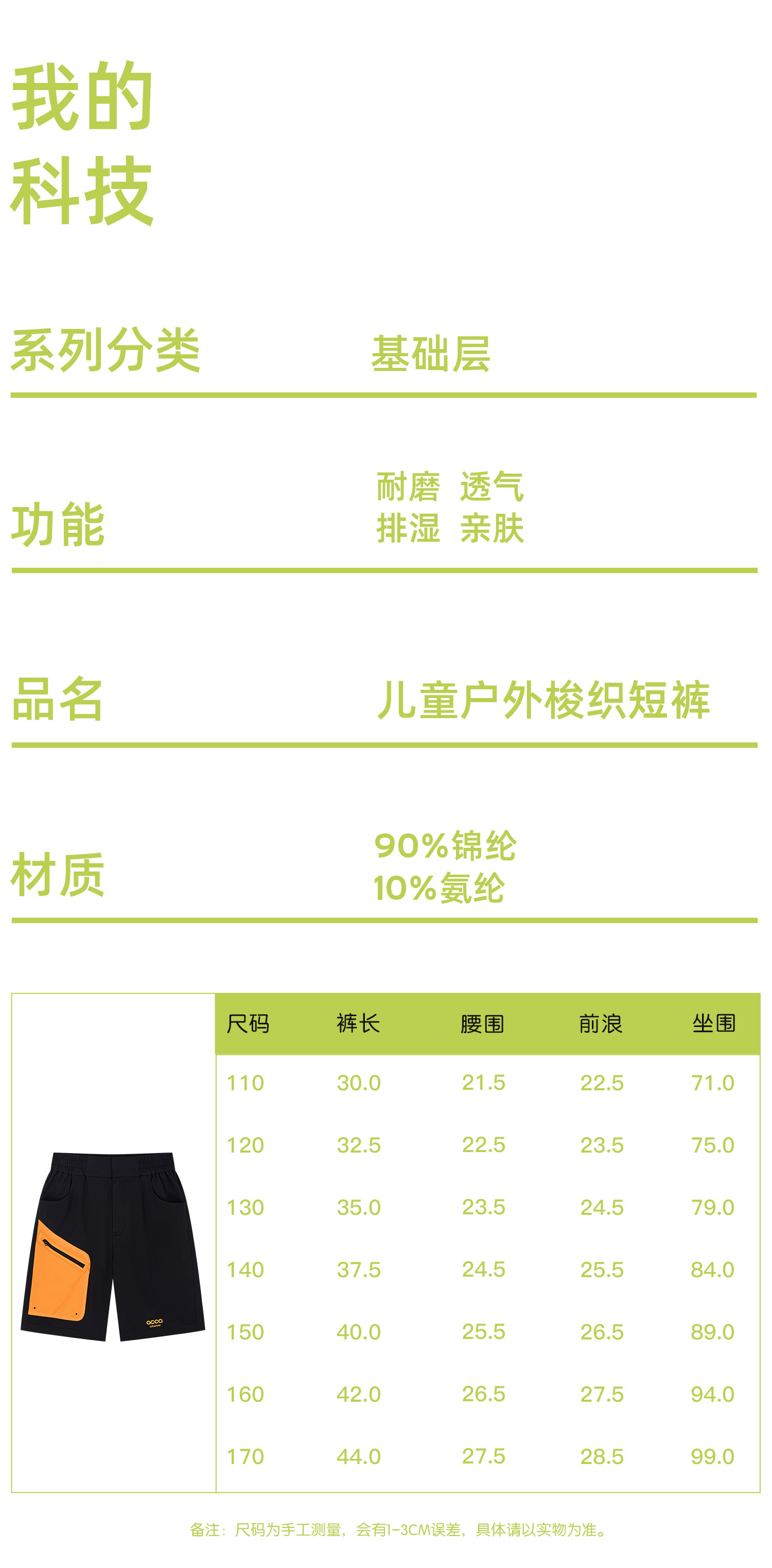 acca 男女儿童运动户外梭织短裤吸湿排汗亲肤透气耐磨回弹不易皱